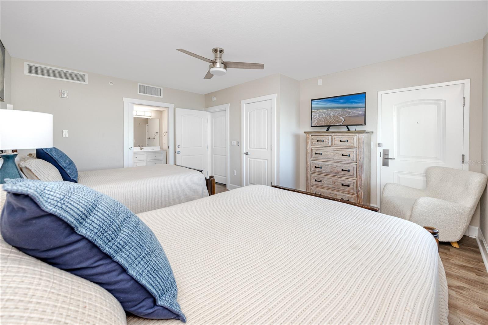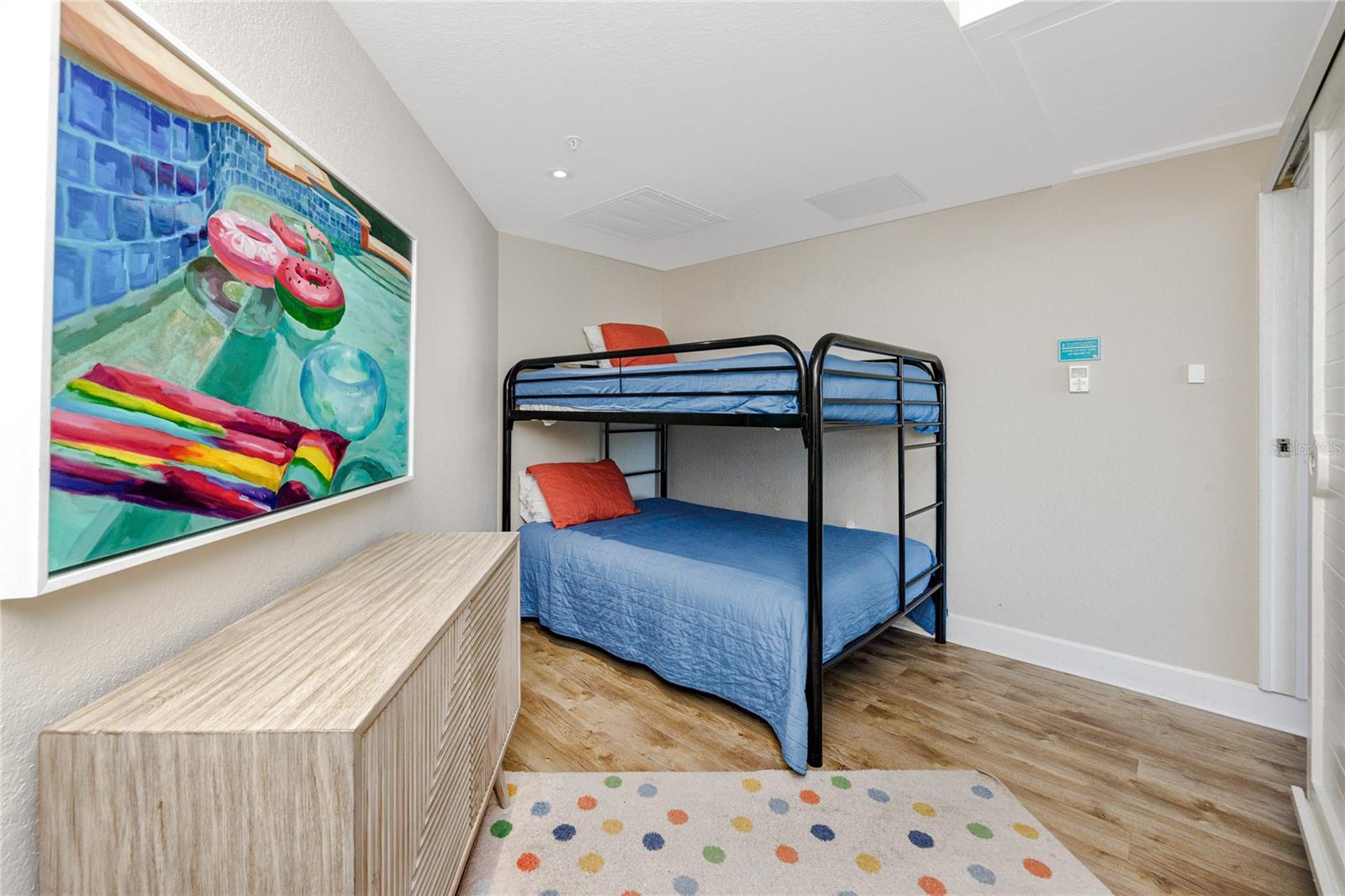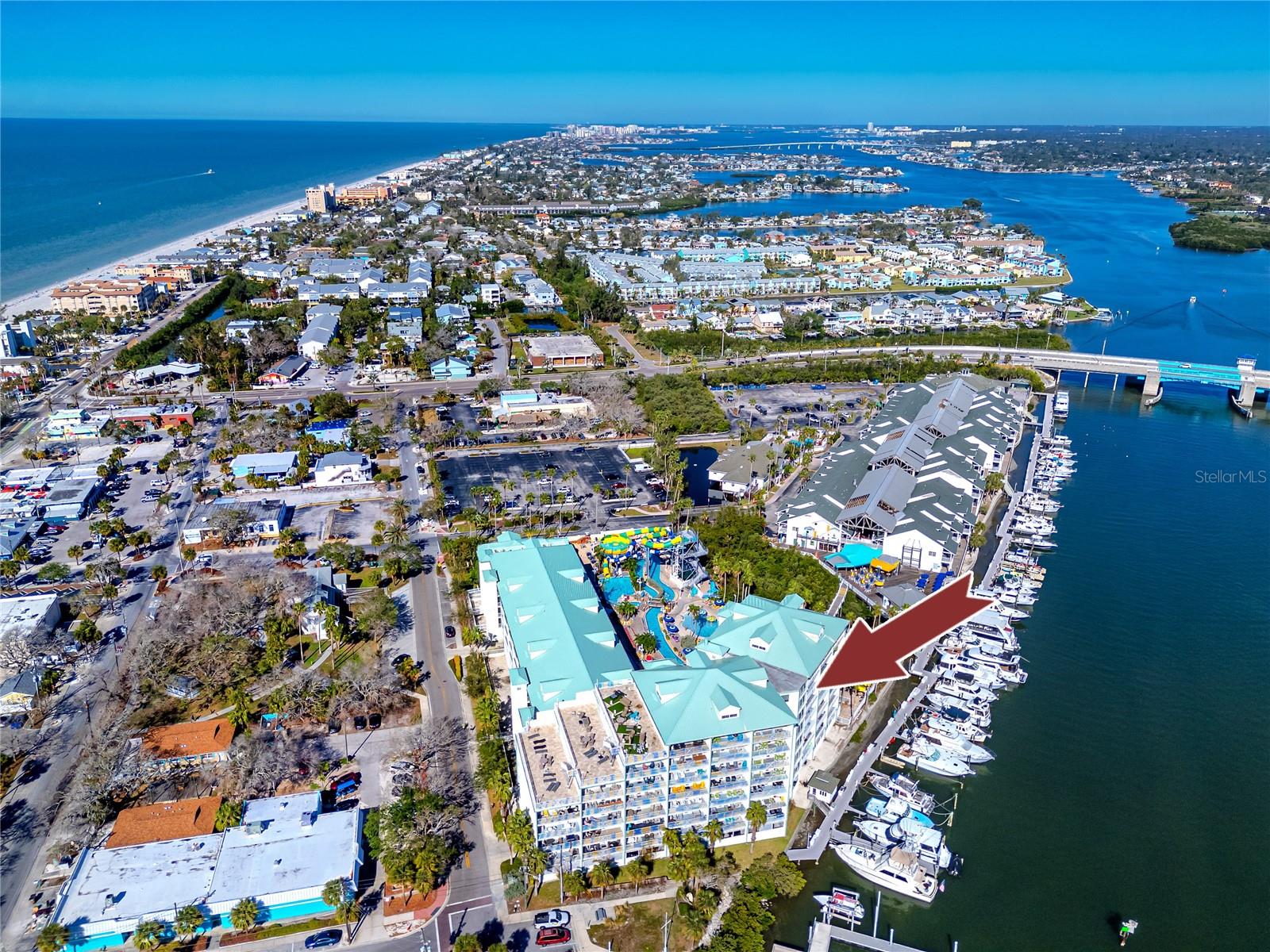 Nestled in the heart of Indian Rocks Beach, this beautifully furnished 3-bedroom, 2-bathroom condo at Harbourside at Marker 33 offers the perfect combination of luxury coastal living and income-generating potential. Just steps from the beach, this turnkey unit features breathtaking views of the Intracoastal Waterway and Gulf of Mexico from the private balcony off the main living area. The spacious open-concept living area boasts luxury vinyl wood flooring, stylish décor, and floor-to-ceiling windows in the breakfast nook, creating a bright and welcoming space for relaxing or entertaining. The kitchen is fully equipped with granite countertops, upgraded wood cabinetry, a built-in desk, and an in-unit laundry closet for everyday convenience. The master suite offers two queen-sized beds, a Smart TV, and an en-suite bath with a walk-in shower, while the guest suite includes a king-sized bed and full bath with walk-in closet overlooking the water, and the third bedroom tucked behind the living room features bunk beds for additional guests. Designed with vacation rental success in mind, this condo allows 3-day minimum leases and is part of a community with low association fees, making it equally attractive for investors or those seeking a personal beachfront retreat. Residents and guests enjoy access to the on-site Splash Harbour Waterpark with lazy river, water slides, heated pool, Tiki Bar, Jimmy Guana’s Restaurant, boat and jetski rentals, miniature golf, arcade, and rooftop deck for Gulf sunset views, with four daily waterpark passes included. Located in a prime Indian Rocks Beach location, the condo is within walking distance of shops, restaurants, and beach activities, allowing you to embrace the carefree coastal lifestyle. Pet-friendly for owners up to 20 lbs, this property is a rare opportunity to own a fully furnished, move-in-ready condo in one of the most desirable beach communities in the area, combining resort-style amenities, turnkey convenience, and strong rental potential.