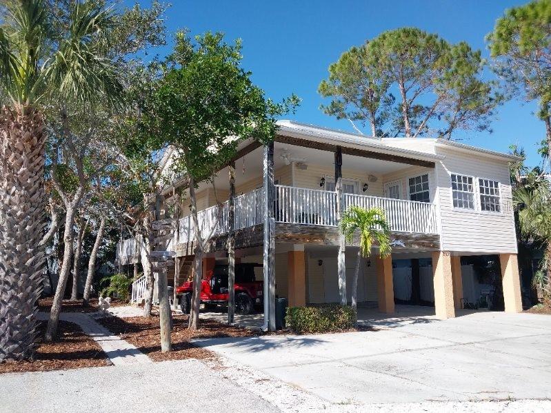 TROPICAL KEY WEST STYLE HOME WITH SPACIOUS MOTHER IN LAW APT- INDIAN ROCKS BEACH! ONLY 2 BLOCKS TO THE BEACH! UNIQUE OPPORTUNITY to live in a breathtaking home with an extra apt/mother-in-law home. Lovingly built and occupied by IRB's former Mayor, the main Villa (#1/east side) is almost 2000 sq ft with 3 bedrooms + enclosed office, 2.5 bathrooms, 2.5 car garage (tandem) and 4 under building parking. Stunning great room with high vaulted ceiling, custom Mexican Saltillo style tile floors, built-in shelving and lots of large windows, French doors accessing private wrap around porch. Private office/den located right off Great room with light & bright atmosphere with more windows and French pocket doors opening to the Great room. Villa Home #2 (west side) is generous 2 bedrooms, 2 bathrooms about 900 sq ft. Featuring a great room plan plus a private porch overlooking the tropical garden. UPDATES: new metal roof 2017, some feature newer hot water heater, new AC, new fridge, dishwasher. GARAGE / STORAGE / WORKSHOP AREA is almost 2000 sq ft. About 800 sq ft of covered porches. BOTH homes have central heat & air, private covered porches, extra guest parking outside, inside laundry closets with full size washer dryer in each side. See attached list of upgrades & FAQs. South and west side of property has room for pool, hot tub, gazebo/tiki hut - check with City of IRB for permitting requirements. Highly desirable location, newer construction, elevated building, over 20 years steady rental income! *****NO DAMAGES from either hurricanes*****Currently rented to long term, very nice tenants at below market rent due to being listed for sale. Live in one and rent out other! NIGHTLY, SHORT TERM RENTALS ALLOWED. ADJACENT south quadplex property for sale as well. Great chance to have a fantastic vacation resort! Unlimited opportunities and income for the right beach loving owner! Located within walking distance to local restaurants, attractions including the IRB Nature Preserve, many parks with tennis/pickleball, basketball, baseball field, skateboard park, playground. EASY, convenient access to the beautiful Gulf beaches via 27th Ave beach access, perfectly situated for both leisure and ease of commuting. BRING YOUR BOAT - community boat ramp! The beach community offers waterfront activities, dining, and shopping, making it an ideal location. IRB is golf cart friendly. Many options with this unique property as primary residence with mother in law apt, 2nd home getaway with short term rentals (STR) - NO minimum rental in IRB. AIRDNA estimates $240K gross rental as a STR. Well maintained, new owners will enjoy a worry-free lifestyle! VERY unique building design and opportunity! ***DO NOT DISTURB TENANTS***