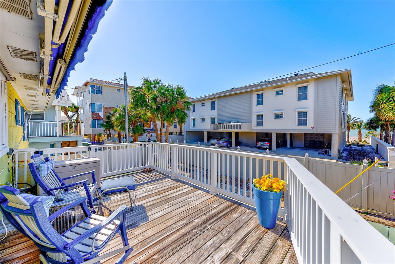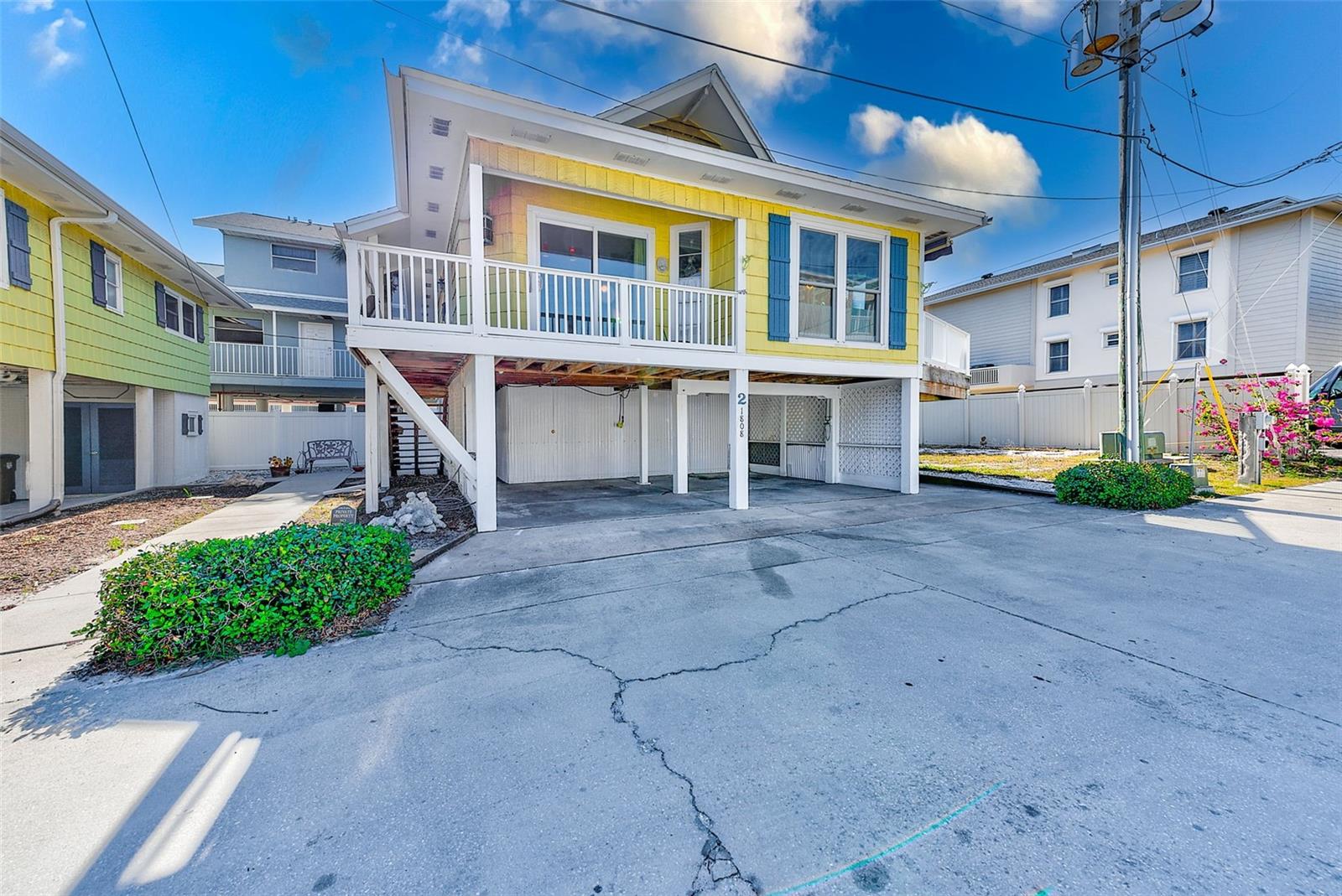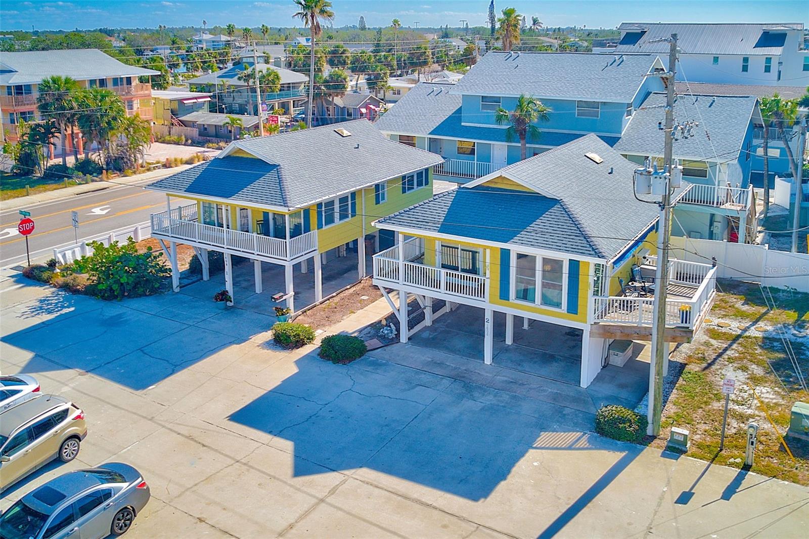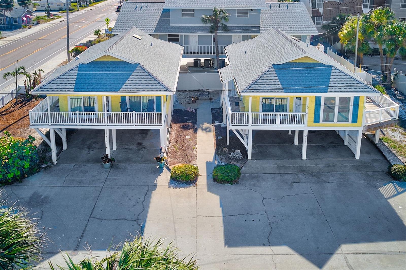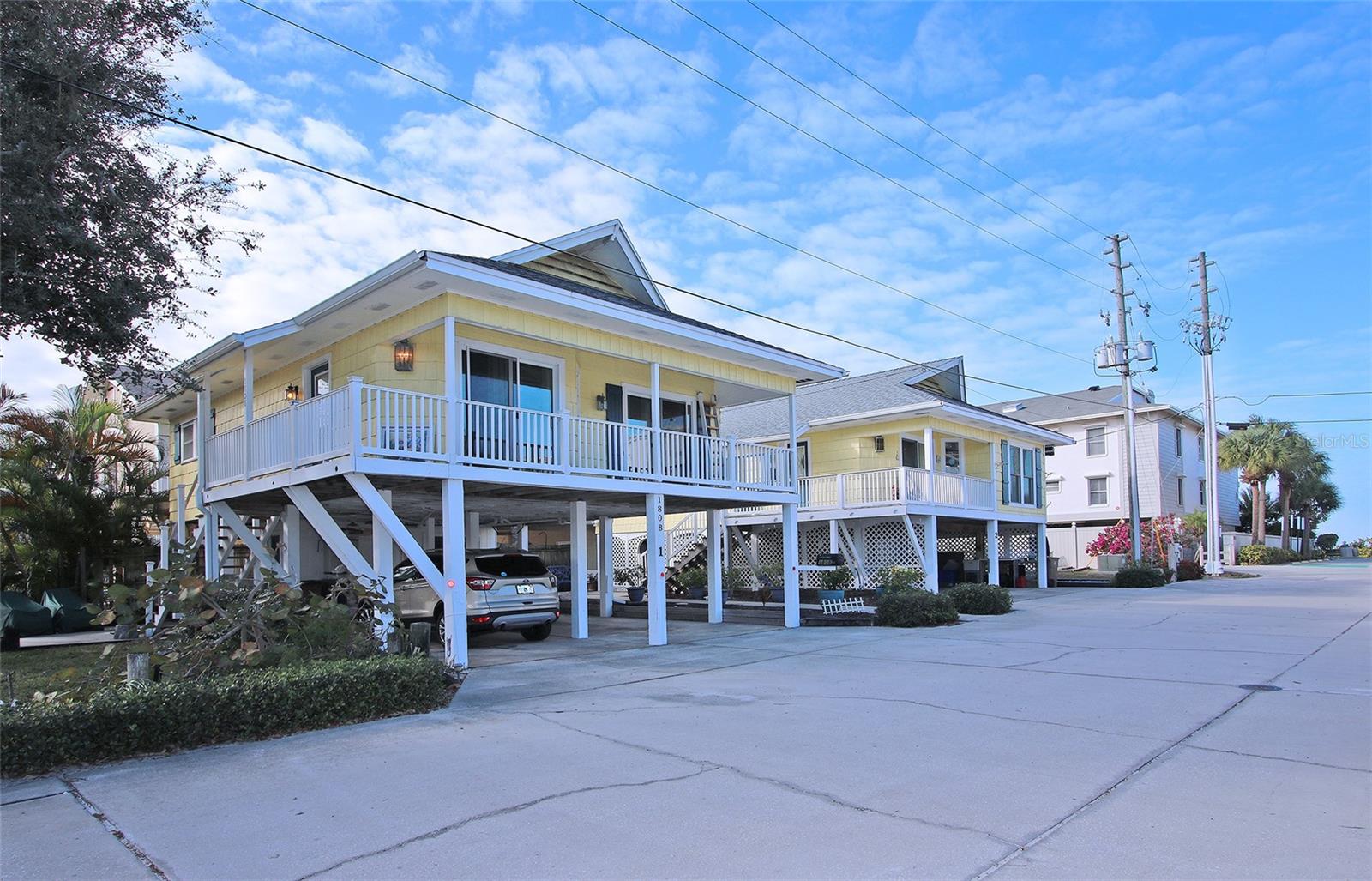 FREE one year Home Warranty with Purchase. Steps from the sugar-white sands of Indian Rocks Beach, this rare property features two exquisite Key West-style stilt homes, perfectly blending coastal charm with modern living. Elevated for both aesthetics and practicality, each home offers bright, airy interiors with vaulted ceilings, expansive porches to enjoy ocean breezes, water view and sunset, and ample space below for parking or outdoor living. This home features a brand new water heater for added efficiency and peace of mind. Nestled in a prime location within walking distance to local dining and boutique shops, this tropical retreat is ideal for a serene beachside lifestyle, a lucrative vacation rental, or a multi-generational getaway. NO STORM DAMAGE TO HOMES. SQUARE FOOT FOR FIRST UNIT IS 911, THE SECOND 2/2 STILT HOME IS 836 WITH 4 PARKING SPOTS UNDER. Sold as a package.