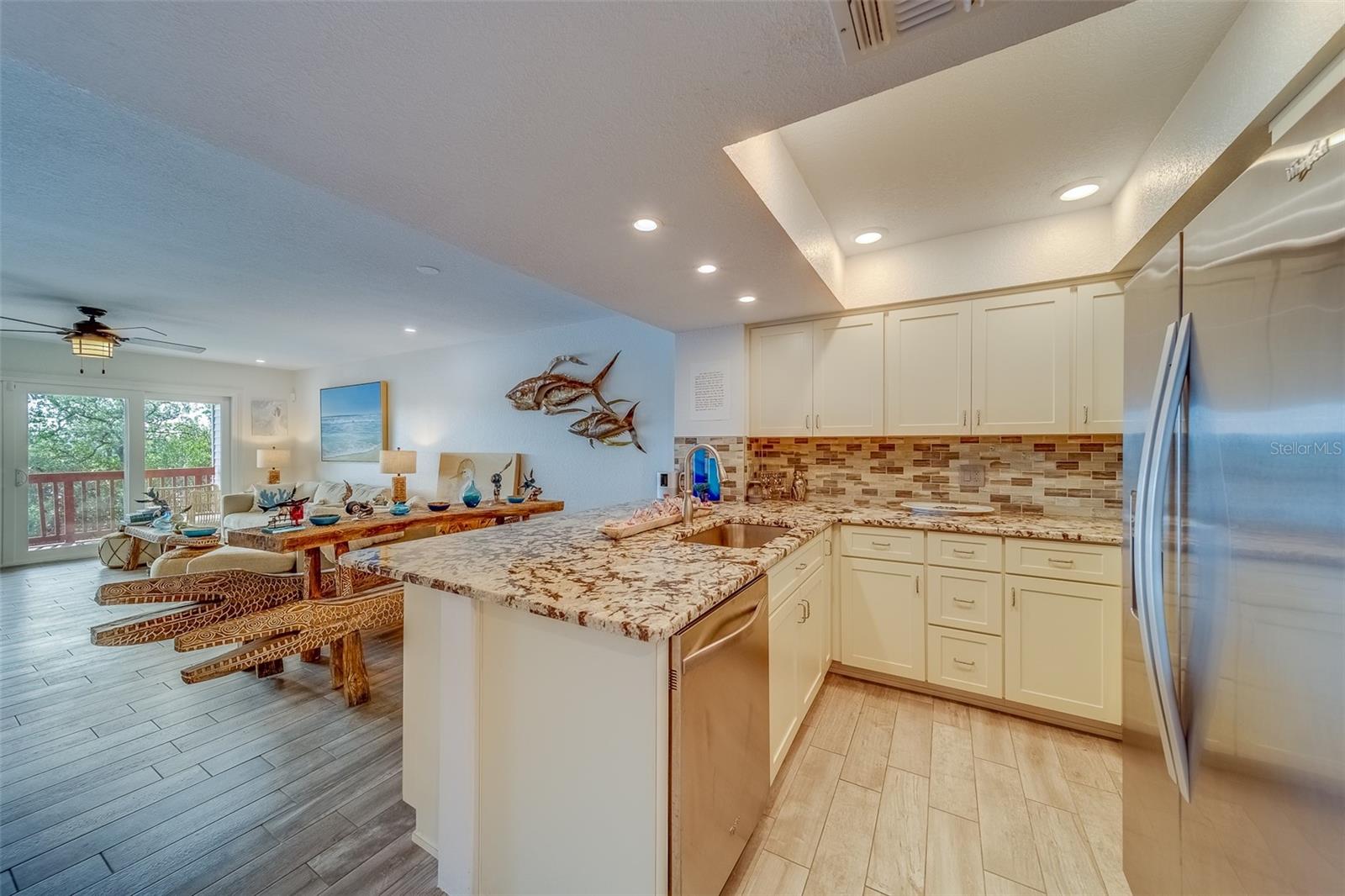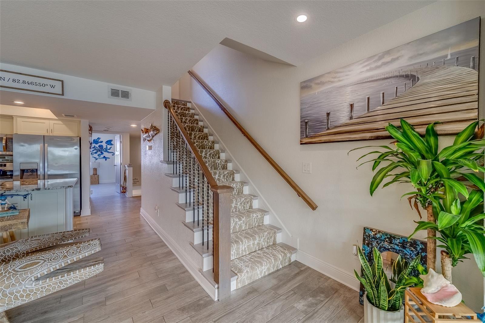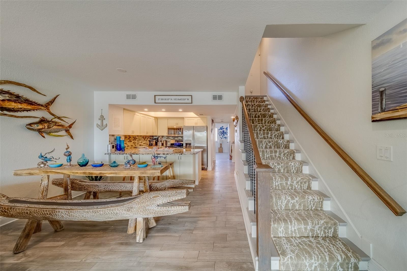 Nestled in the serene community of Indian Rocks Beach, 905 Hidden Harbour Drive offers the perfect blend of modern updates and coastal charm. This meticulously maintained home boasts an extensive list of recent upgrades, including a new garage door (2024), high-end carpet runner for the stairs (2024), new windows (waiting on installation, 2024), a brand-new roof (2023), water heater (2023), sliding glass door (2023), water softener (2023), and HVAC system (2022). The three-car tandem garage, complete with stylish French doors added in 2021, provides ample storage space and room for all your beach toys and vehicles, even a golf cart! Inside, the home features tile flooring throughout for low-maintenance living, can lights (2020), a cozy electric fireplace (2020), and an ADT security system for peace of mind. This 3 bedroom, 3 full bathroom home offers plenty of space for families and guests. The top floor master with en suite has lovely water views and dual closets. Bedroom 2 also comes equipped with an en suite on the top floor, while the third bedroom is conveniently located on the second floor with easy access to the third bathroom that can also be used for guests. From the open concept renovated kitchen and family room, step onto your private balcony to take in the stunning Intracoastal waterfront views, or enjoy access to the community dock and pool. Located just steps from the beach, this home offers the ultimate Florida lifestyle. Select tasteful furnishings are included, such as all beds, the living room TV, couch and chair, bedroom 3 couch/bench/footstool, and the upstairs guest bedroom lamps making it truly move-in ready. The community is currently undergoing a siding project, ensuring the neighborhood remains as pristine as the home itself. Don’t miss this opportunity to own a beautifully updated, low-maintenance property in one of the most desirable beachside locations!