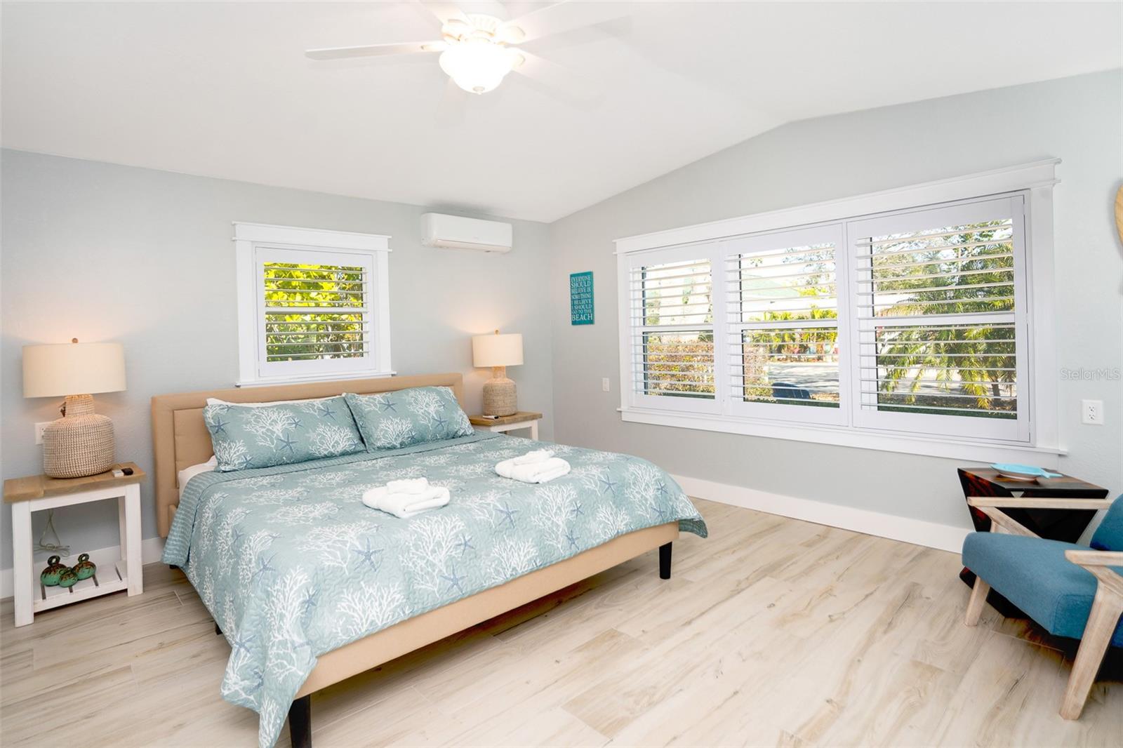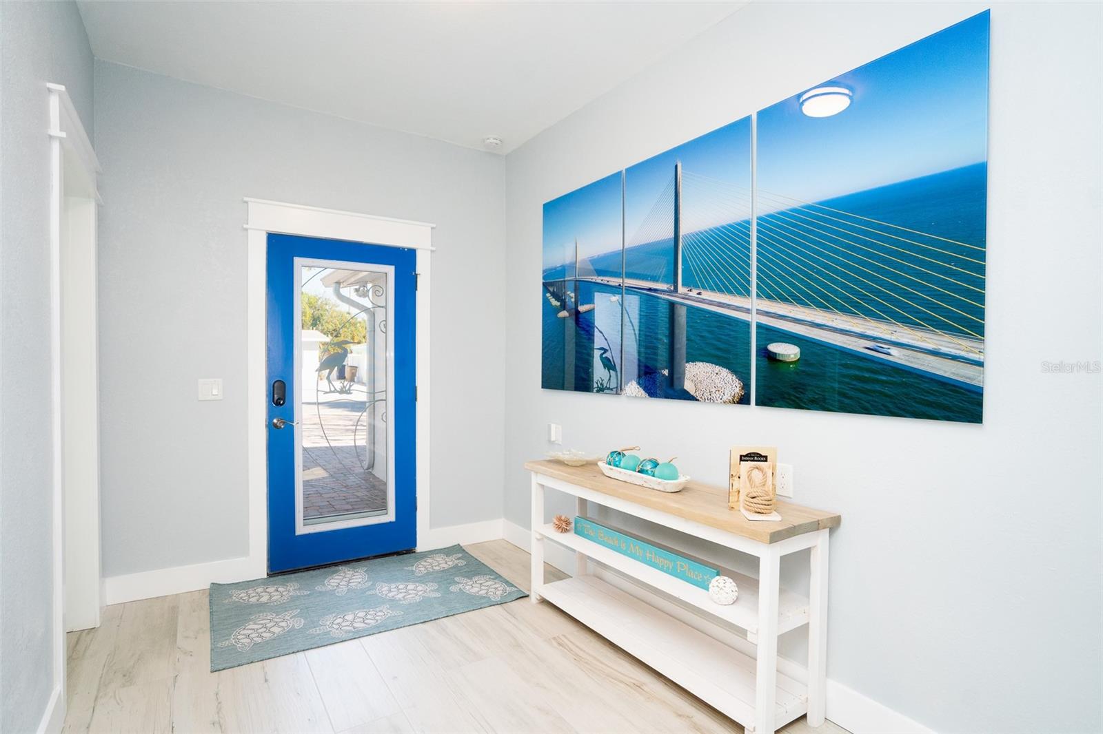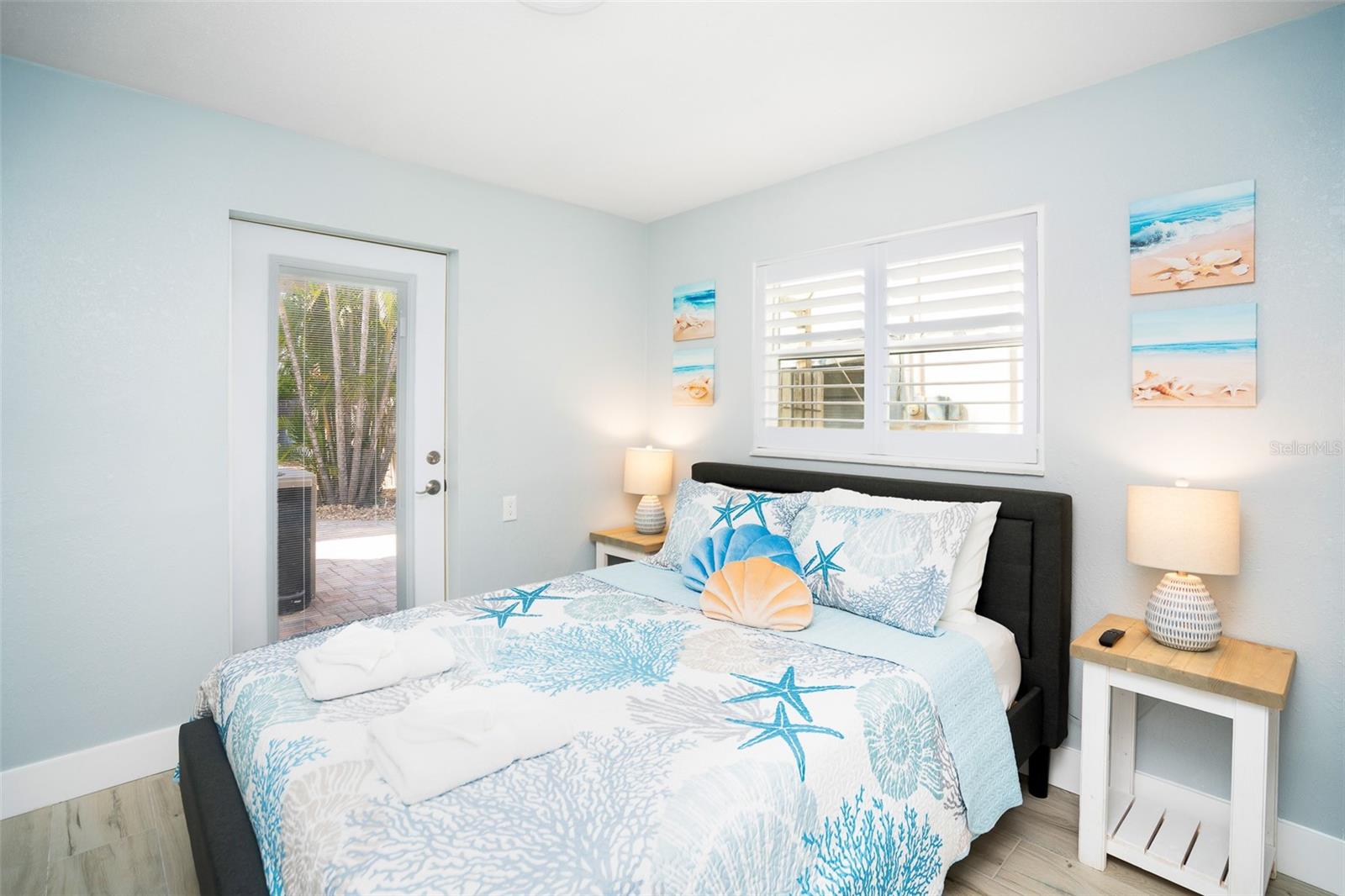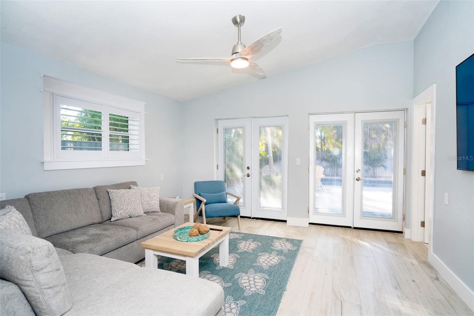 This beautifully renovated beach home is just a short walk to enjoy the sunset over the Gulf of Mexico on the beautiful sands of Indian Rocks Beach. This three bedroom, three bath home sits in a friendly community of beach homes nestled between the Gulf of Mexico and the Intracoastal Waterway. The fully pavered driveway, front patio and walkway welcome you to the front door which opens to an inviting foyer. The many windows and French doors allow significant natural light and take advantage of the backyard oasis with tropical landscaping, inviting pool, screened Gazebo and pavered lanai creating a peaceful, private and cozy space. The central focal point of the home is the Eat In Kitchen with Granite countertops a large island and is open to the light and bright Living room. Wood look Porcelain tiled floors throughout the home keep it cool and are easy to maintain. The French doors from the Living room are perfect for enjoying the coastal breeze or entertaining when you open all the doors to create an indoor/outdoor living space. The generously sized primary bedroom has an ensuite and walk in closet, it also has a mini split AC unit of its very own. Bedrooms two and three share the second full bath with dual sinks. Bath three has a large shower and laundry space boasting both a full size washer and full size dryer and includes a large granite folding table and is conveniently located off the Living room and close to the pool. The backyard is completely fenced and the low maintenance landscaping contributes to the beach house feel of the property. The pool was built in 2016, the roof replaced in 2021, appliances replaced in 2025.