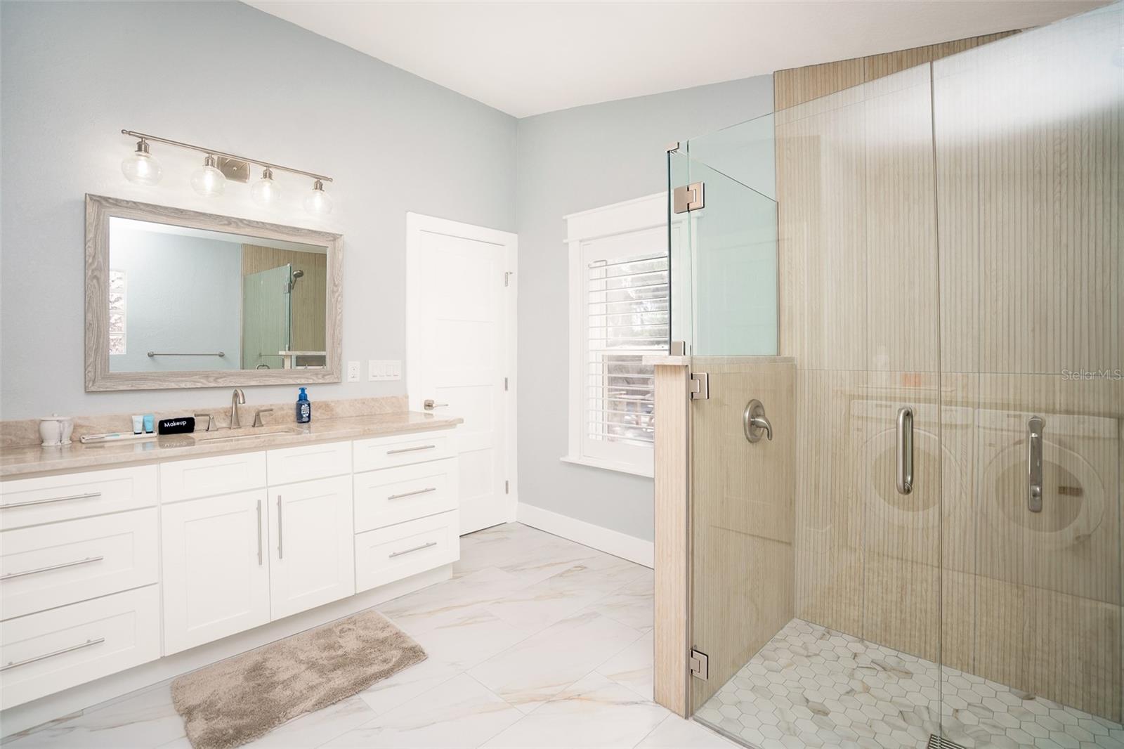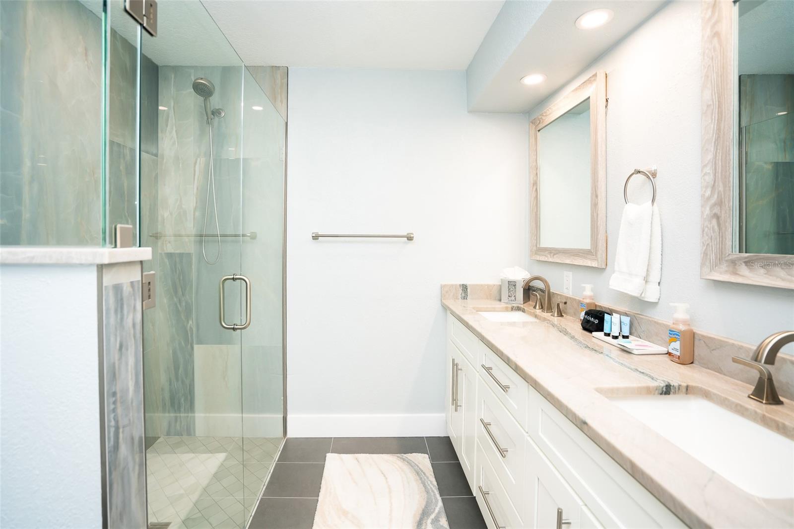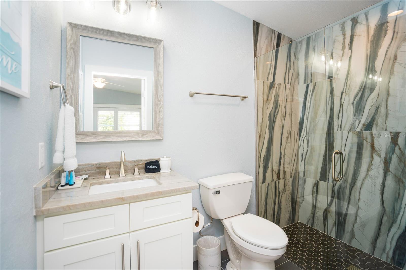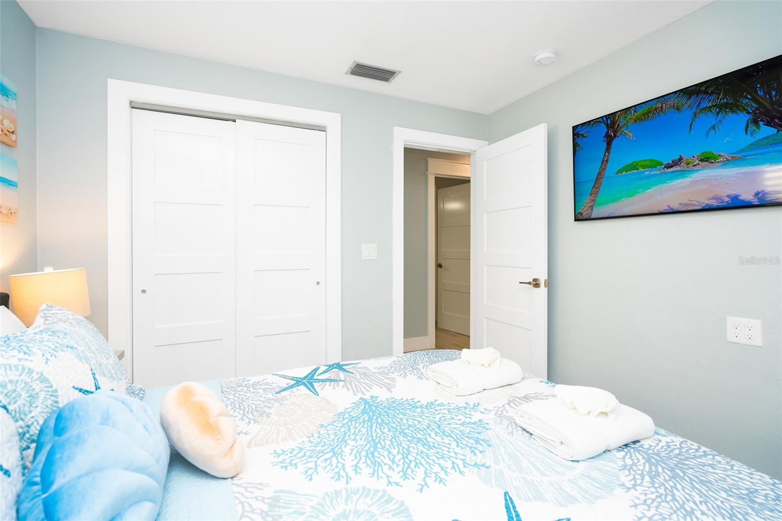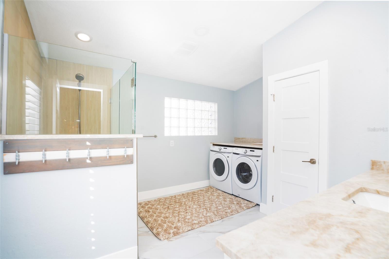 This beautifully renovated beach home is just a short walk to enjoy the sunset over the Gulf of Mexico on the beautiful sands of Indian Rocks Beach. This three bedroom, three bath home sits in a friendly community of beach homes nestled between the Gulf of Mexico and the Intracoastal Waterway. The fully pavered driveway, front patio and walkway welcome you to the front door which opens to an inviting foyer. The many windows and French doors allow significant natural light and take advantage of the backyard oasis with tropical landscaping, inviting pool, screened Gazebo and pavered lanai creating a peaceful, private and cozy space. The central focal point of the home is the Eat In Kitchen with Granite countertops a large island and is open to the light and bright Living room. Wood look Porcelain tiled floors throughout the home keep it cool and are easy to maintain. The French doors from the Living room are perfect for enjoying the coastal breeze or entertaining when you open all the doors to create an indoor/outdoor living space. The generously sized primary bedroom has an ensuite and walk in closet, it also has a mini split AC unit of its very own. Bedrooms two and three share the second full bath with dual sinks. Bath three has a large shower and laundry space boasting both a full size washer and full size dryer and includes a large granite folding table and is conveniently located off the Living room and close to the pool. The backyard is completely fenced and the low maintenance landscaping contributes to the beach house feel of the property. The pool was built in 2016, the roof replaced in 2021, appliances replaced in 2025.