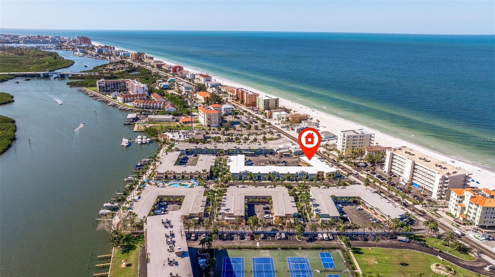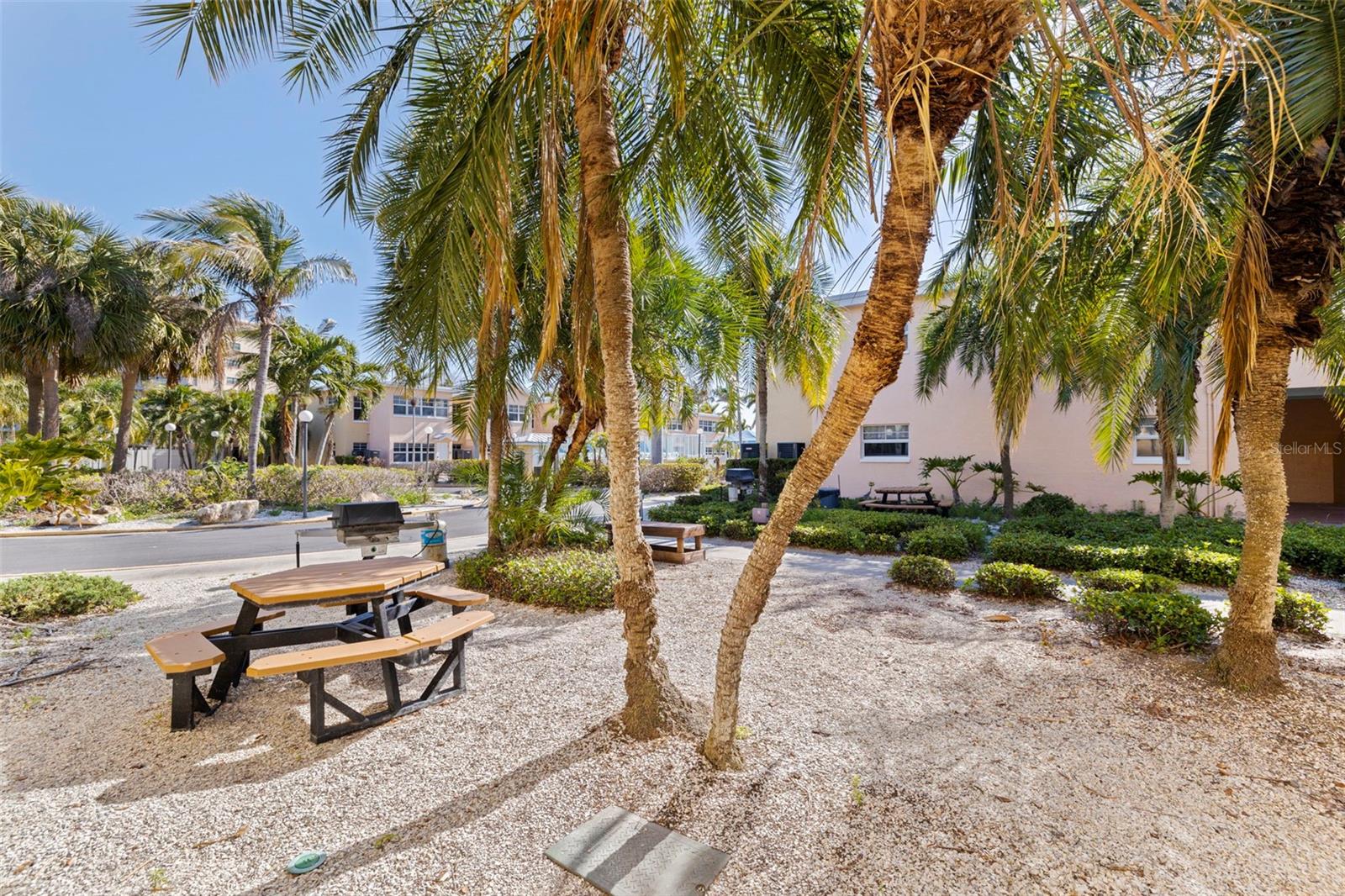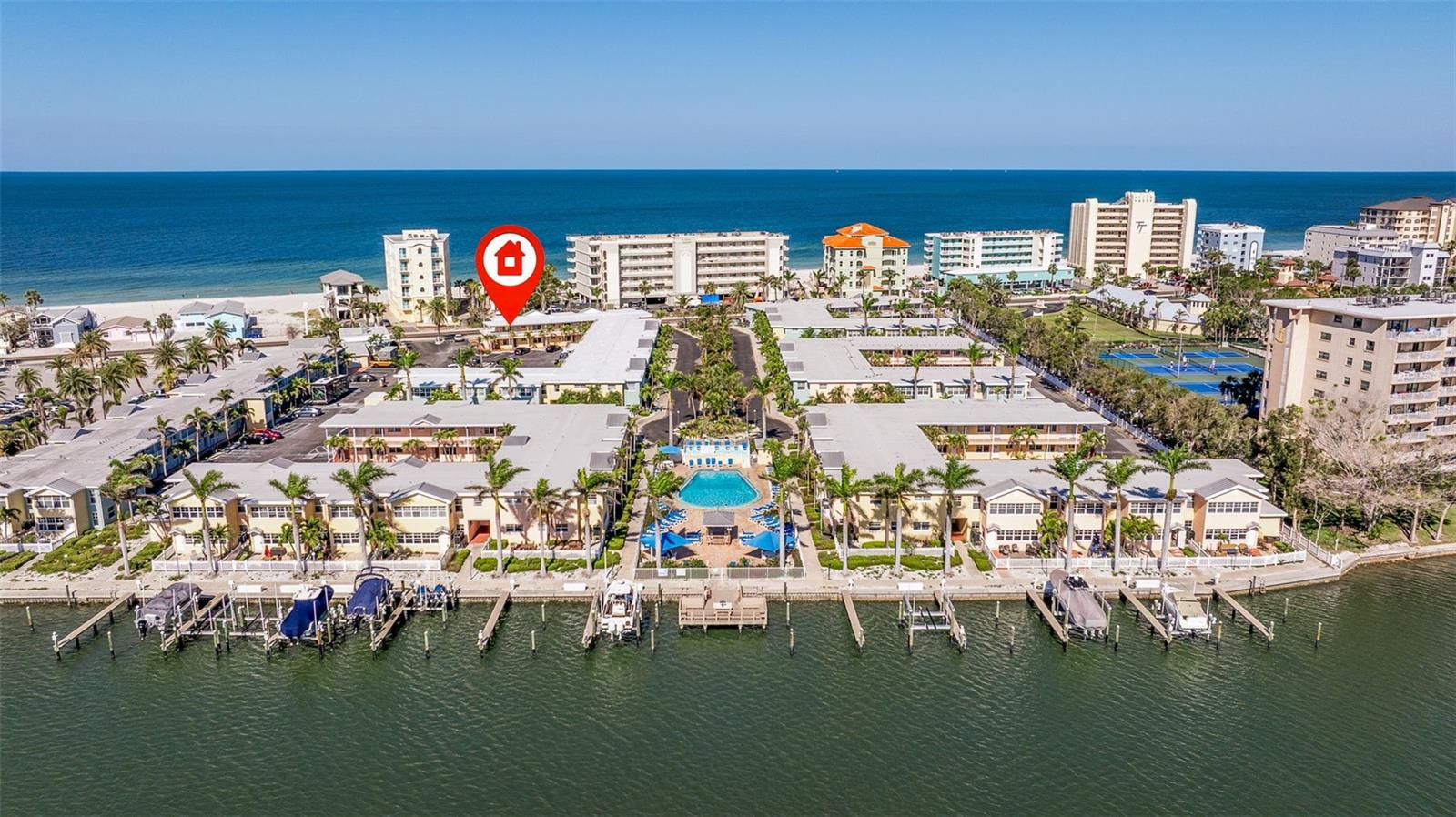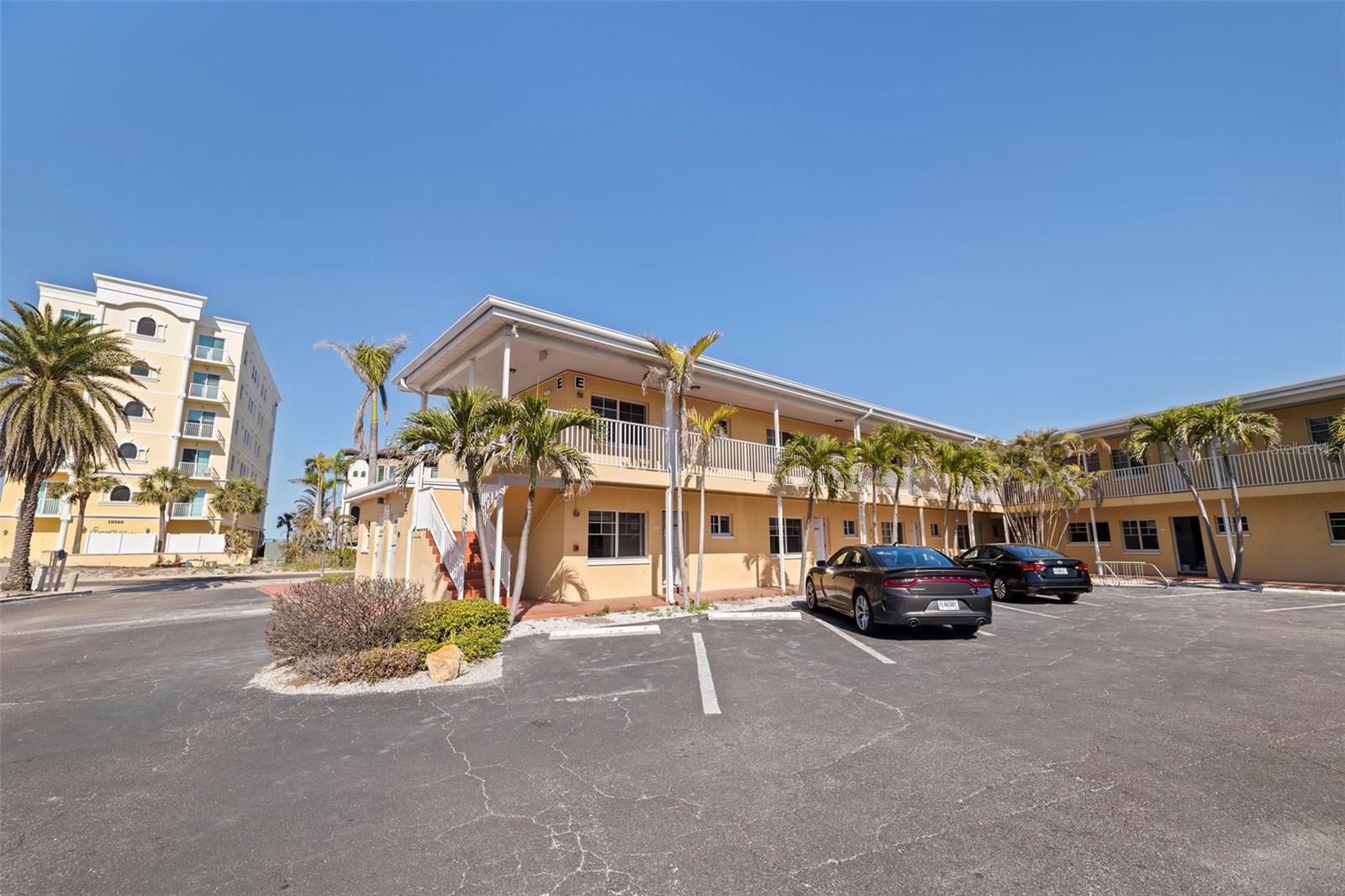 ** Best Price on the Beach ** Welcome to your dream coastal retreat with peek-a-boo views of the Gulf! This tastefully appointed 1-bedroom, 1-bathroom condo offers a rare opportunity for both relaxation and investment. Step inside and discover a turnkey, fully furnished haven boasting an open layout enhanced by beach friendly tile floors and a clean, beachy design. The Florida room is thoughtfully set up as a secondary sleeping area, providing flexibility for additional guests or a cozy reading nook. The kitchen is equipped with a range, refrigerator, and dishwasher, perfect for whipping up your favorite meals with ease. Air conditioning provides comfort year-round, ensuring a pleasant environment no matter the season. This lowrise, walk-up unit offers the flexibility of either on-site management or the opportunity to self-manage, making daily living and potentially profitable daily rentals a breeze. Enjoy the communal pool for a refreshing dip, multiple outdoor grilling stations for al fresco dining, or simply walk across the street to enjoy the pristine beach. This property is not just a home; it's a smart investment in a sought-after location. Experience the perfect blend of coastal charm and modern convenience—your ideal beachside lifestyle awaits!