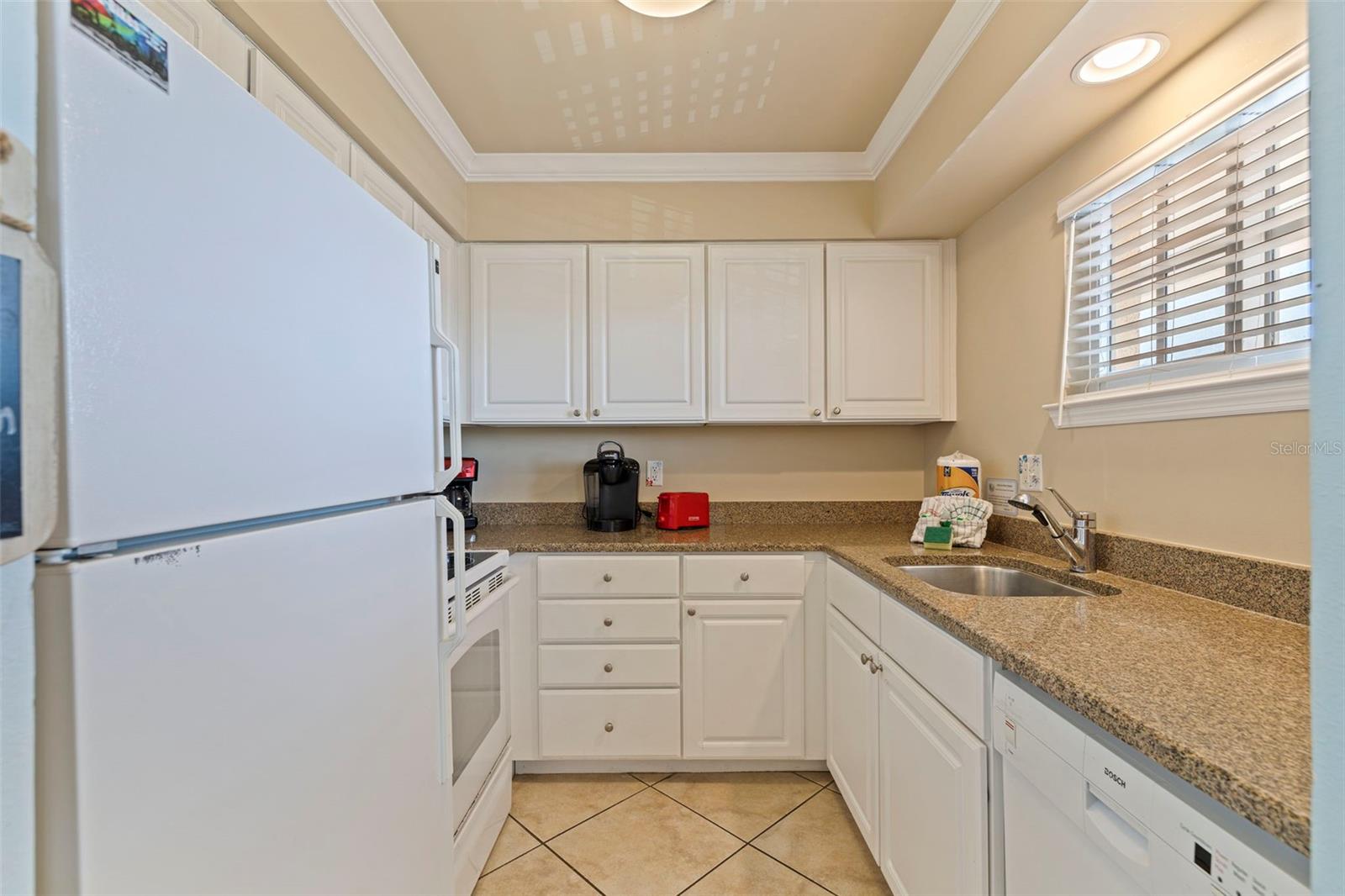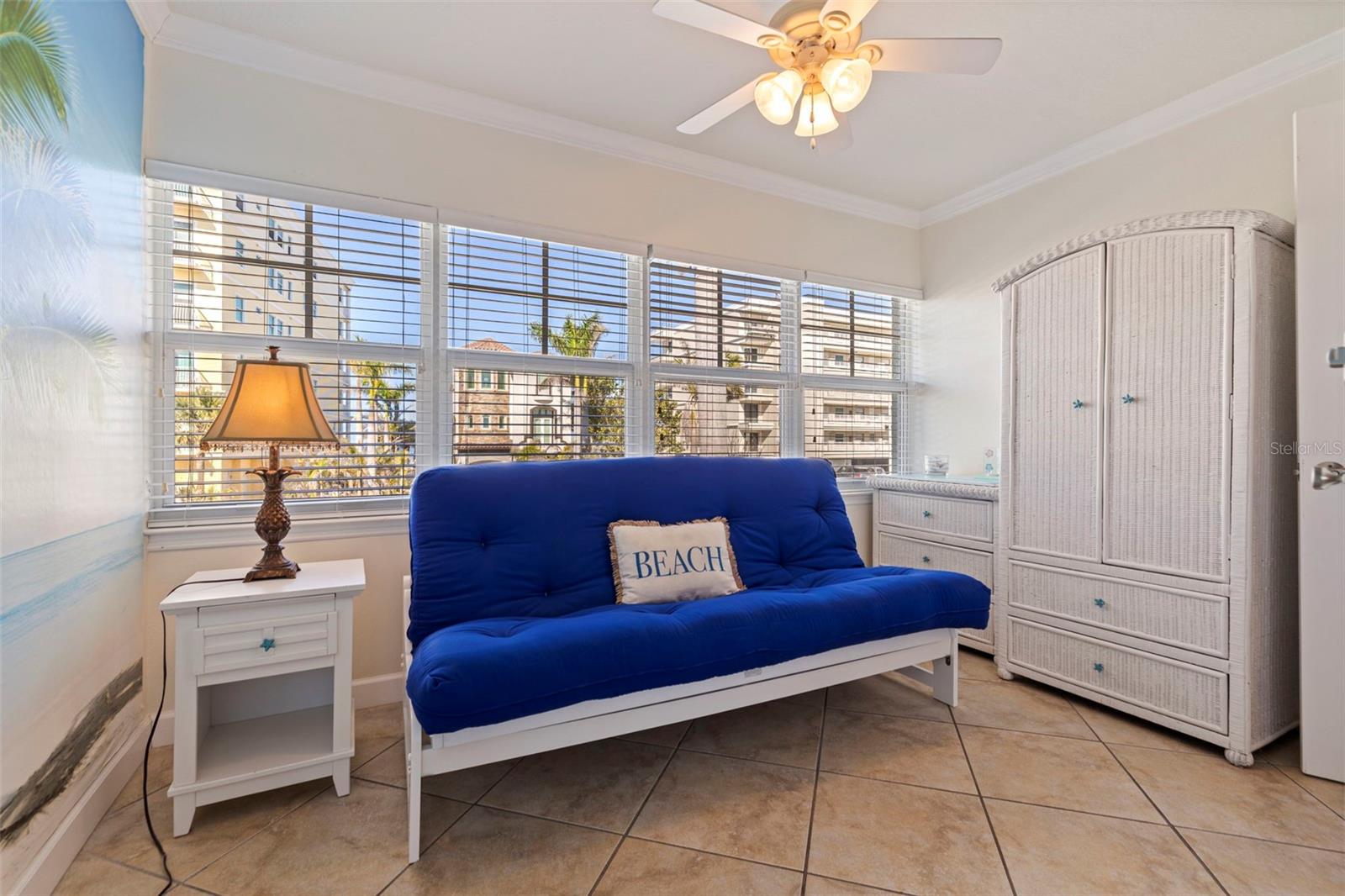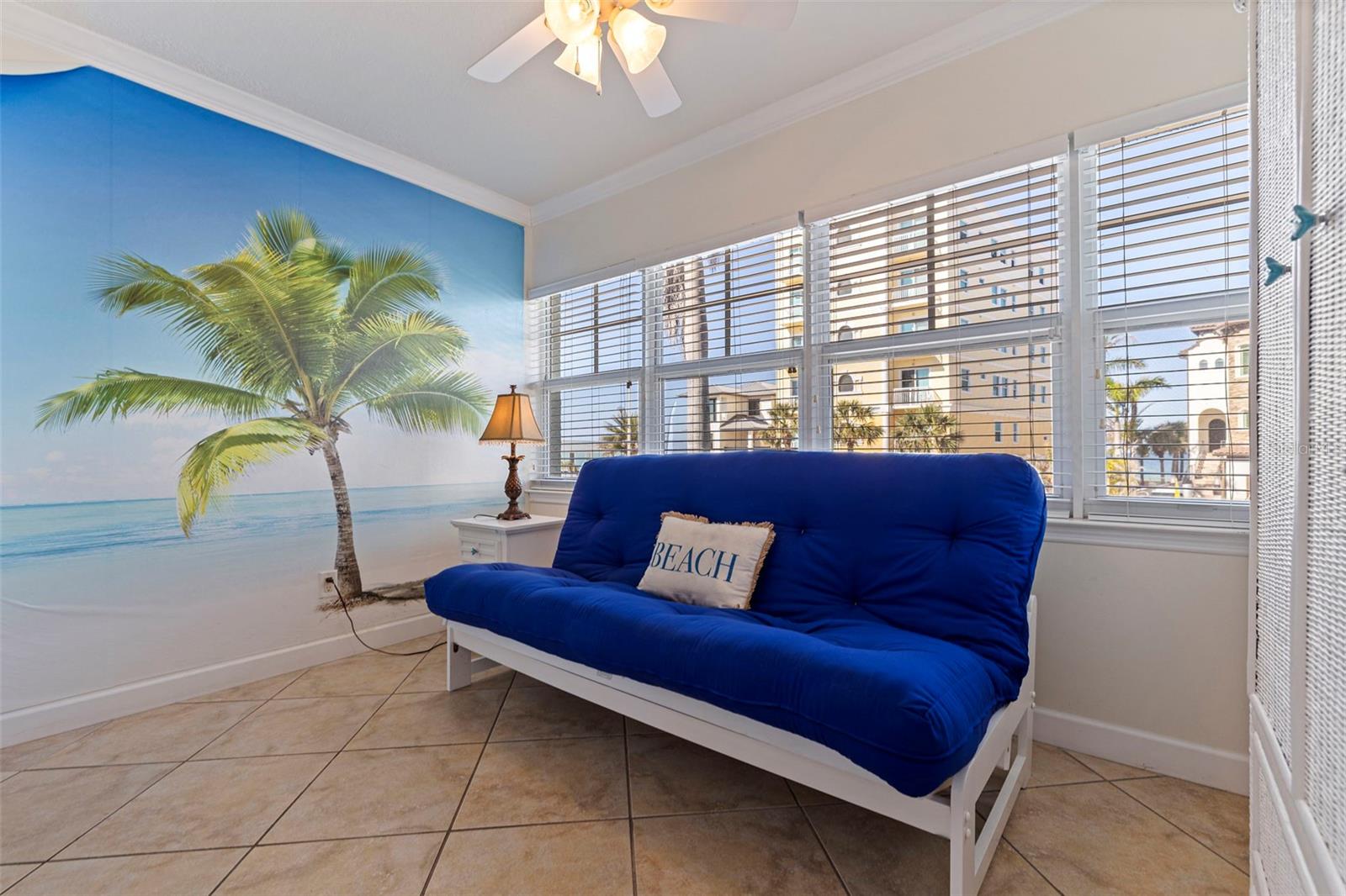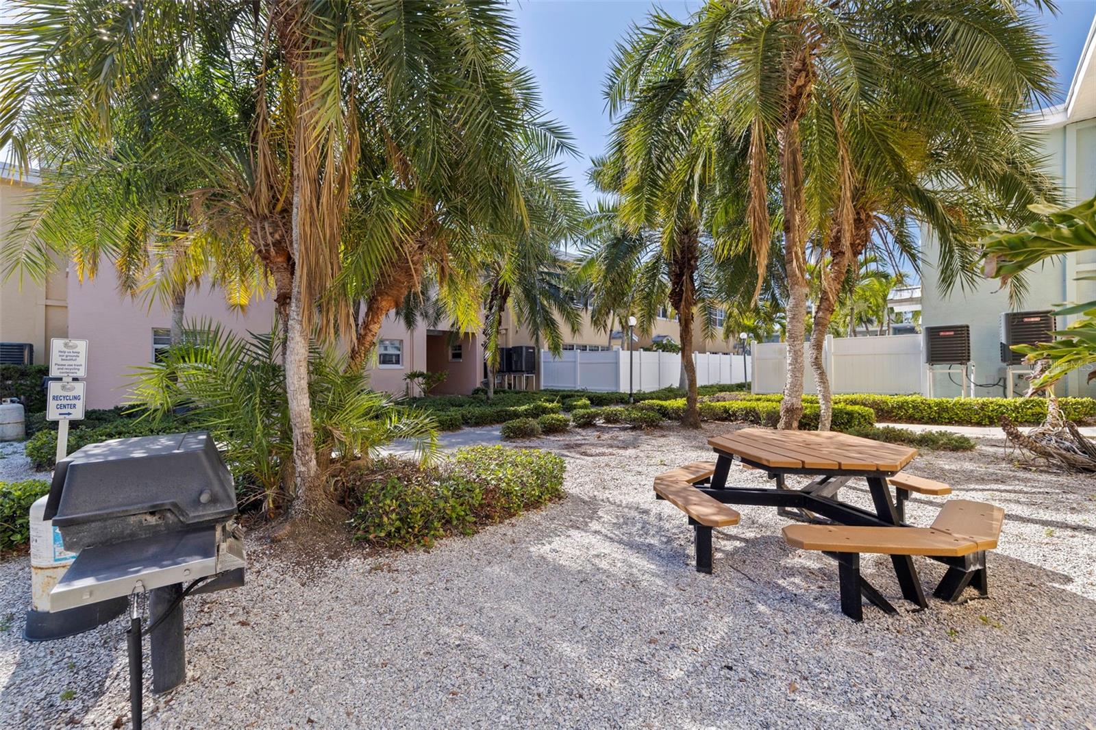 ** Best Price on the Beach ** Welcome to your dream coastal retreat with peek-a-boo views of the Gulf! This tastefully appointed 1-bedroom, 1-bathroom condo offers a rare opportunity for both relaxation and investment. Step inside and discover a turnkey, fully furnished haven boasting an open layout enhanced by beach friendly tile floors and a clean, beachy design. The Florida room is thoughtfully set up as a secondary sleeping area, providing flexibility for additional guests or a cozy reading nook. The kitchen is equipped with a range, refrigerator, and dishwasher, perfect for whipping up your favorite meals with ease. Air conditioning provides comfort year-round, ensuring a pleasant environment no matter the season. This lowrise, walk-up unit offers the flexibility of either on-site management or the opportunity to self-manage, making daily living and potentially profitable daily rentals a breeze. Enjoy the communal pool for a refreshing dip, multiple outdoor grilling stations for al fresco dining, or simply walk across the street to enjoy the pristine beach. This property is not just a home; it's a smart investment in a sought-after location. Experience the perfect blend of coastal charm and modern convenience—your ideal beachside lifestyle awaits!