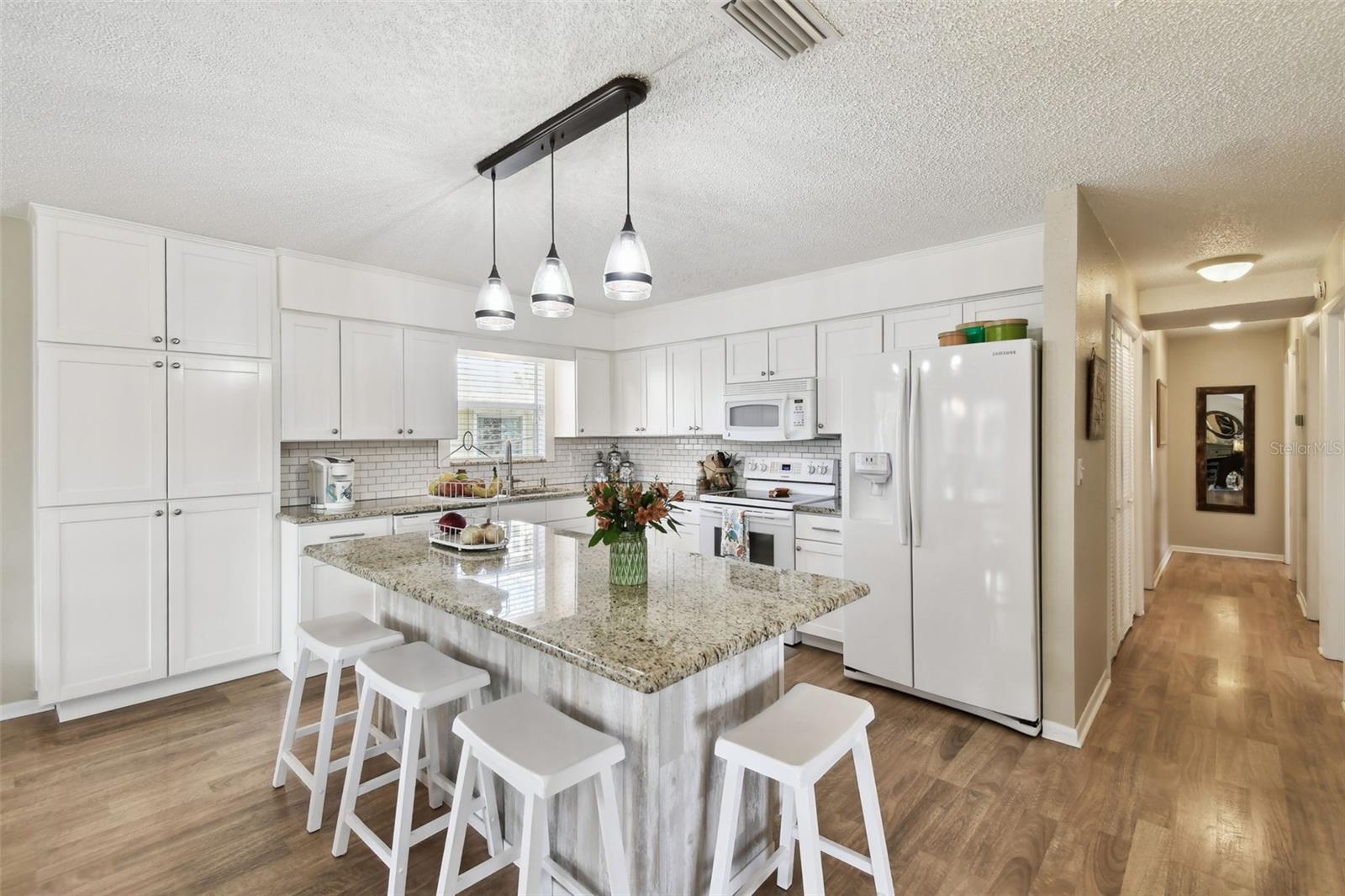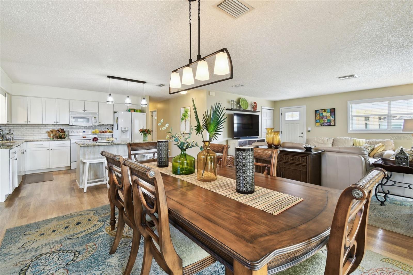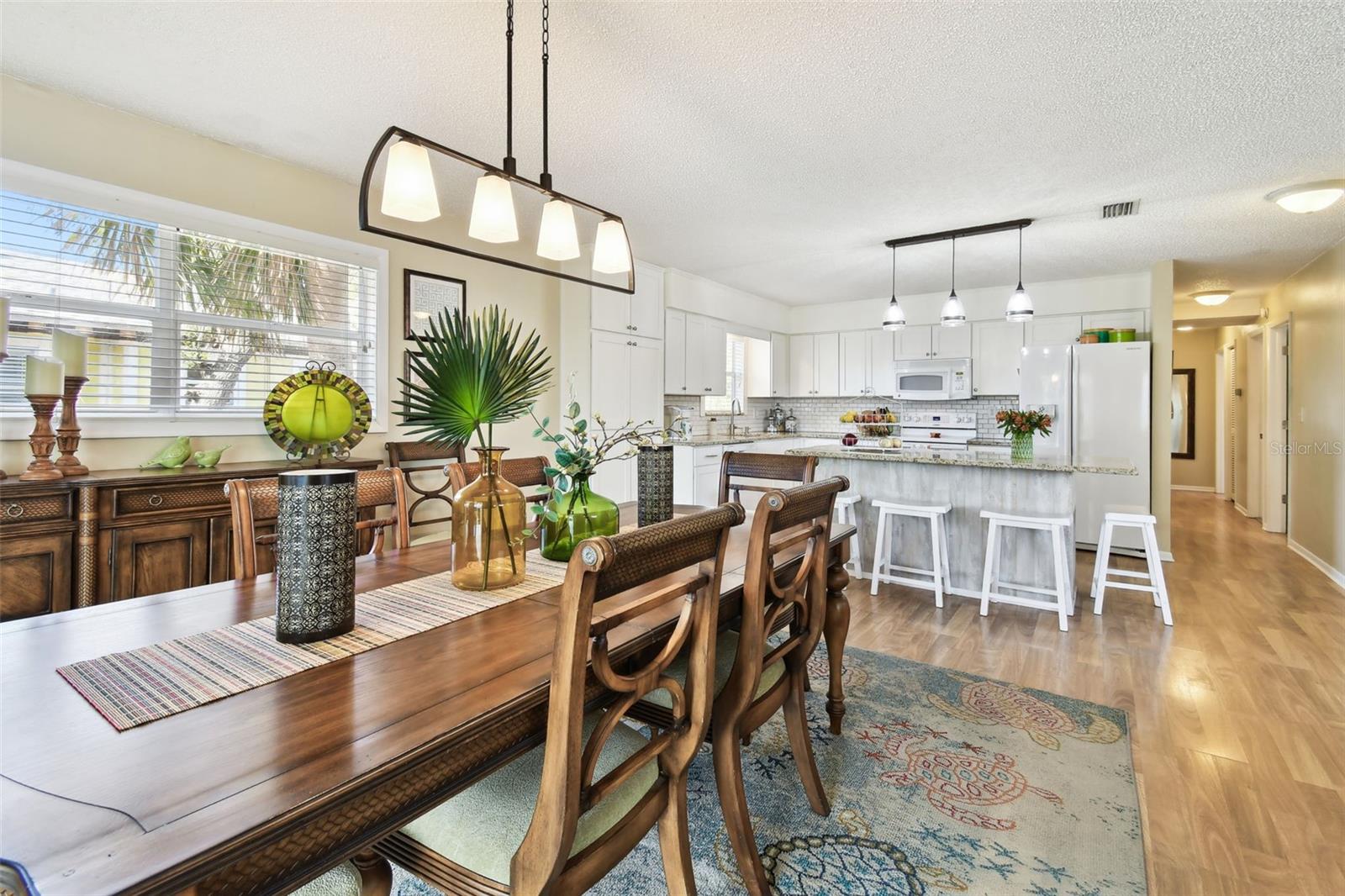 Whether you’re seeking a year round residence, a coastal vacation retreat, or a sound investment, this Indian Rocks Beach home checks every box. Just a five minute stroll from your front door brings you to sugar sand shores and unforgettable Gulf sunsets. Step inside this light filled 3 bedroom, 2 bathroom home where over 1,500 square feet of thoughtfully designed living space seamlessly connects. An open concept living room, dining area and kitchen create a perfect gathering place - ideal for entertaining or simply keeping everyone together. Rich wood look laminate flows underfoot in the living area, while the kitchen delights with white Shaker cabinetry, soft close drawers, gleaming granite countertops, a built in pantry and a center island with extra seating for casual meals and morning coffee. Adjacent to the living space, two brand new impact rated sliding doors open to a spacious screened in lanai - an inviting spot to relax, host guests, or simply savor the salty breeze year round. Inside, the dining area easily accommodates a large table for holiday feasts or game nights. Retreat to the quiet rear wing of the home, where two guest bedrooms share a spacious full bath. On the opposite side, discover the expansive primary suite, big enough for a king size bed, nightstands and even a cozy work from home nook. Both bathrooms feature modern vanities and tub shower combinations. Below the living quarters, a spacious 4+ car garage offers secure parking and abundant storage for toys, jet skis and paddleboards and more. The living area is elevated, providing peace of mind from storm-related flooding. Current owner's flood insurance premiums are under $800 per year. During Hurricane Helene, only the garage saw water, and because it’s concrete and stucco, a wash and rinse was all it took to return to pre-storm condition. Beyond the beach, you’re within walking distance to shopping, dining and entertainment: Original Crabby Bill’s for fresh seafood, Jake’s Coastal Cantina for Tex-Mex, Tropical Ice Cream and Coffee for sweet treats, Anecdote Brewing Company for local craft beers, VIP Mexican Restaurant, CVS and even Splash Harbour Water Park. Ready to explore every detail? Take a virtual walk through of the 3D model from home by clicking this link: https://my.matterport.com/show/?m=xKdMgyzHCQa&mls=1, then schedule your in person appointment today. Coastal living awaits!