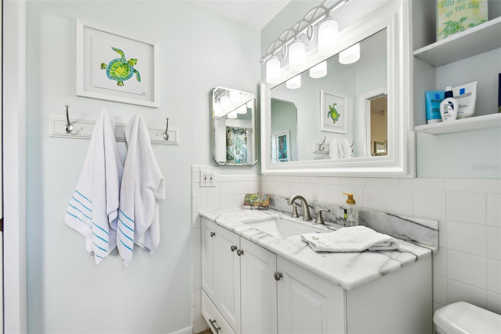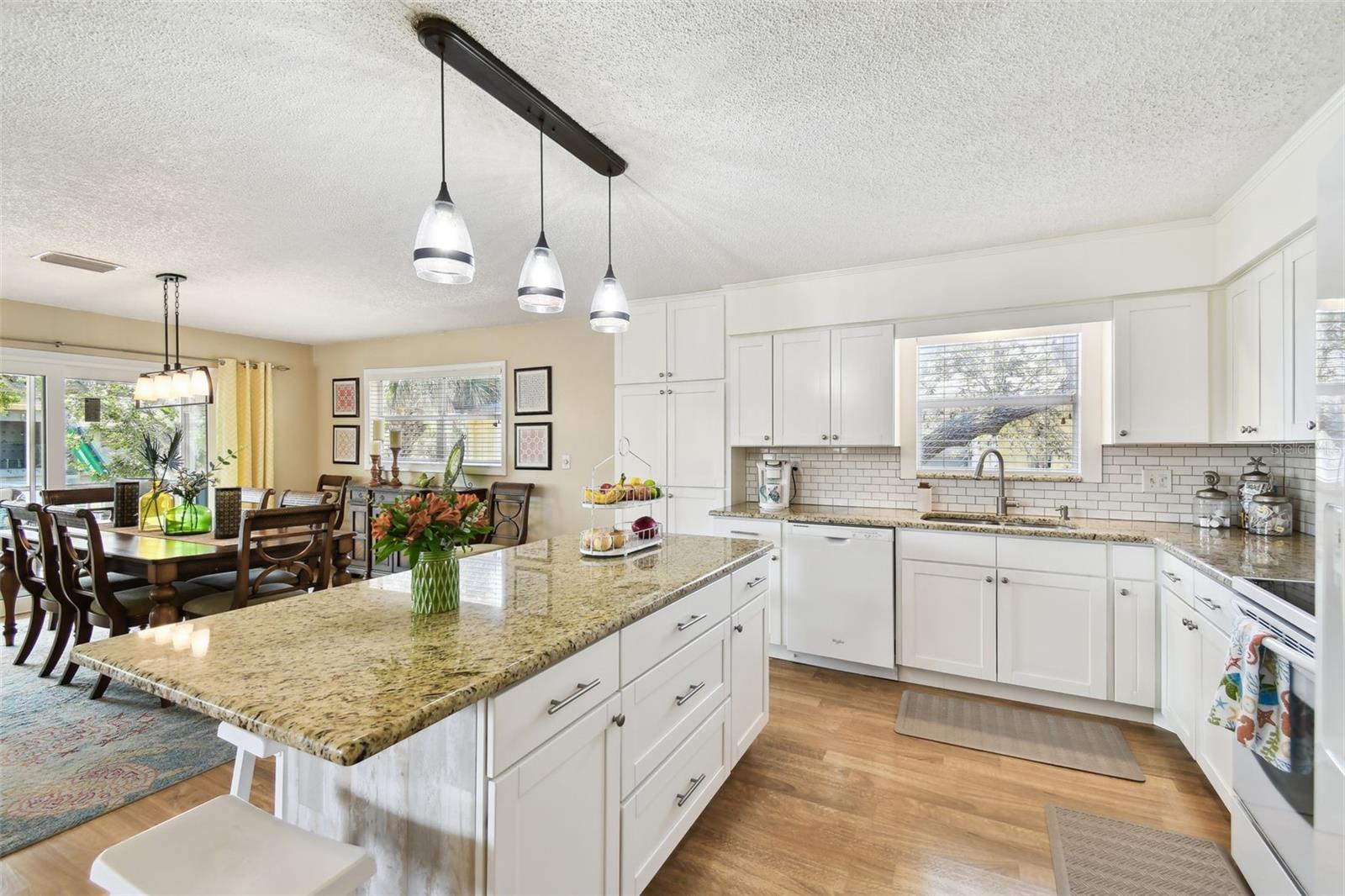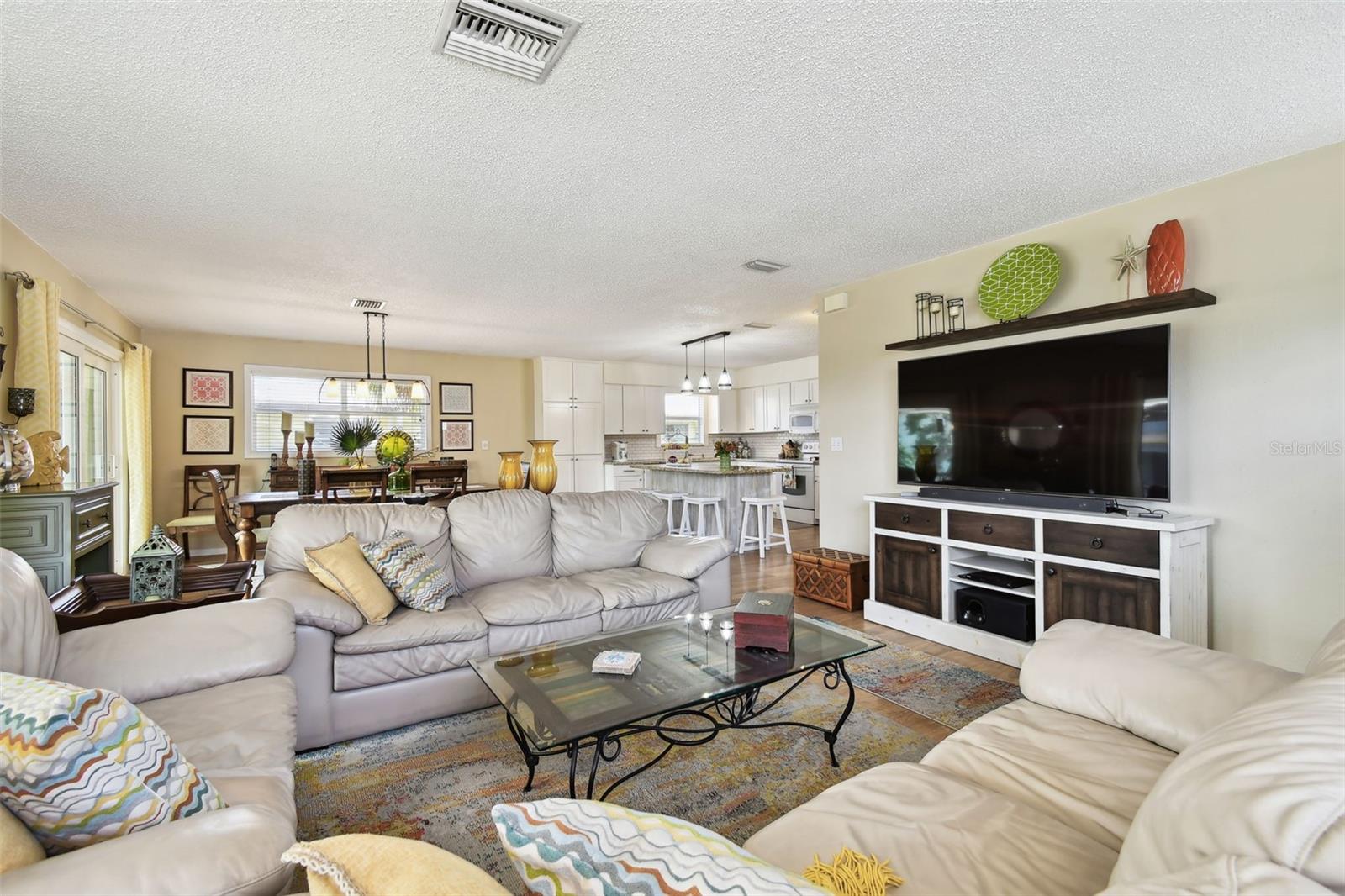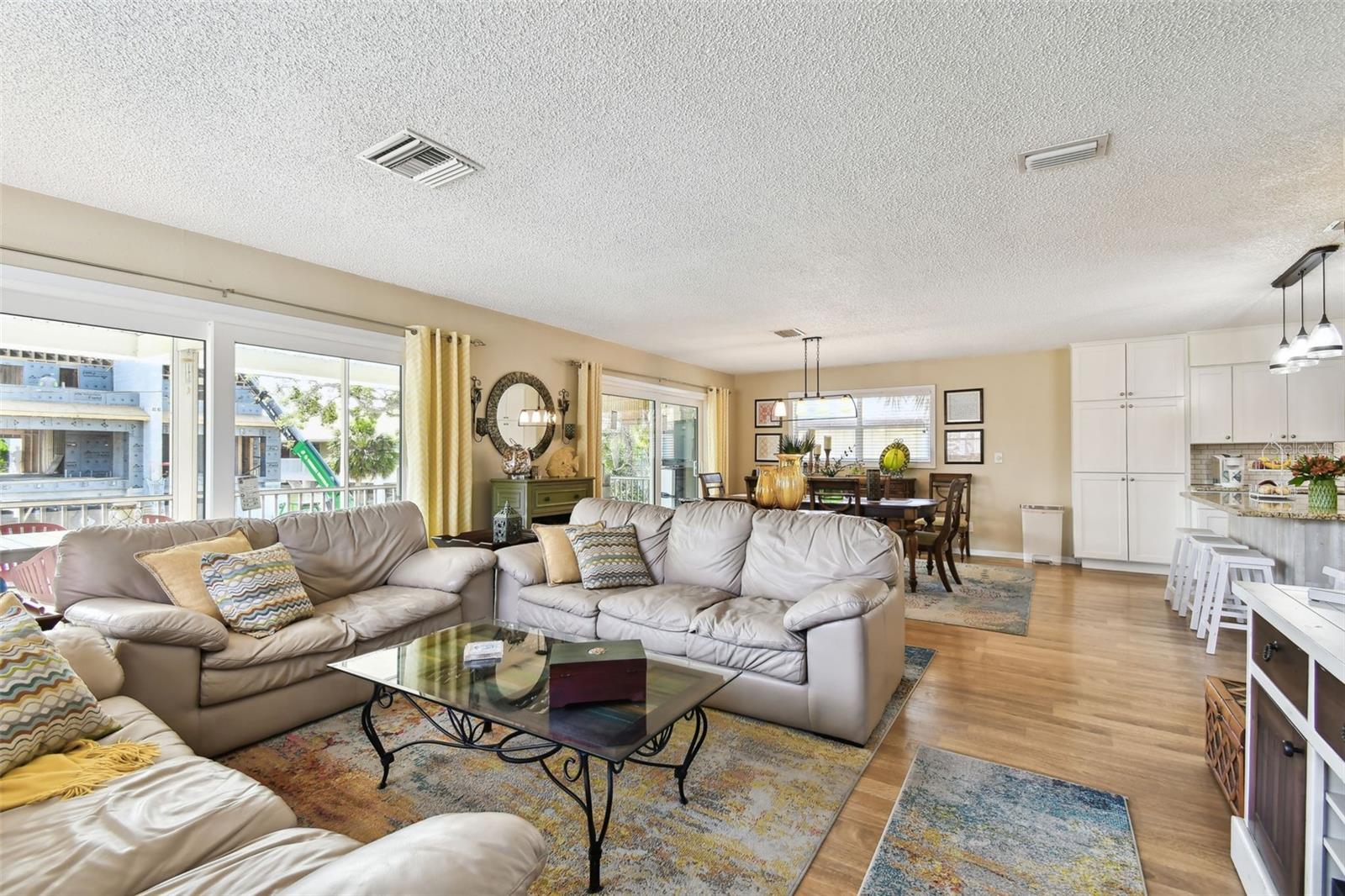 Whether you’re seeking a year round residence, a coastal vacation retreat, or a sound investment, this Indian Rocks Beach home checks every box. Just a five minute stroll from your front door brings you to sugar sand shores and unforgettable Gulf sunsets. Step inside this light filled 3 bedroom, 2 bathroom home where over 1,500 square feet of thoughtfully designed living space seamlessly connects. An open concept living room, dining area and kitchen create a perfect gathering place - ideal for entertaining or simply keeping everyone together. Rich wood look laminate flows underfoot in the living area, while the kitchen delights with white Shaker cabinetry, soft close drawers, gleaming granite countertops, a built in pantry and a center island with extra seating for casual meals and morning coffee. Adjacent to the living space, two brand new impact rated sliding doors open to a spacious screened in lanai - an inviting spot to relax, host guests, or simply savor the salty breeze year round. Inside, the dining area easily accommodates a large table for holiday feasts or game nights. Retreat to the quiet rear wing of the home, where two guest bedrooms share a spacious full bath. On the opposite side, discover the expansive primary suite, big enough for a king size bed, nightstands and even a cozy work from home nook. Both bathrooms feature modern vanities and tub shower combinations. Below the living quarters, a spacious 4+ car garage offers secure parking and abundant storage for toys, jet skis and paddleboards and more. The living area is elevated, providing peace of mind from storm-related flooding. Current owner's flood insurance premiums are under $800 per year. During Hurricane Helene, only the garage saw water, and because it’s concrete and stucco, a wash and rinse was all it took to return to pre-storm condition. Beyond the beach, you’re within walking distance to shopping, dining and entertainment: Original Crabby Bill’s for fresh seafood, Jake’s Coastal Cantina for Tex-Mex, Tropical Ice Cream and Coffee for sweet treats, Anecdote Brewing Company for local craft beers, VIP Mexican Restaurant, CVS and even Splash Harbour Water Park. Ready to explore every detail? Take a virtual walk through of the 3D model from home by clicking this link: https://my.matterport.com/show/?m=xKdMgyzHCQa&mls=1, then schedule your in person appointment today. Coastal living awaits!