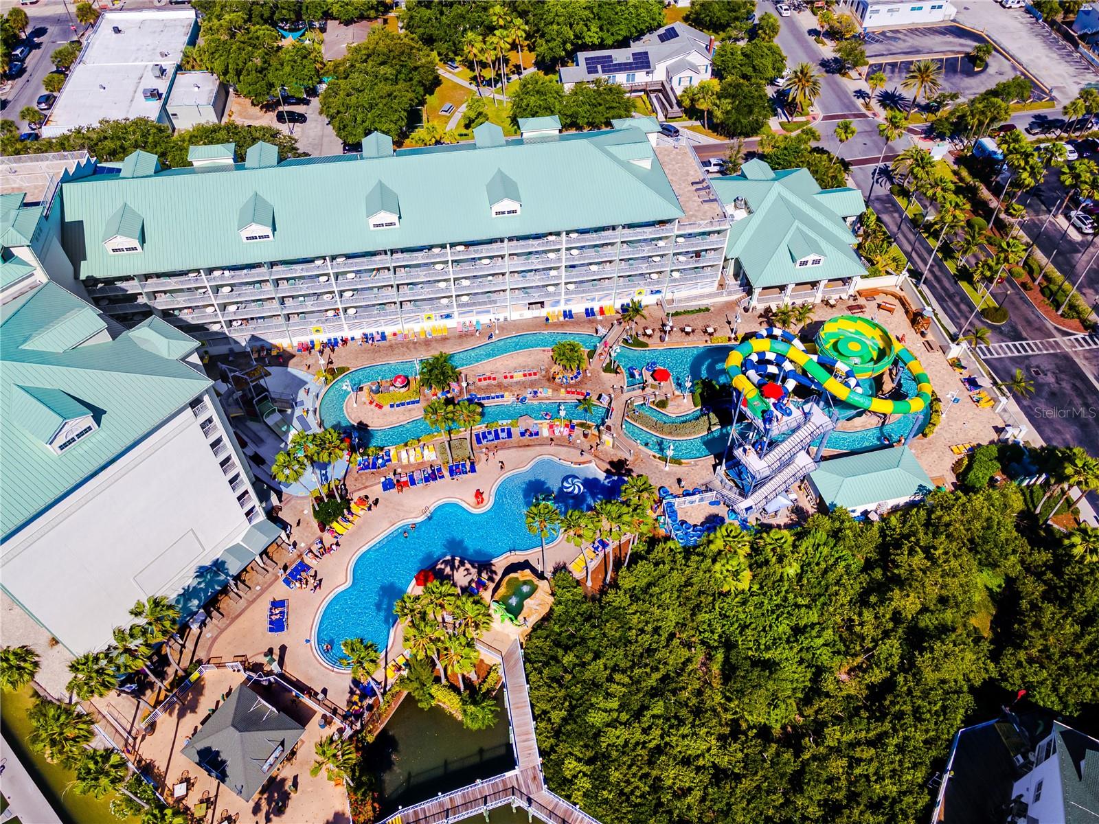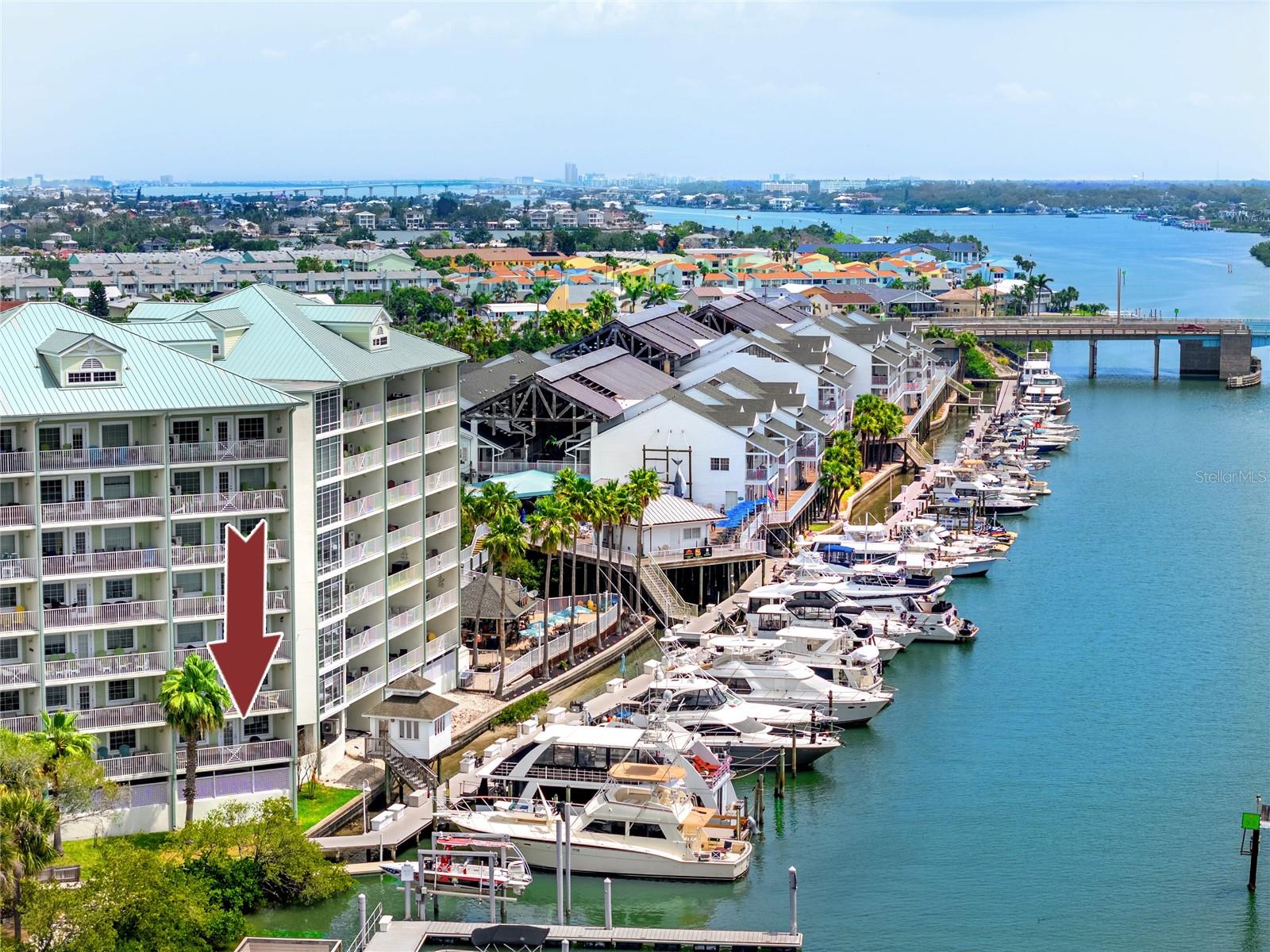 Turnkey 2BR/2BA condo-hotel at Harbourside at Marker 33, just steps to the beach and Splash Harbour Waterpark, the only waterpark on the barrier islands! Located on the Point of the building, this fully furnished 2nd-floor unit offers spectacular, unparalleled direct water views of the Intracoastal from a 23-ft wide balcony, as well as access to a 7th floor rooftop sundeck with stunning sunset views of the Gulf! Designed for short-term rentals (3-night min, up to 120 days), this property offers excellent income potential and the flexibility for personal use. Split floor plan includes a spacious primary suite with king bed and walk-in shower, and a second suite with two queen beds and a full bath. Open kitchen, dining, and living area with ceramic plank floors, granite counters, shaker cabinets, and in-unit washer/dryer. Sale includes all furnishings, décor, appliances, linens, dishware, and beach gear—truly move-in or rent-ready. Owners and guests enjoy free daily waterpark passes, rooftop terraces, garage parking, and access to on-site amenities including restaurants, poolside service, adult beverages, and a Tiki Hut. The Waterpark has a lazy river, waterslides, splash pad and pool – something for everyone! Enjoy live music in the evenings, movies and sports projected on a wall of the building, and a Poolside Tiki Bar and gift shop. Harbourside Day Docks are available for our guests traveling by boat. Boat and bicycle rentals are also available nearby. Located near restaurants, shops, and just a short drive to Clearwater Beach, John’s Pass, and two major airports (TPA & PIE).