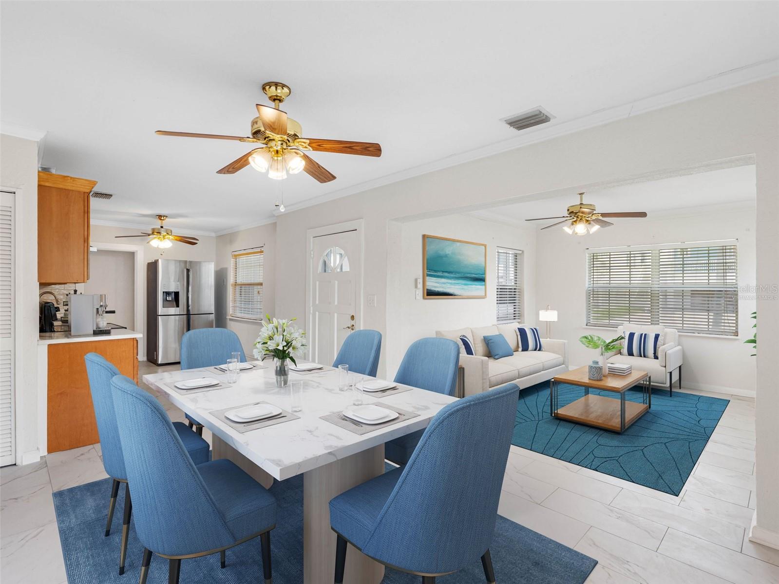 One or more photo(s) has been virtually staged. A MUST SEE! MOVE-IN, SHORT TERM RENTAL READY, coastal retreat. 3 bedroom, 2 bathroom Indian Rocks Beach home, ideally situated within walking distance to pristine beaches in a golf cart–friendly community brimming with amenities. A thoughtfully designed split plan layout. Spacious living, dining, and kitchen areas perfect for entertaining or relaxation. The home features new ceramic tile flooring throughout, a refreshed kitchen with updated cabinets and appliances, plus two beautifully refinished full bathrooms. Enjoy the indoor laundry room with ample cabinetry and counter space—ideal for handling those sandy beach essentials in cool comfort. Step outside to an over-sized, private, newly fenced backyard, along with inviting front and back patios, perfect for gatherings or peaceful moments. An air-conditioned work shed provides the perfect environment for year-round storage, hobbies and DIY projects. This versatile space adds significant value and flexibility to your investment. For added piece of mind, this charming home has a 2019 shingle roof, a Flow Stop flood barricade for the front door, a Flood Dam barricade for the rear door, and a newly installed manual sewer back flow stop to help prevent water intrusion in the event of a flood. Embrace the vibrant Indian Rocks Beach lifestyle with access to sandy Gulf shores, top-notch dining, local shops, pickle ball, tennis and basketball courts, parks and playground fun for the little ones, a community boat launch, and cultural attractions including a historical museum and Beach Art Center, all a walk away. Whether seeking a primary residence, a vacation haven or an investment rental property, this home offers an affordable gateway to sun-soaked days and seaside fun. Don’t miss the chance to live your Florida dream!