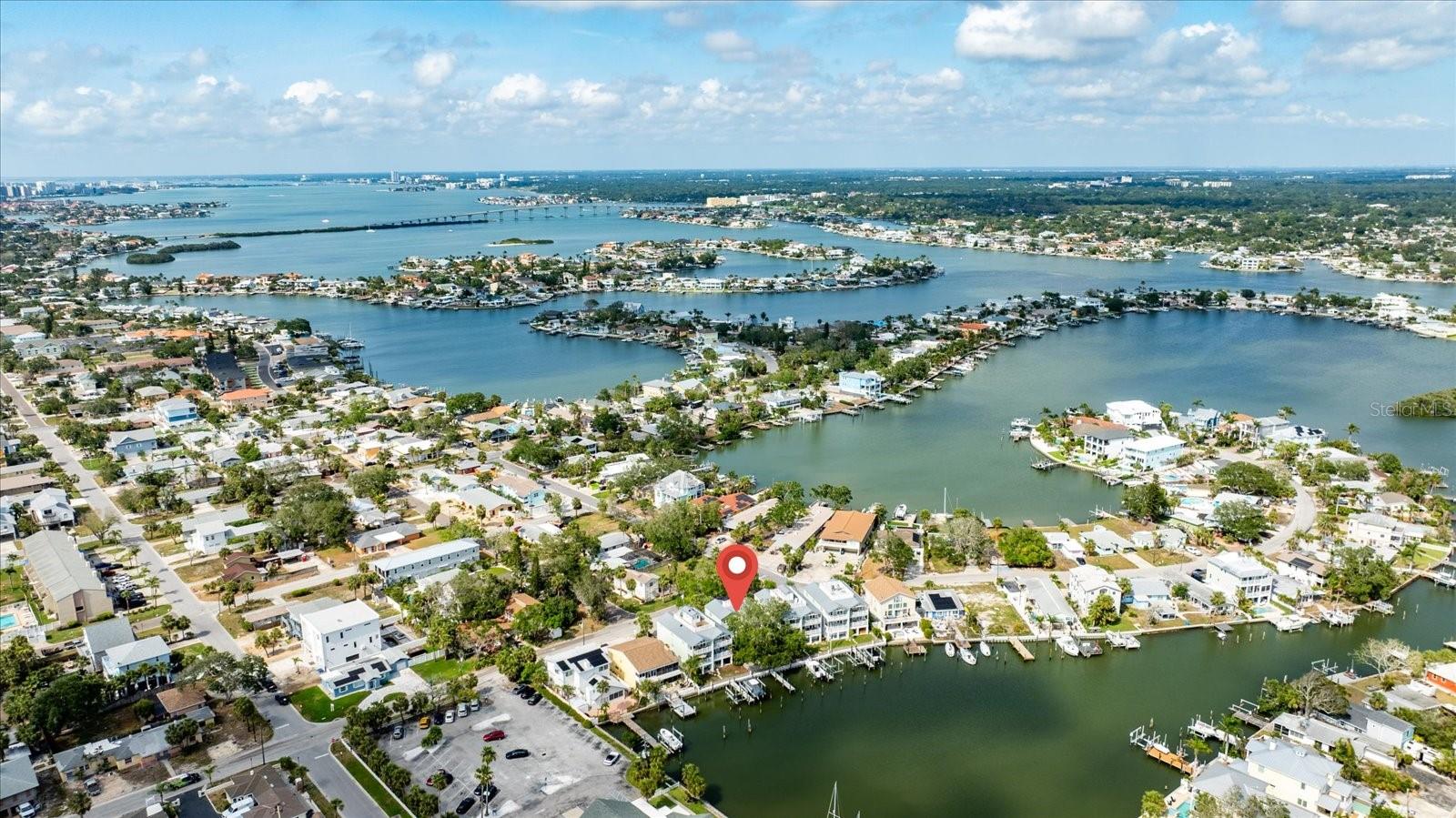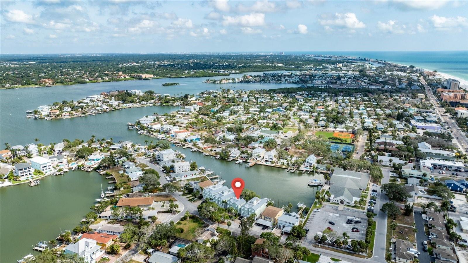One or more photo(s) has been virtually staged. Beautiful setting! Exquisitely updated residence that boasts the spaciousness and privacy of a single-family home without the upkeep! This is a very RARE find as it includes 2 DEEP WATER BOAT SLIPS! The ELEVATED floor plan offers 2 bedrooms, office space or den, and 2.5 luxurious baths! Inviting wide terraces off of the great room and spacious primary suite capture long views of the wide cove with direct access to the intracoastal waterway and Gulf. Imagine waking up to impressive sunlight views and stepping onto either of your own deep water boat slips located directly behind your home; So convenient for jumping on your private vessel for a day of cruising to the easily accessible Gulf waters. This property exudes the essence of what Florida living is ALL about-fishing, cruising, kayaking, or beachcombing miles of pristine sandy shores just one block away. Completely remodeled and enhanced in ALL areas, the interior upgrades are impressive! Take note of the fossil stone flooring at the impressive entry. Fully equipped kitchen so rich in details; handsome cabinetry, Cambria counters and newer appliances reconfirm that this is an area any chef would welcome for the best of culinary experiences. A large laundry area has additional storage as do many areas of this attractive home. Stunning baths with exquisite tile work complement walls and showers. The primary bedroom is large with a spacious custom finished walk in closet and and welcoming private terrace, A convenient oversized two car garage is adjacent to a multipurpose room of over 400 square feet - ideal for a home gym or hobby area. Newer windows, French doors, and systems provides peace of mind for the new owners. This is a wonderful property in a small enclave of only 7 residences in a popular beach community that few compare with-small town friendly atmosphere- fabulous restaurants, parks and community events! Embrace the opportunity to live in one of the most beloved coastal communities in the Tampa Bay area!