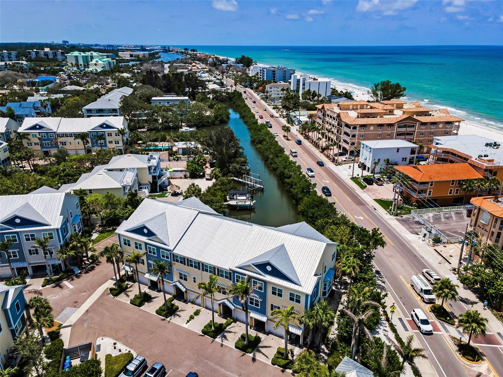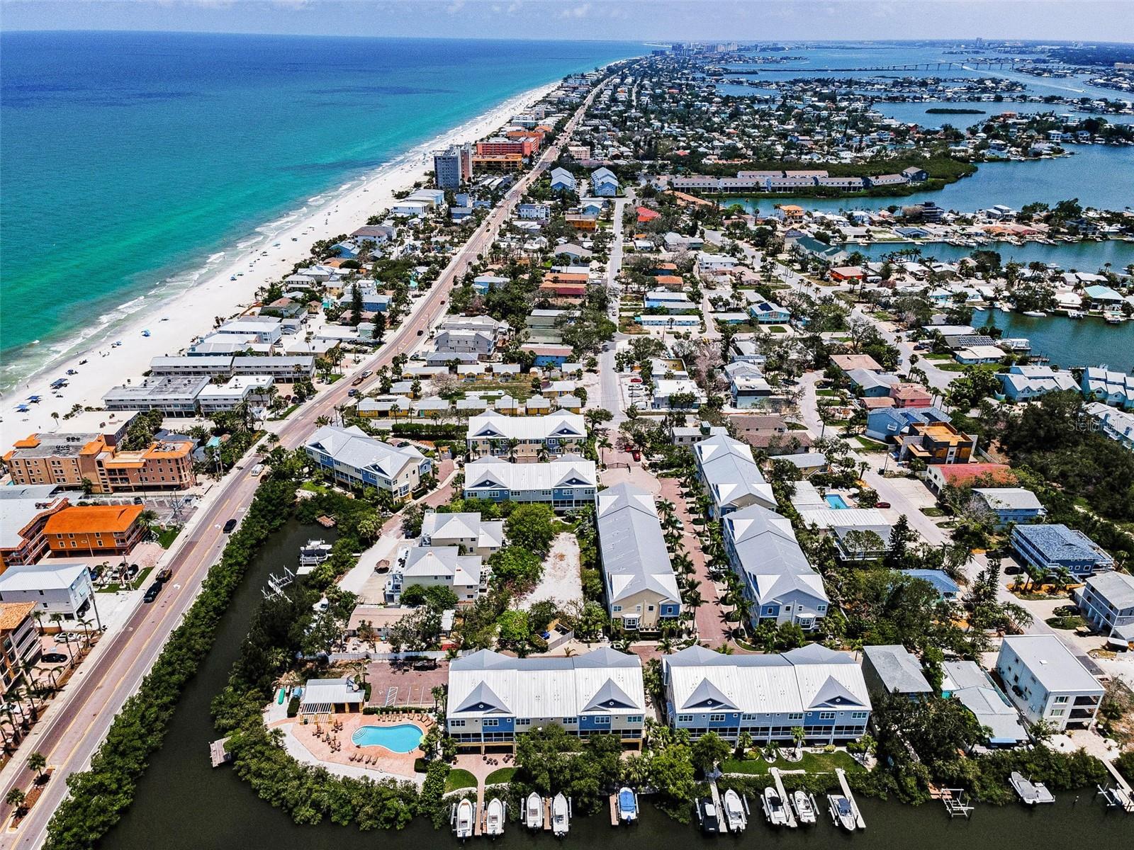 Discover Coastal elegance in this serene townhome, perfectly positioned just across the street from the sugary sands of Indian Rocks Beach in a secure gated community. Offering modern design, high-end finishes, and spacious interiors, this stunning residence provides the ideal blend of comfort and convenience. The Cove at Indian Rocks Beach, this ultra-chic townhome community was built in 2015 by Taylor Morrison! Resort-style amenities feature gated, secure entry, community heated pool & spa, grilling area, docks & directly across Gulf Blvd to the beach! Boasting 3 bedrooms, 3 full bathrooms, and a versatile main level bonus room ideal as a home office, guest suite, formal dining area, or media space, this home with 10-foot ceilings and crown molding effortlessly blends function with style across three levels of refined living—all accessible by your own private in-unit elevator. Offering captivating contemporary flair with distinctive upgrades, this striking waterfront townhome with a versatile floor plan features a private elevator & top of the line upgrades! Wide open 3 BR/3 BA 1935 SF unit with an oversized 2 Car tandem garage, large main level Lanai and lower-level covered patio overlooking the canal is perfect for relaxing! Experience the grandeur of soaring high 10 Ft ceilings that elevate every space with openness on the main level with a sleek, enticing kitchen with wood cabinets, granite counters, tumbled stone backsplash and an Upgraded appliance package! The Upper Level boasts 3 generous sized bedrooms to include the primary suite with a private sitting / office area to enjoy sunsets & water views. The sumptuous primary bath has double sinks, tiled shower and walk in closet! The secondary bedrooms are generous in size and there is a large utility room with space for a full-sized washer and dryer and additional storage. Additional amenities include an oversized 2 Car tandem garage with additional space for storage, along with ample room for all your toys and essentials. Premium location on a private cul-de-sac and steps to your gated pedestrian gate that leads to the sugary sands of the beach! "Private" grass area out back just off the lower-level patio, plantation shutters in all windows & front door, crown molding throughout, granite counters, cabinets & wall tile in ALL baths, private elevator to all floors, covered front entry, gracious foyer and tiled steps to the main level. The complex wraps around the intracoastal & offers 2 Boat Docks, Community Pool & Secured Gated Entry. The Cove at Indian Rocks Beach, LIKE NEW without the wait!