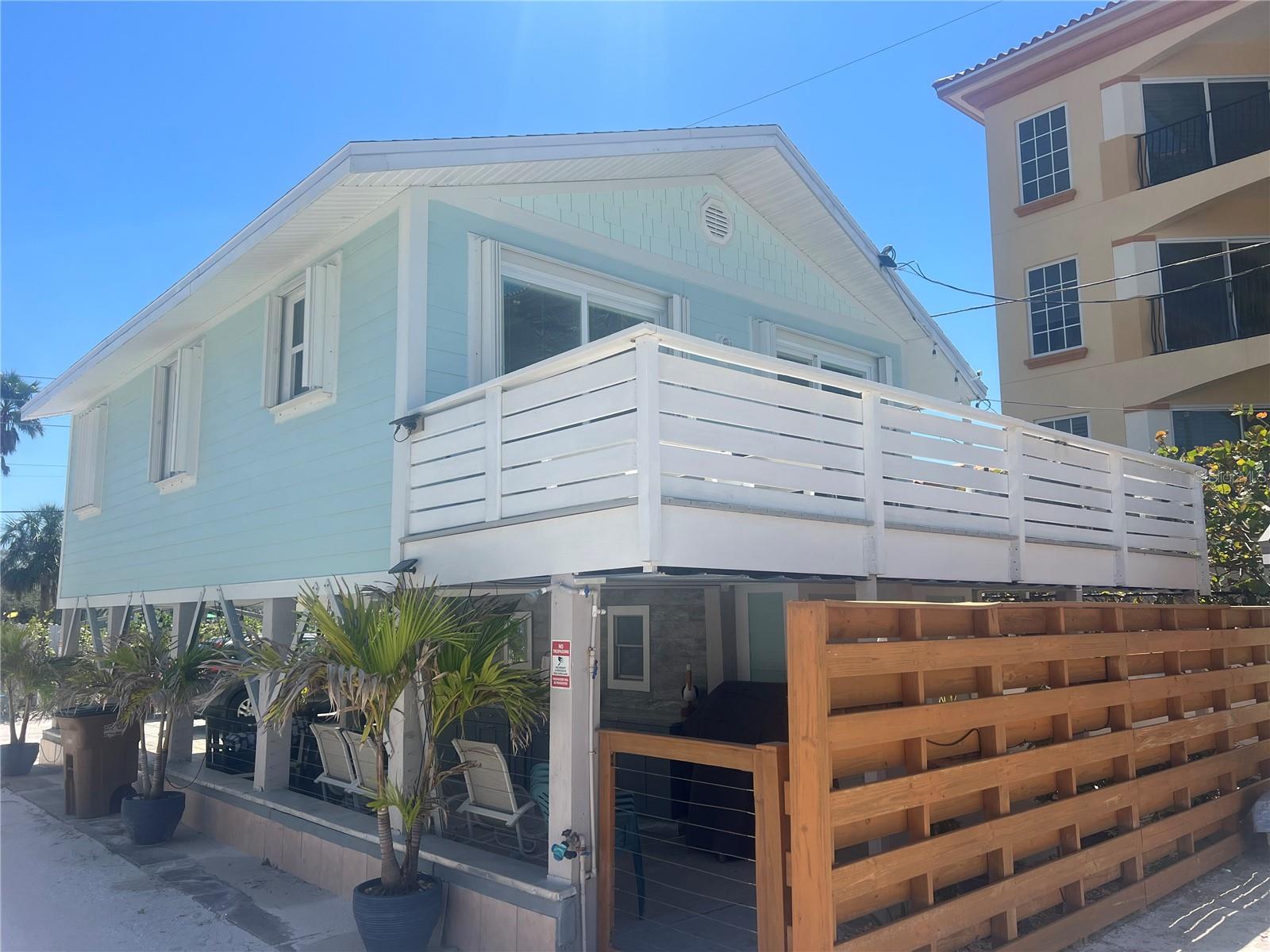 Beach front Home, 2bed/2bath/ with beach view and w/direct access to beach. Updated, granite counters, new microwave, range, washer and dryer, new bathrooms. Balcony, Elevated on stilts, no HOA fees, No deed restrictions, nature preserve across the street including dog park and boardwalk and playground.