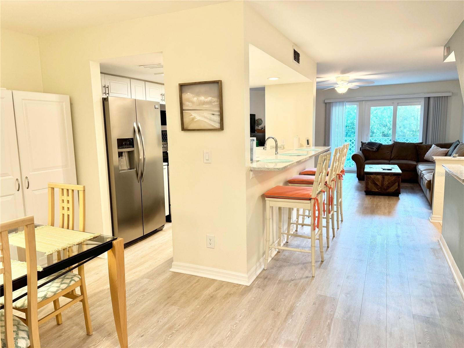 Nestled within the desirable Curlew Landings South community, this thoughtfully renovated townhome has been beautifully maintained and is move-in ready. The tiled covered entry with double French doors opens to a bright and inviting coastal retreat. The first floor features a welcoming foyer and versatile bonus room leading to a private tropical backyard, a rare feature for a beach townhome. Enjoy outdoor living on the covered patio with a grill area, perfect for relaxing or entertaining. The garage provides excellent storage and a hurricane-rated impact door. Inside, wide-plank luxury vinyl flooring adds durability and coastal style. The main living level showcases an open-concept layout with abundant natural light. The remodeled kitchen includes two-tone quartz countertops, soft-close cabinetry, new Frigidaire stainless steel appliances, and a glass tile backsplash. The living and dining areas feature skylights and sliding glass doors opening to a deck overlooking a peaceful nature preserve for privacy and serene views. The second floor hosts a primary suite with en-suite bath, while the top level offers a second primary suite with balcony, a third bedroom, a second bath, and a laundry closet for convenience. Additional upgrades include hurricane-impact windows and doors throughout. Just a short stroll from the beach, this townhome is perfect as a primary residence, vacation home, or seasonal getaway. Community amenities include a resort-style pool and sundeck, tennis/pickleball courts, and a kayak launch. The property experienced minor water intrusion only in the garage during Hurricane Helene (2024), which was professionally remediated immediately. The association is rebuilding and replacing all balconies, and the $20,000 special assessment has been paid in full, providing peace of mind for the next owner. Experience the best of Indian Rocks Beach coastal living, stylish, low-maintenance, and steps from the sand. Schedule your private showing today!