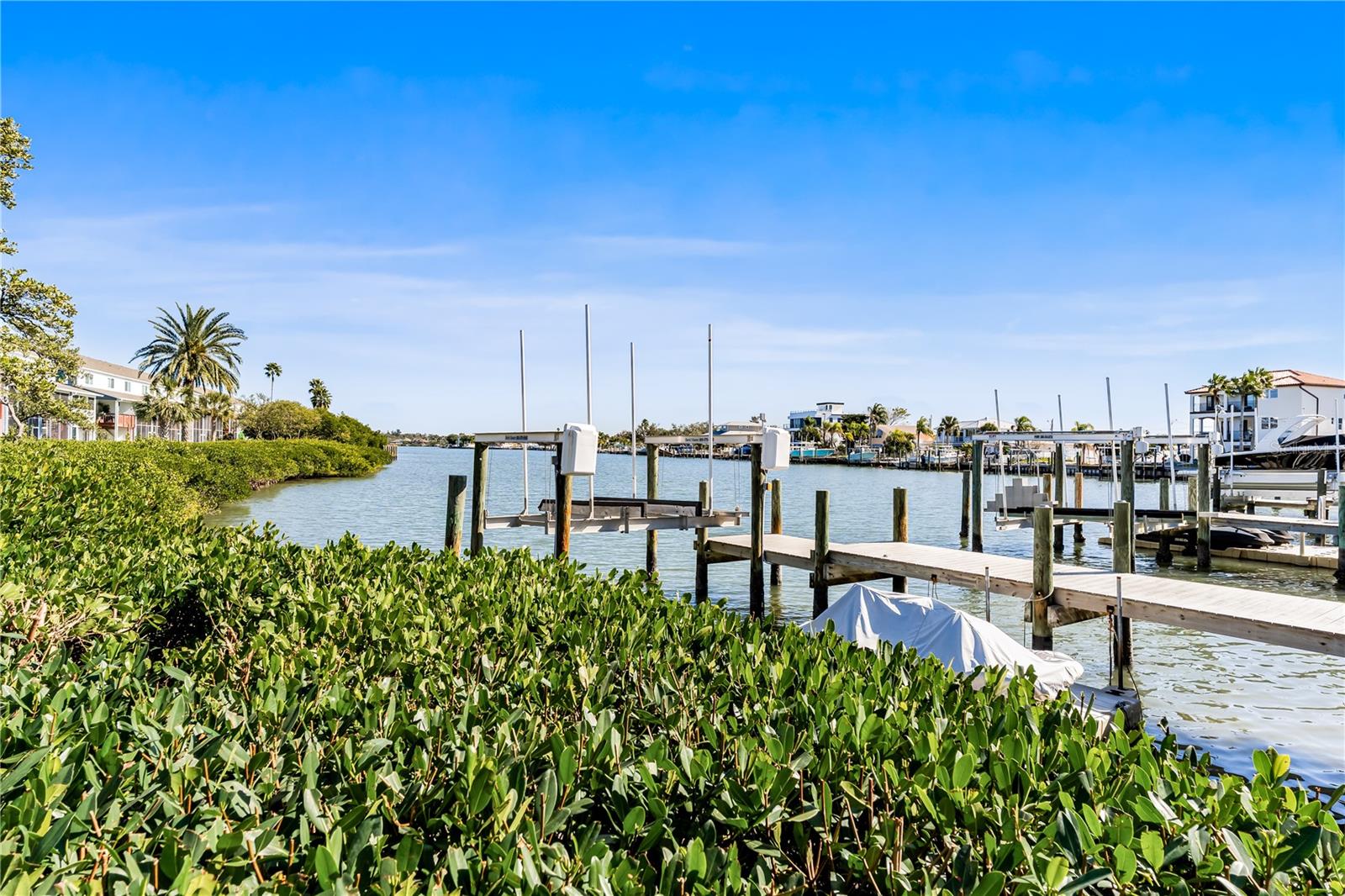 Breathtaking waterfront 3-bedroom end unit condo/townhome. Amazing intercostal water views on one side and just 252 steps to the pristine white sands of Indian Rocks Beach on the other. It doesn't get any better than this! Light and bright corner unit with all new kitchen cabinetry, appliances and gorgeous counter tops, (2025), new HVAC (2025), new downstairs bathroom (2025), new downstairs exterior French doors and interior doors (2025), and 2019 Hurricane impact windows everywhere. Stunning views from the first-floor kitchen which opens to more waterfront views from the living room and dining room area. A first-floor office/bedroom (garage conversion), bathroom, new full size washer and dryer (2025) and small garage with great storage complete the first level. The water views get even better as you access the 2nd floor from the new stairs (2025) to the master bedroom. There’s an upgraded master bath and frameless shower (2022) and the third bedroom, also light and bright, finishes out the 2nd floor. Relax in the beautiful fenced private patio area outside with block pavers and mature landscaping that provide a secluded retreat, overlooking the water. The community is small and private with only 13 units, making this extra special. With many of our neighbors living here full time, the neighborhood is quiet yet close to everything. Run, ride, walk, explore for miles along the sandy beach. Kayak right from home! Easy walking distance to the local cafes, seafood restaurants, and shops. Only 30 minutes away from Tampa International Airport (20 minutes from St. Petersburg- Clearwater International Airport).