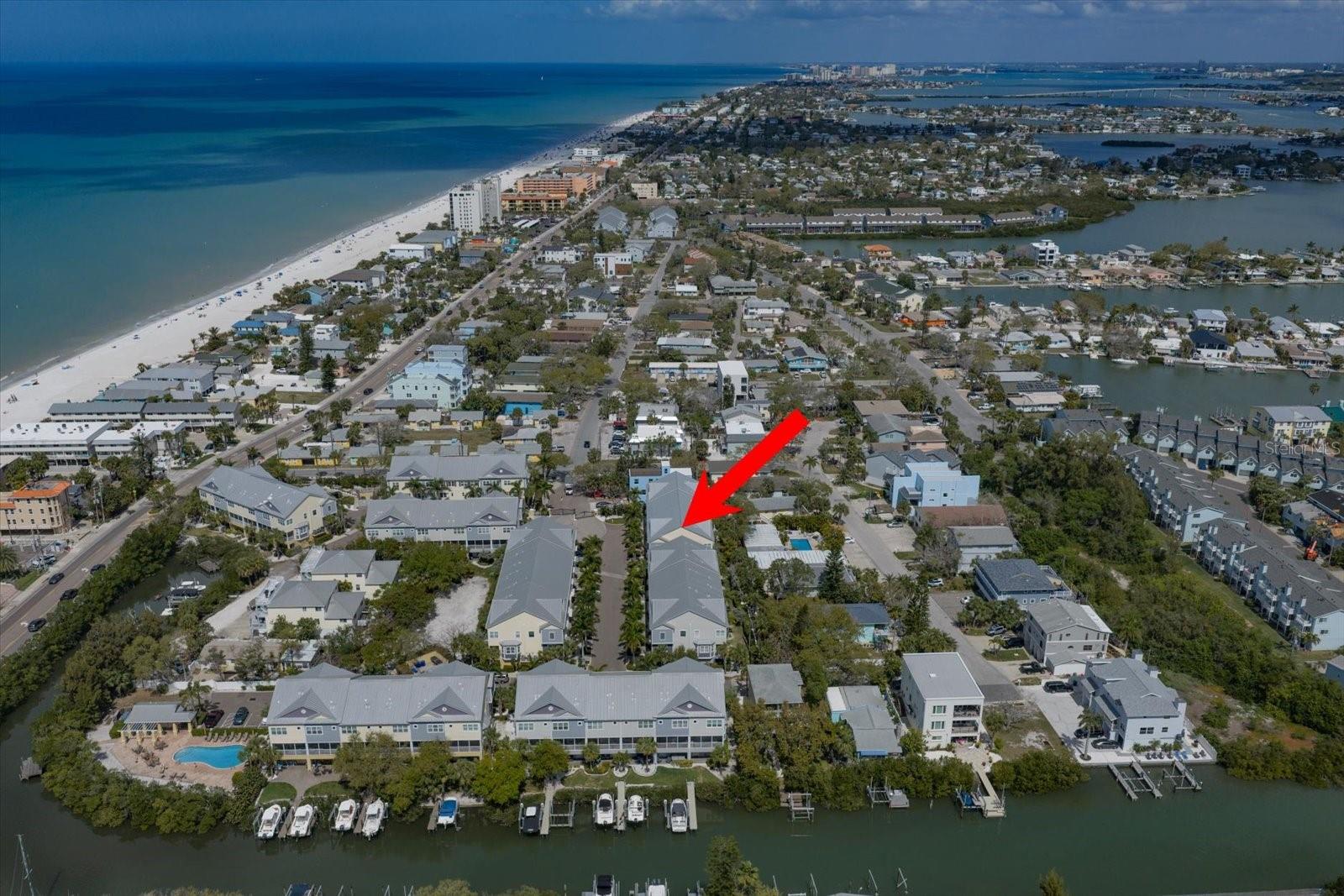 Gated End Unit – Walk to Indian Rocks Beach! Beautiful three-level townhouse located in The Cove at Indian Rocks Beach featuring 4 bedrooms, 3 baths, and spacious open living areas. This end unit offers upscale finishes including granite countertops, wood floors, 10-foot ceilings, and crown molding throughout. The open-concept layout leads to a screened east-facing porch—perfect for enjoying peaceful sunrises. The expansive primary suite features a sitting area, en-suite bathroom, and walk-in closet. Built for durability with hurricane-impact windows, Hardie board exterior, and elevated construction for added peace of mind. The beach is directly across the street, making it easy to enjoy daily walks along the beautiful white sands. Community amenities include gated entry, a heated pool, outdoor kitchen, and dock access for small watercraft. 30-day minimum rentals allowed, offering excellent flexibility for owners and investors. Enjoy exceptional walkability to local favorites including Splash Harbor Water Park, Crabby Bill’s, shops, and dining.