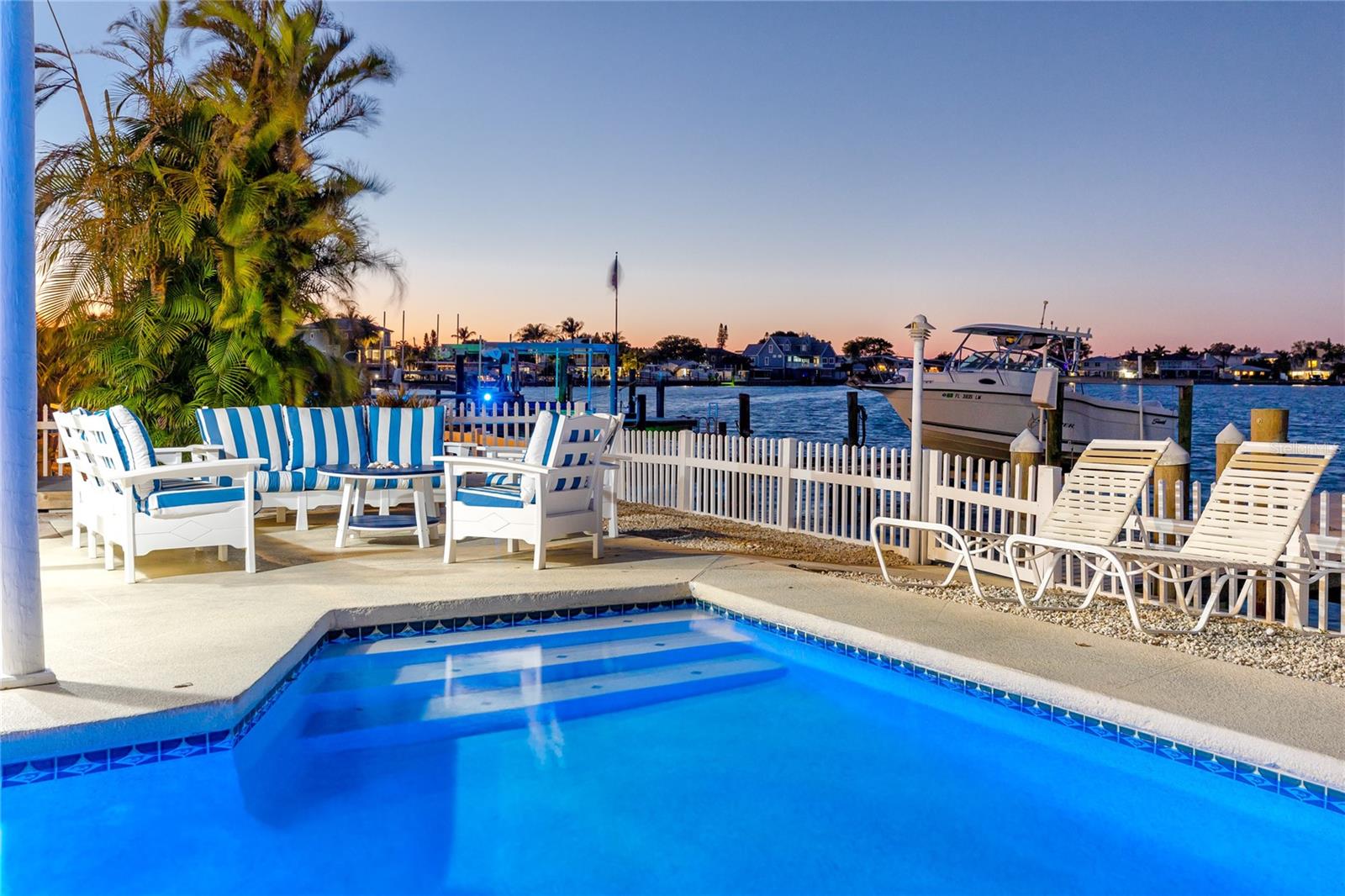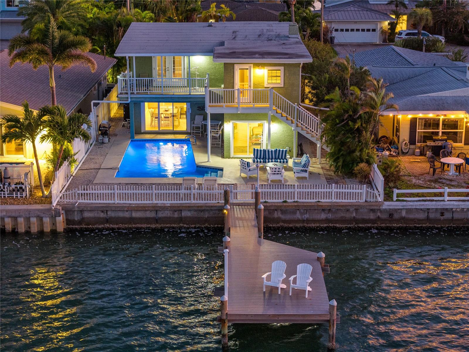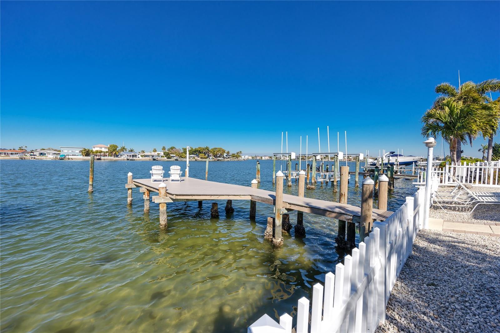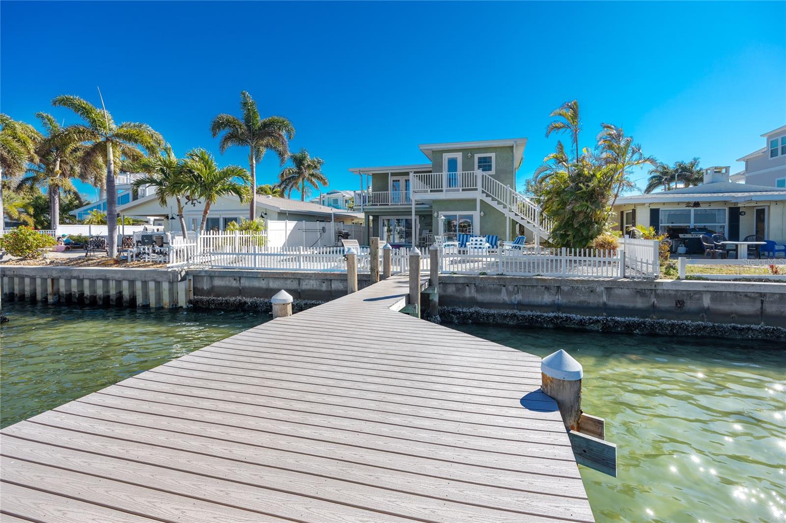 WELCOME TO YOUR WATERFRONT PARADISE! THIS REMODELED, INTRACOASTAL 4 BEDROOM, 3 BATH, 2 CAR GARAGE HOME OFFERS INCREDIBLE VALUE AS A SHORT TERM RENTAL OR A PRMARY RESIDENCE. Or you can do both - ENJOY IT throughout the year and when you're not using it, allow it to work for you! The spacious paver driveway, surrounded by new landscaping (2022) leads you to a covered entryway into this relaxing coastal getaway. From the moment you enter the home, you are greeted with WATER VIEWS from a plenitude of windows, allowing the light to spill in and brighten this alluring space. The graceful foyer entry leads you to the spacious living room, where you can unwind in front of the brick wood-burning fireplace, with the intracoastal waterways and newly refurbished (2023) and heated salt water pool with new pool heater and pump (2024) right out side your sliding doors. A spacious remodeled kitchen with granite counters, solid cabinets and new appliances (2022-2023) will invite you to making gustatory delights with joy! A remodeled bathroom with shower and a spacious bedroom which has sliders that open to the outside dock area are on the first floor. With wood stairs leading to the second level, you are greeted by 6" wide hardwood floors throughout the additional 3 bedrooms, including the primary bedroom with ensuite bathroom, dual sinks and garden tub & shower. A third bathroom on the second floor makes this home so comfortable for large groups of people. Two new AC units (2023) ensure that our lovely sunny days here in Florida keep everyone comfortable all year round. The wrap around deck on the second level was replaced (2022) and offers views of the pool below, the intracoastal waters and the new Trex pier decking (2021) on the dock (which has electrical and water). The dock is ideal for viewing dolphin as they arc in and out of the water and offers the perfect platform on lazy afternoons as well as peaceful early mornings (think yoga at sunrise). Other upgrades include gutters (2023), sprinkler system (2022) and hot water heater (2023). This gem of a home comes FULLY FURNISHED, turn-key and ready to go! Indian Rocks Beach is a golf cart-friendly beach town, offering opportunities to enjoy the Salt Life whether you live here full time or part time. Gross Rental Income was $104K (2023) and $90K (2022) and $93K (2021) with the owners using the home throughout the year, proving that you truly can have your cake and eat it too! The white sandy beach on the shores of the azure blue Gulf of Mexico waters is just a .3 mile bike, stroll or golf cart ride away! The town of Indian Rocks Beach hosts a variety of shops and eateries, parks (dog friendly ones too), music festivals and tennis courts. This home offers you the ideal location to LIVE YOUR BEST LIFE! Did you see this: https://www.youtube.com/watch?v=s2Sy109gAaE