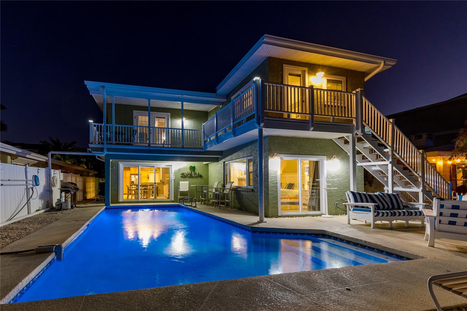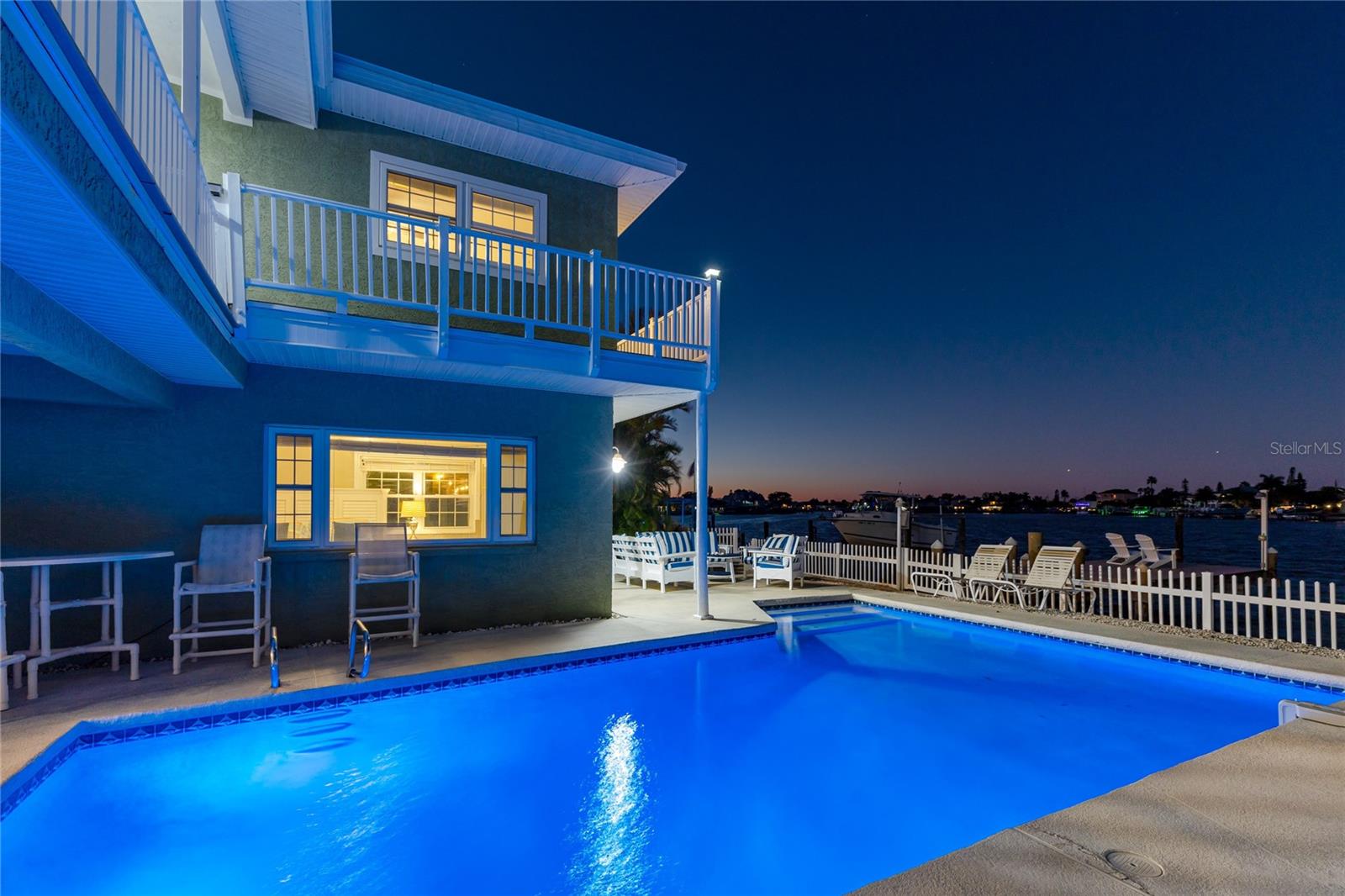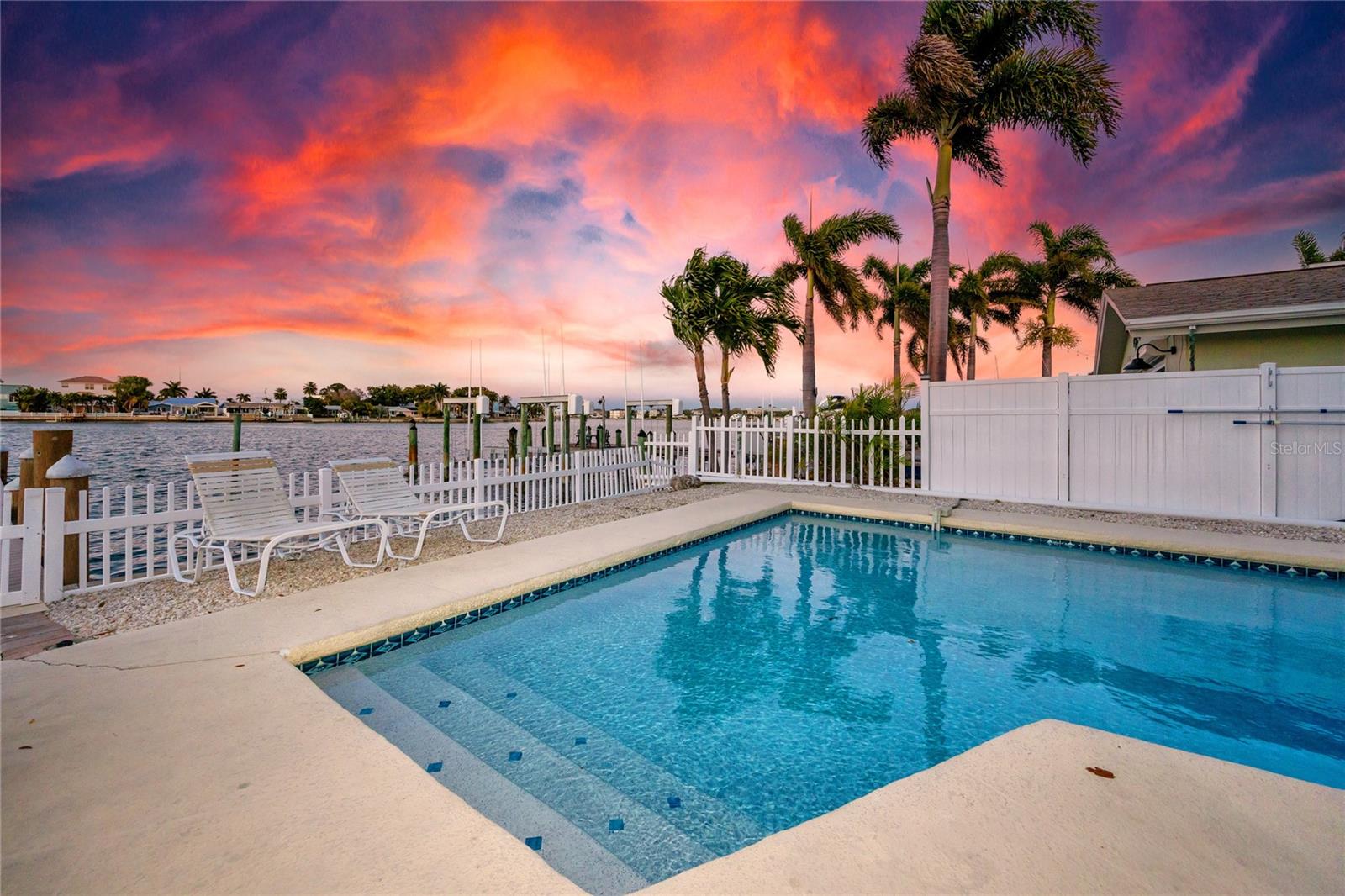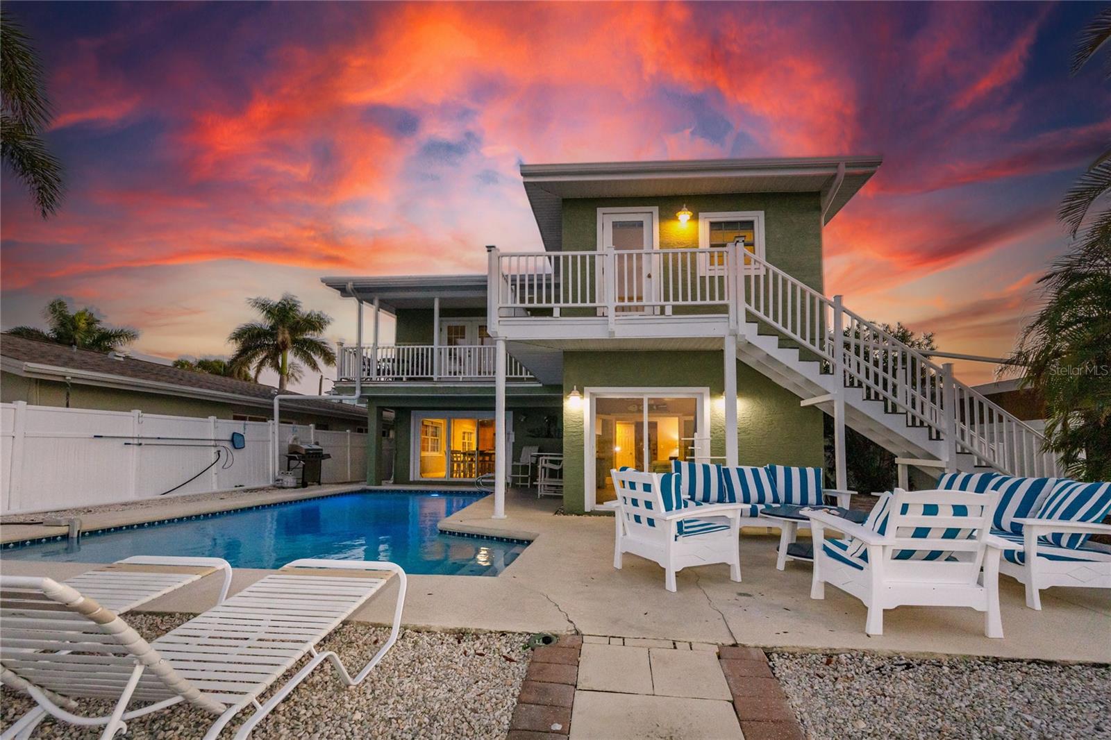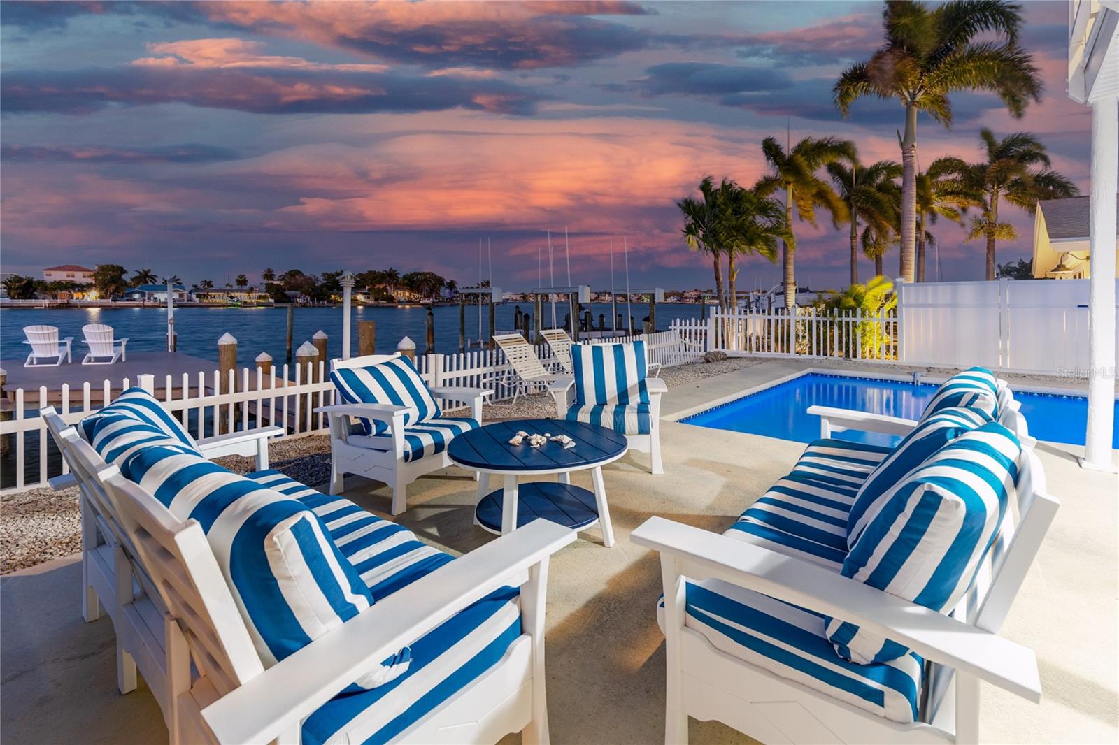 WELCOME TO YOUR WATERFRONT PARADISE! THIS REMODELED, INTRACOASTAL 4 BEDROOM, 3 BATH, 2 CAR GARAGE HOME OFFERS INCREDIBLE VALUE AS A SHORT TERM RENTAL OR A PRMARY RESIDENCE. Or you can do both - ENJOY IT throughout the year and when you're not using it, allow it to work for you! The spacious paver driveway, surrounded by new landscaping (2022) leads you to a covered entryway into this relaxing coastal getaway. From the moment you enter the home, you are greeted with WATER VIEWS from a plenitude of windows, allowing the light to spill in and brighten this alluring space. The graceful foyer entry leads you to the spacious living room, where you can unwind in front of the brick wood-burning fireplace, with the intracoastal waterways and newly refurbished (2023) and heated salt water pool with new pool heater and pump (2024) right out side your sliding doors. A spacious remodeled kitchen with granite counters, solid cabinets and new appliances (2022-2023) will invite you to making gustatory delights with joy! A remodeled bathroom with shower and a spacious bedroom which has sliders that open to the outside dock area are on the first floor. With wood stairs leading to the second level, you are greeted by 6" wide hardwood floors throughout the additional 3 bedrooms, including the primary bedroom with ensuite bathroom, dual sinks and garden tub & shower. A third bathroom on the second floor makes this home so comfortable for large groups of people. Two new AC units (2023) ensure that our lovely sunny days here in Florida keep everyone comfortable all year round. The wrap around deck on the second level was replaced (2022) and offers views of the pool below, the intracoastal waters and the new Trex pier decking (2021) on the dock (which has electrical and water). The dock is ideal for viewing dolphin as they arc in and out of the water and offers the perfect platform on lazy afternoons as well as peaceful early mornings (think yoga at sunrise). Other upgrades include gutters (2023), sprinkler system (2022) and hot water heater (2023). This gem of a home comes FULLY FURNISHED, turn-key and ready to go! Indian Rocks Beach is a golf cart-friendly beach town, offering opportunities to enjoy the Salt Life whether you live here full time or part time. Gross Rental Income was $104K (2023) and $90K (2022) and $93K (2021) with the owners using the home throughout the year, proving that you truly can have your cake and eat it too! The white sandy beach on the shores of the azure blue Gulf of Mexico waters is just a .3 mile bike, stroll or golf cart ride away! The town of Indian Rocks Beach hosts a variety of shops and eateries, parks (dog friendly ones too), music festivals and tennis courts. This home offers you the ideal location to LIVE YOUR BEST LIFE! Did you see this: https://www.youtube.com/watch?v=s2Sy109gAaE
