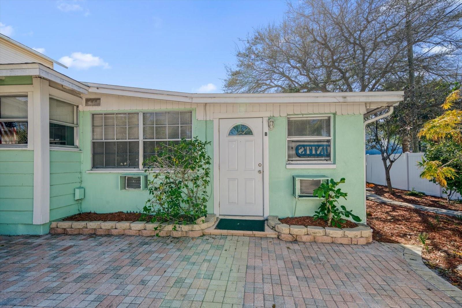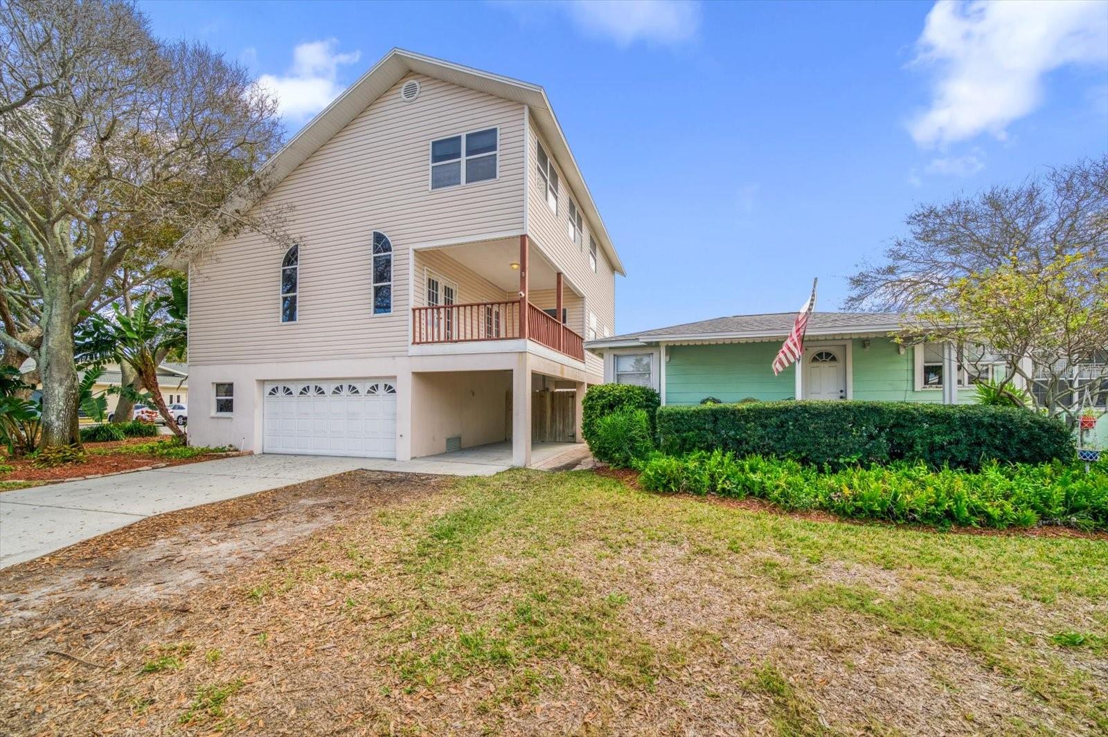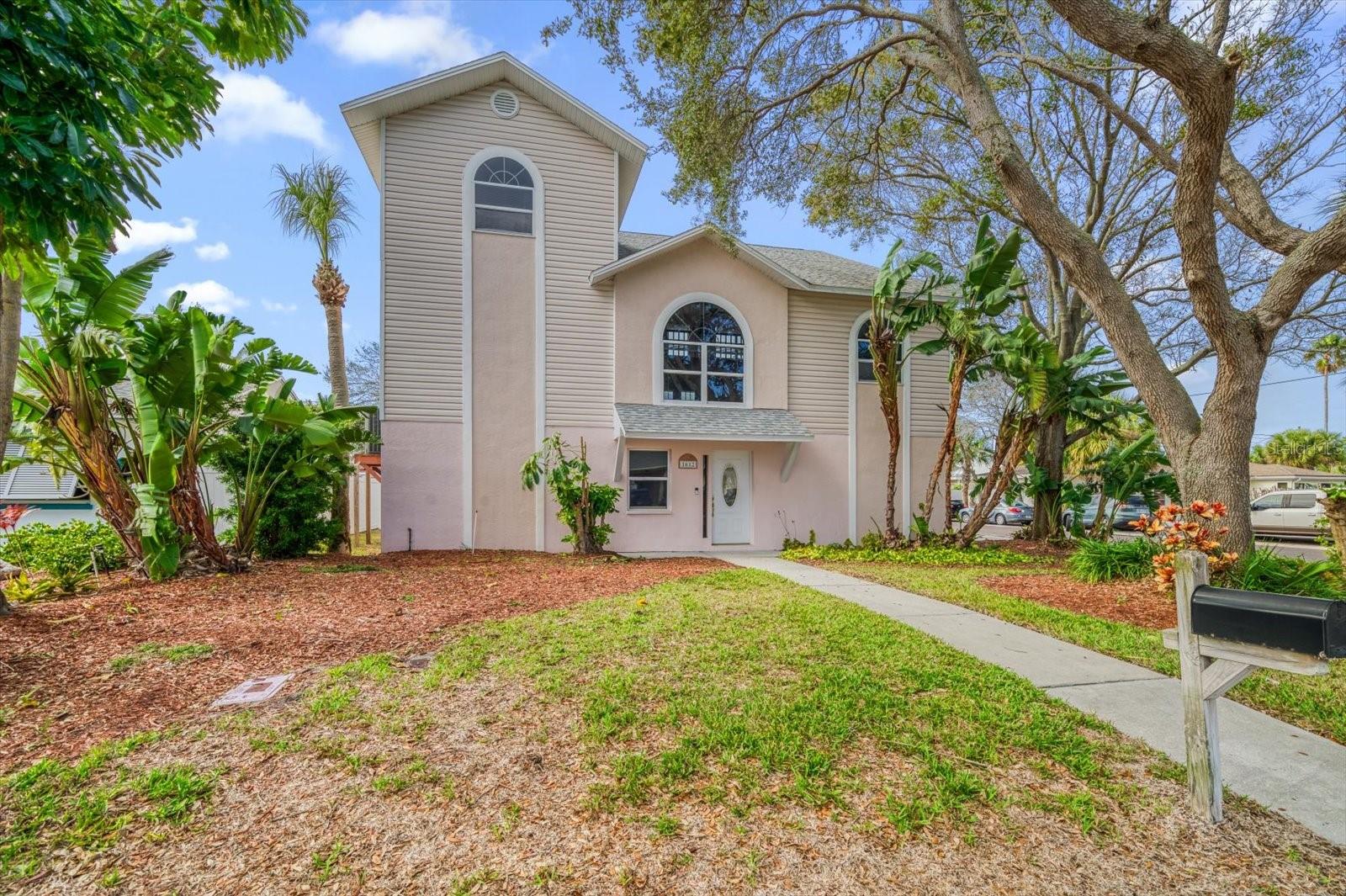 One or more photo(s) has been virtually staged. Discover the allure of beautiful Indian Rocks Beach with this captivating home, offering an exceptional income property opportunity with an included duplex. The main residence features an open and bright interior with an abundance of windows, vaulted ceilings, and kitchen open to the great room. French doors lead to an inviting outdoor patio. Upstairs, the spacious primary bedroom boasts a loft, ample closet space, and an ensuite bath with a double sink vanity and large walk-in shower. Additional bedrooms are bathed in natural light, sharing a hall bath with a tub-shower combo. The property includes a charming income-producing duplex with two apartments and a private patio. Mature landscaping graces the surroundings and adds to the curb appeal. Located only 2 blocks from the beach access, local restaurants, shops, parks, and a short distance to Belleair Causeway and the mainland. Live like you’re on vacation and enjoy postcard perfect sunsets and walks along the powder white sand beach. This is an incredible opportunity to own a slice of paradise with so many options for rental income; lease all 3 units for maximum rental income, or keep the main house for your enjoyment and lease the 2 units in the duplex. Main house AC-2022, Roof-2015.