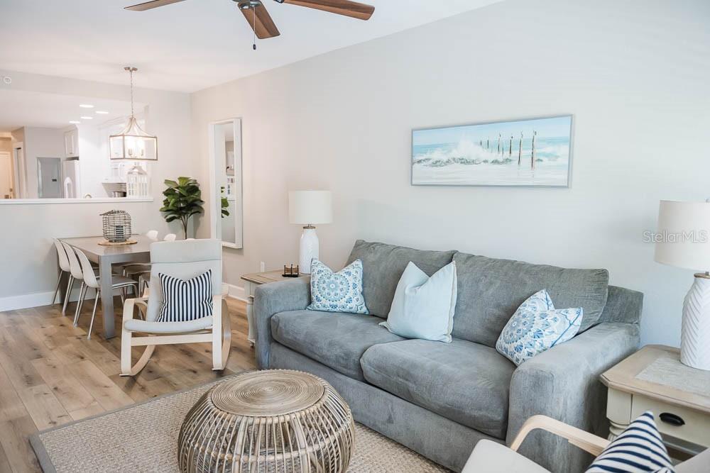 Immerse yourself in this fully furnished waterfront condo, just two blocks away from Indian Rocks Beach. Enjoy captivating views of the Intracoastal Waterway from your living space, owner's suite, and private balcony. This desirable 2-bedroom, 2-bathroom unit features a split floor plan, with the option to rent out the second bedroom separately. Everything you need is included - furniture, wall art, TVs, bedding, towels, dishes, beach gear, and much more. Whether you're seeking a winter retreat, an investment property, or both, this turnkey condo is ready for you. This unique resort-style property allows for short-term rentals, with access to the Splash Harbour Waterpark. Your HOA includes two daily waterpark passes and two half priced passes, with the option to purchase additional passes at a discounted rate. Each additional pass includes a half priced pass. Indulge in the waterpark's amenities, including a lazy river, slides, lifestyle pool, splash pad, pirate ship, bars, and restaurants. Relax in the pool or unwind in the cabanas as you sip a drink from the Tiki Bar. Bask in the sunsets from the rooftop sundecks overlooking the Gulf of Mexico. Indian Rocks Beach offers a walkable, and golf cart friendly, community with numerous dining options, ice cream parlors, coffee shops, bakeries, and shopping outlets. Additionally, enjoy easy access to boat, kayak, personal watercraft, and bicycle rentals on site. Situated close to Tampa, Clearwater Beach, and St. Petersburg, this location provides unlimited options for entertainment, culinary delights, sports activities, and cultural venues for year-round enjoyment.