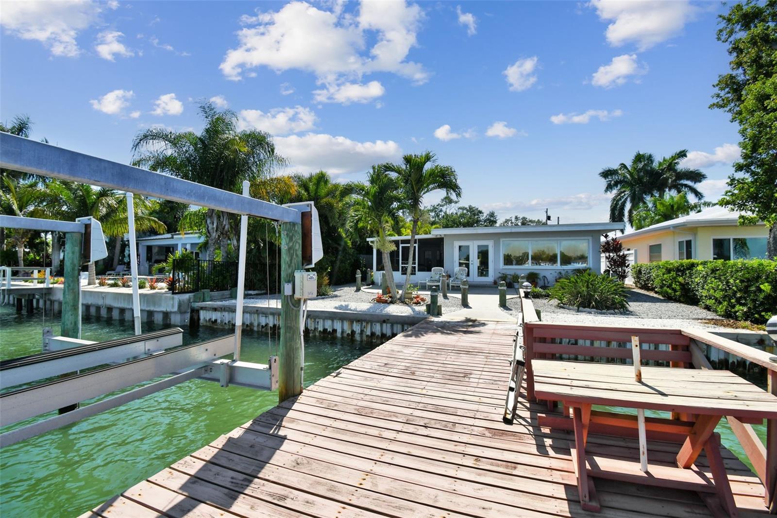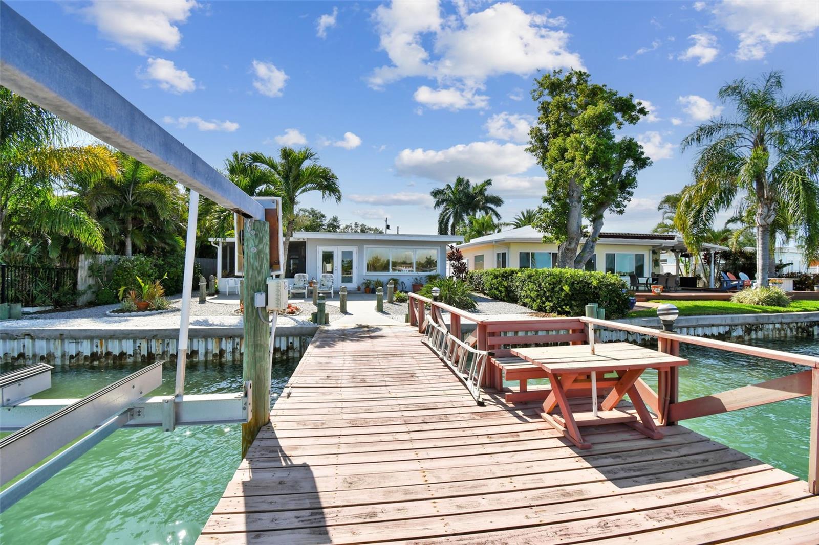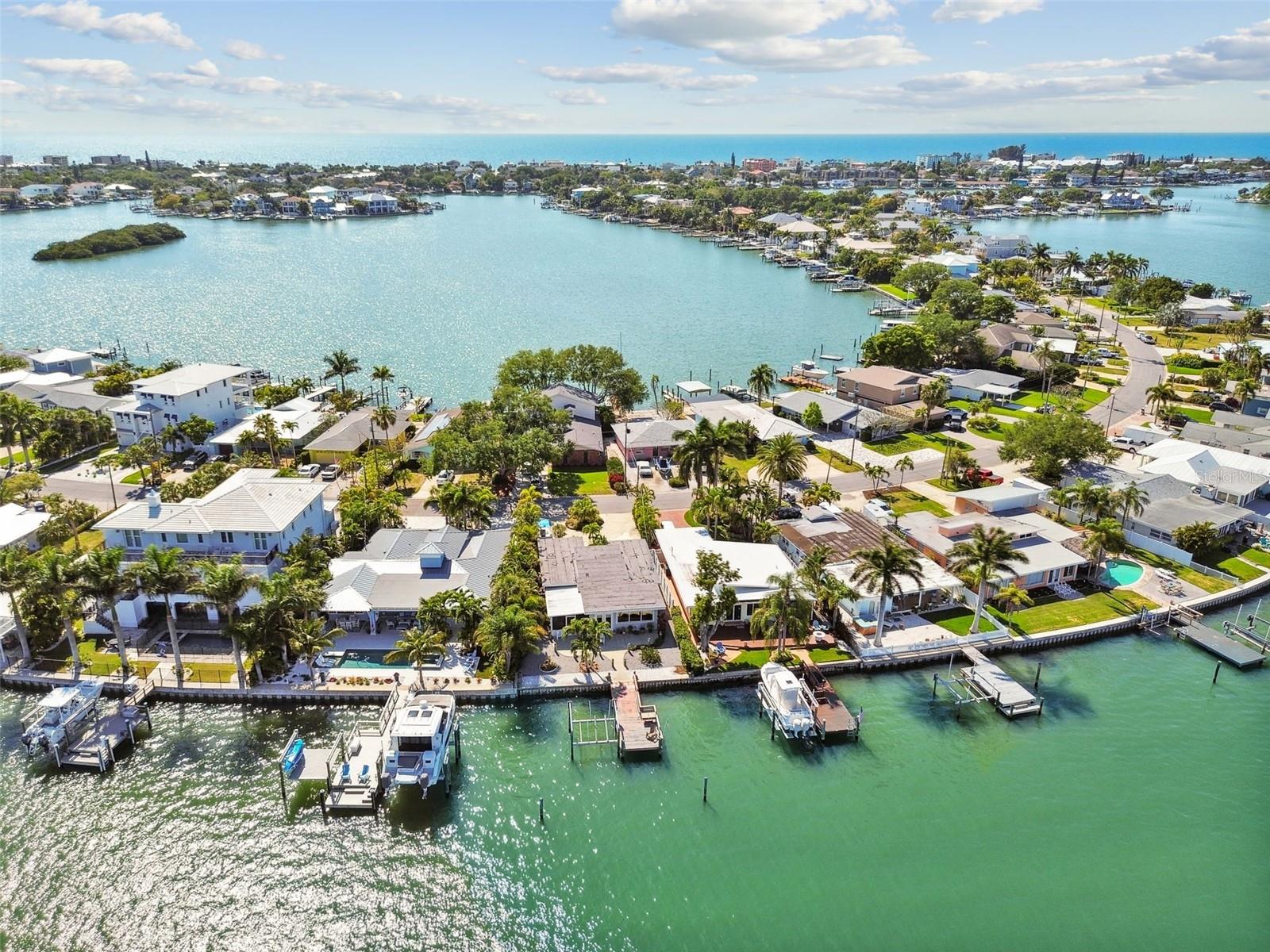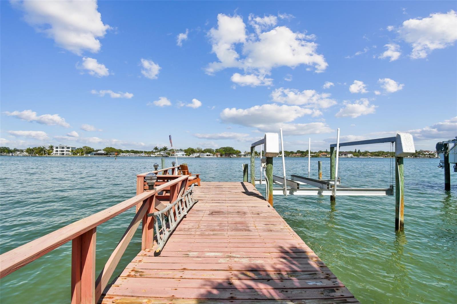 Amazing open and direct Intracoastal waterfront view from the front door to the back. This home offers an open plan with views of the water from the kitchen, living, and dining areas, plus the Master Bedoom. With a covered screen porch and single-car garage, it is easy to add two or more sleeping rooms to this 2-bedroom house. The backyard has ample room for a pool and currently offers a large patio, from where to see dolphins, passing boats, and open water. With a steel seawall, a large dock, and an updated 10k boat lift with a remote, this home offers the Florida lifestyle everyone desires. Recent updates include, Water Softener-2022, AC 2022, and Roof 2023. The separate laundry room off the garage can easily be another bathroom. Whether your goal is to find the ideal lot for future construction, have a great vacation or short-term rental property, or enjoy the Florida lifestyle, this home is ideal. Walking distance to the beach, Indian Rocks Beach offers great beach parks, dog parks, and a friendly community that offers activities for everyone to enjoy. Great entertainment, dining, shopping, and more are just minutes away by foot, golf cart, or r. Indian Rocks Beach is in the heart of Tampa Bays best beaches and offers easy access to many of Pinellas County's finest museum and arts districts, plus the Bay area's many professional sports venues and world renown theme parks. Tampa International Airport and PIE are also easily traveled to and fro. If beach living is on your list, come check out this great Florida home.