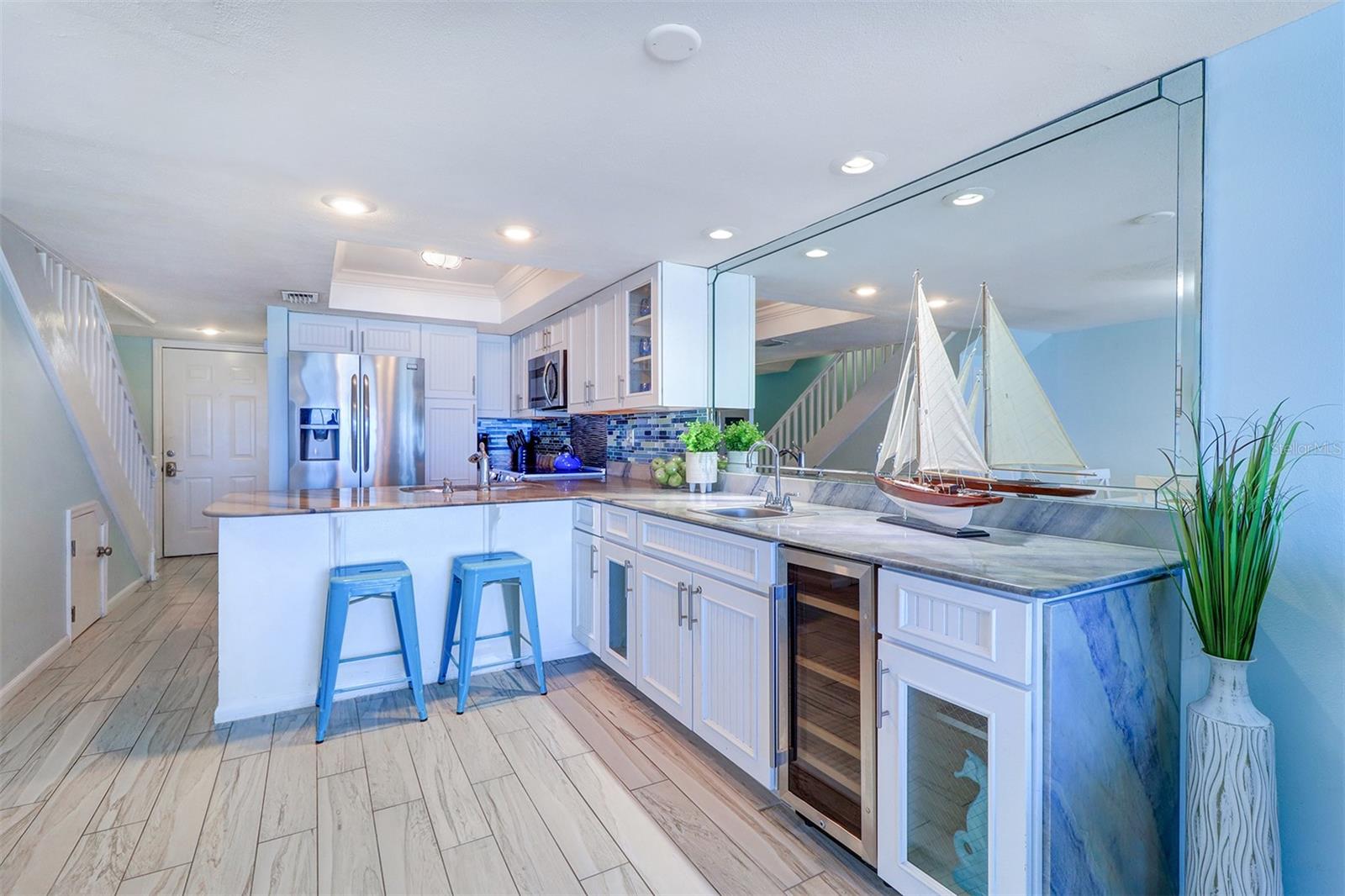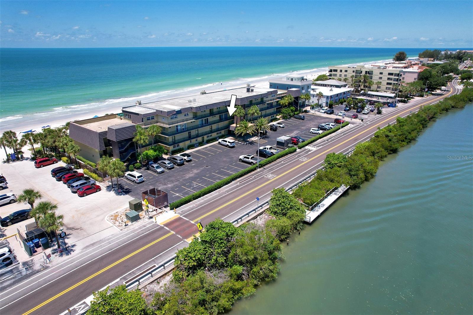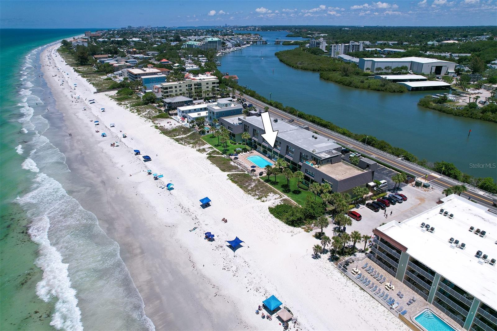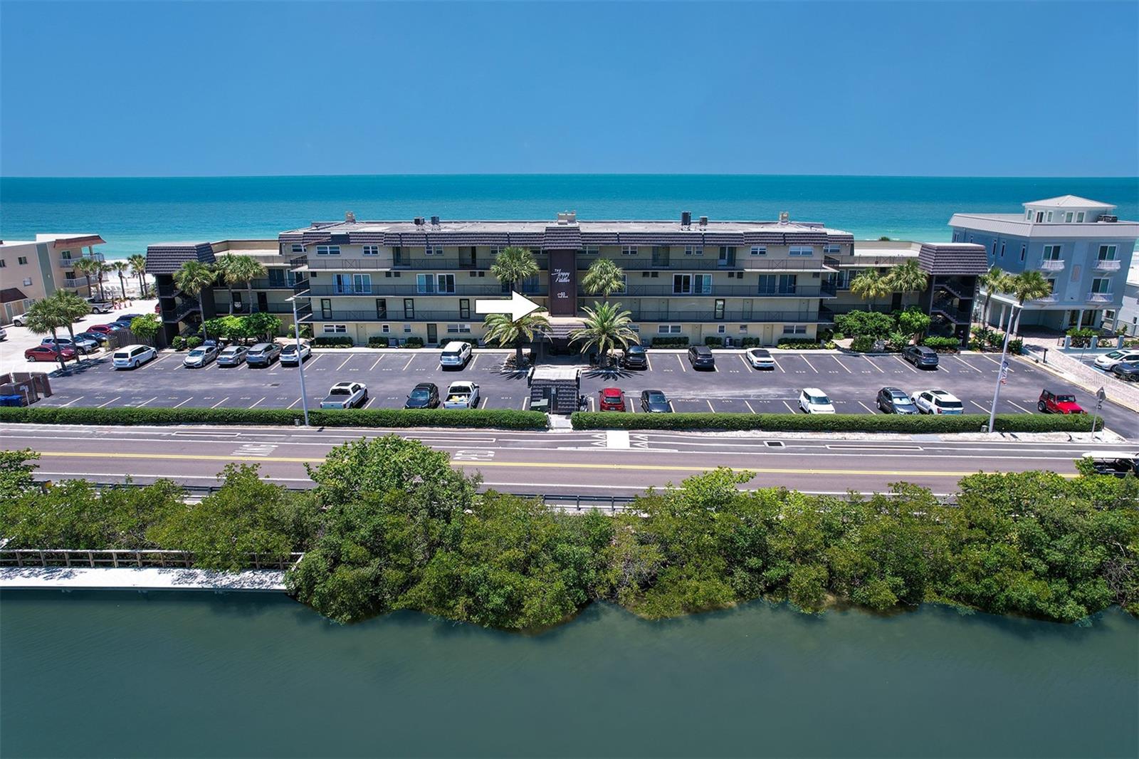 Experience the pinnacle of coastal living in this remarkable beachfront townhouse that is a Perfect Vacation Home AND an Enormous Income Generator! With unobstructed views of both the Gulf of Mexico & the Intracoastal Waterway, don't miss this Gulf Front 2 Bed 2 Bath, Bi Level Townhouse style Condo on the highly sought after Narrows of Indian Rocks Beach! With only 34 units, Happy Fiddler (happyfiddler.com) has a small, boutique feel and is very well managed. The property features regularly manicured gardens/green spaces rarely seen on Gulf properties. Adding to the boutique feel is its prime location between the beach & intracoastal, resulting in minimal beach traffic from other non-Gulfside properties that creates a quiet private feel even during peak season! Boasting two floors of accommodations with awe-inspiring views from every sun-drenched room and meticulous attention to detail throughout. The townhouse layout creates an exceptional separation of space when privacy and quiet are needed. On the entry-level is an open concept living room, dining room, full bath and (fully) equipped island kitchen with marble counters, stainless steel appliances and a wet bar & wine fridge. Driftwood plank-style tile perfectly complements the updated coastal decor throughout. Enjoy the sunset from your spacious balcony with endless, unobstructed water views. Upstairs are two spacious bedrooms & a Jack-n-Jill bath w/jetted Jacuzzi! The primary Bedroom overlooks the Beach while the 2nd bedroom (2 queen beds) enjoys views of the Intracoastal. This is a lucrative, top dollar rental property thanks to its Weekly Rental Policy, large book of repeat renters, and future bookings at closing for Day 1 income. Adding to the income potential of this property is the rare amenity of a full-time, on-site rental management service included in monthly fees, eliminating the 20% fee typically paid to rental managers! Additional amenities include: assigned parking; a spacious sun deck with shaded dining tables & a large heated pool; a newly restored, private 70 ft. boat & fishing dock; two gas grills; outdoor showers; a laundry room; on-site property management; and most important, “toes in sand” direct beach access! Nestled between Clearwater and St. Pete Beaches, the unique, historic community of Indian Rocks Beach has plenty of old school charm and small-town atmosphere but none of the big box stores, fast food chains or typical Spring Break crowds. With easy proximity to restaurants, attractions, fishing/boating & biking/walking paths along Gulf Blvd, it’s easy to see why this island gem is one of the most desired travel destinations on the beach!