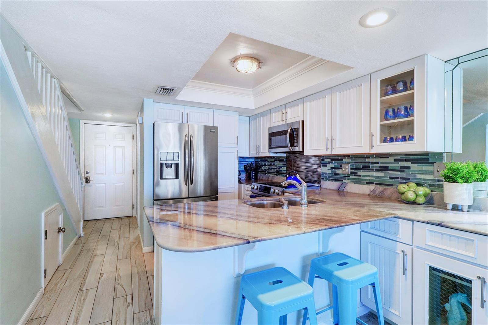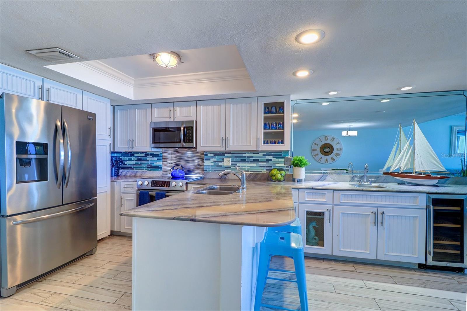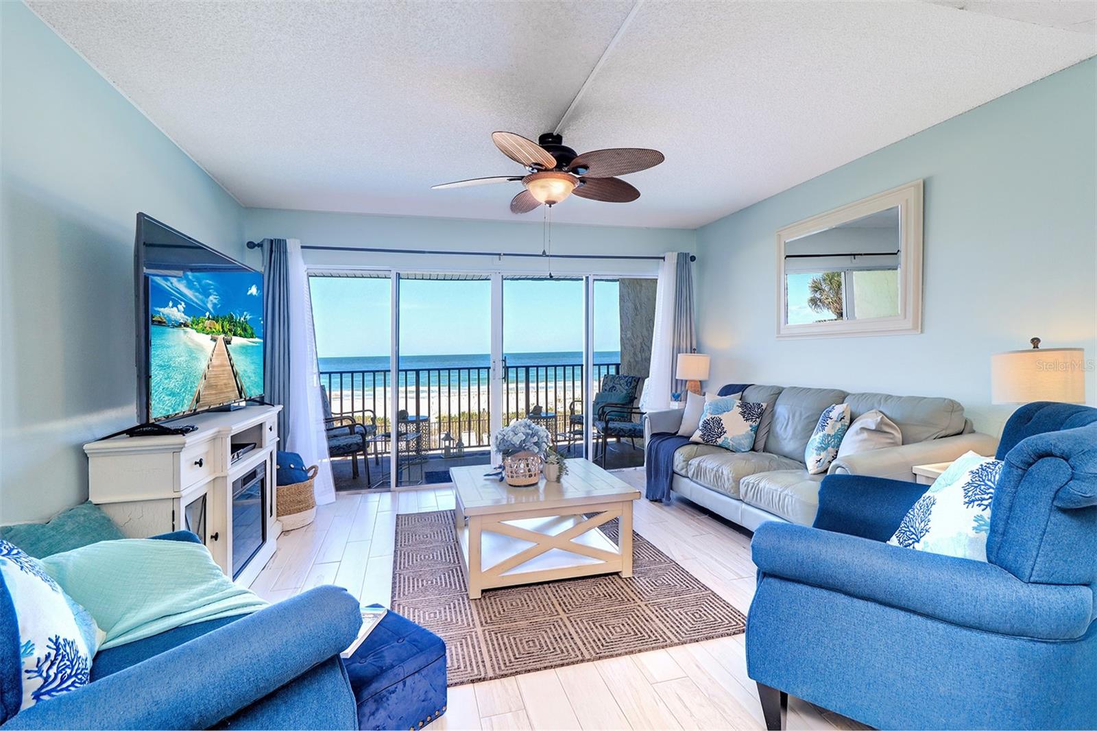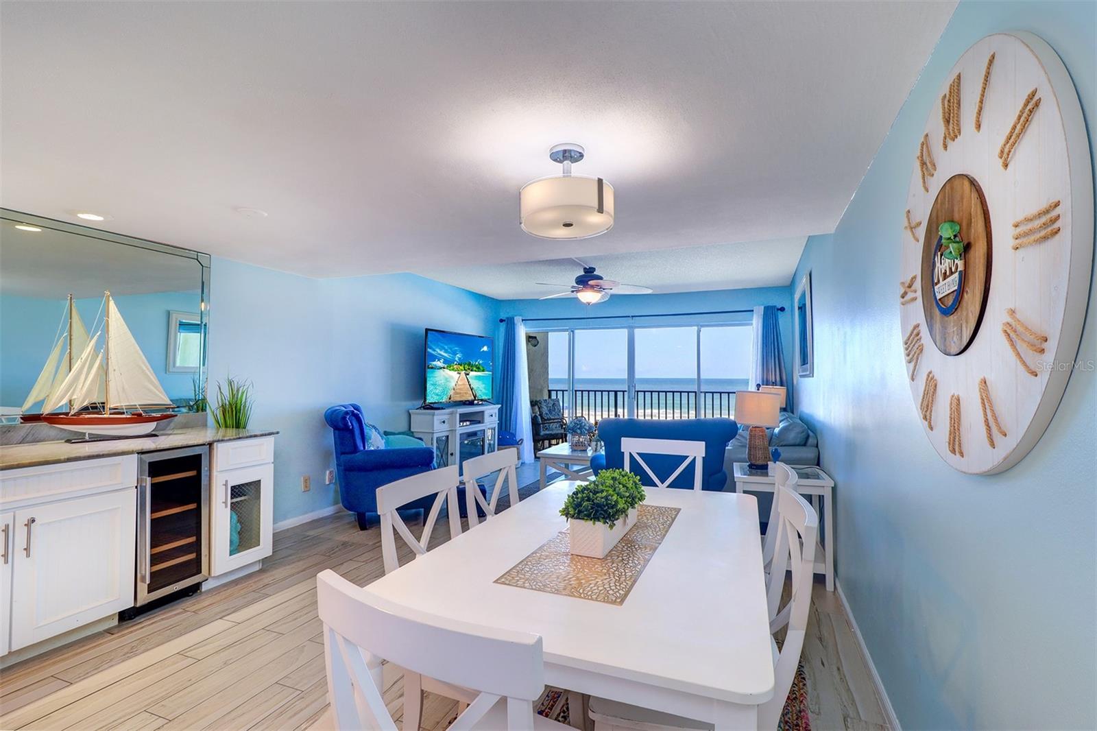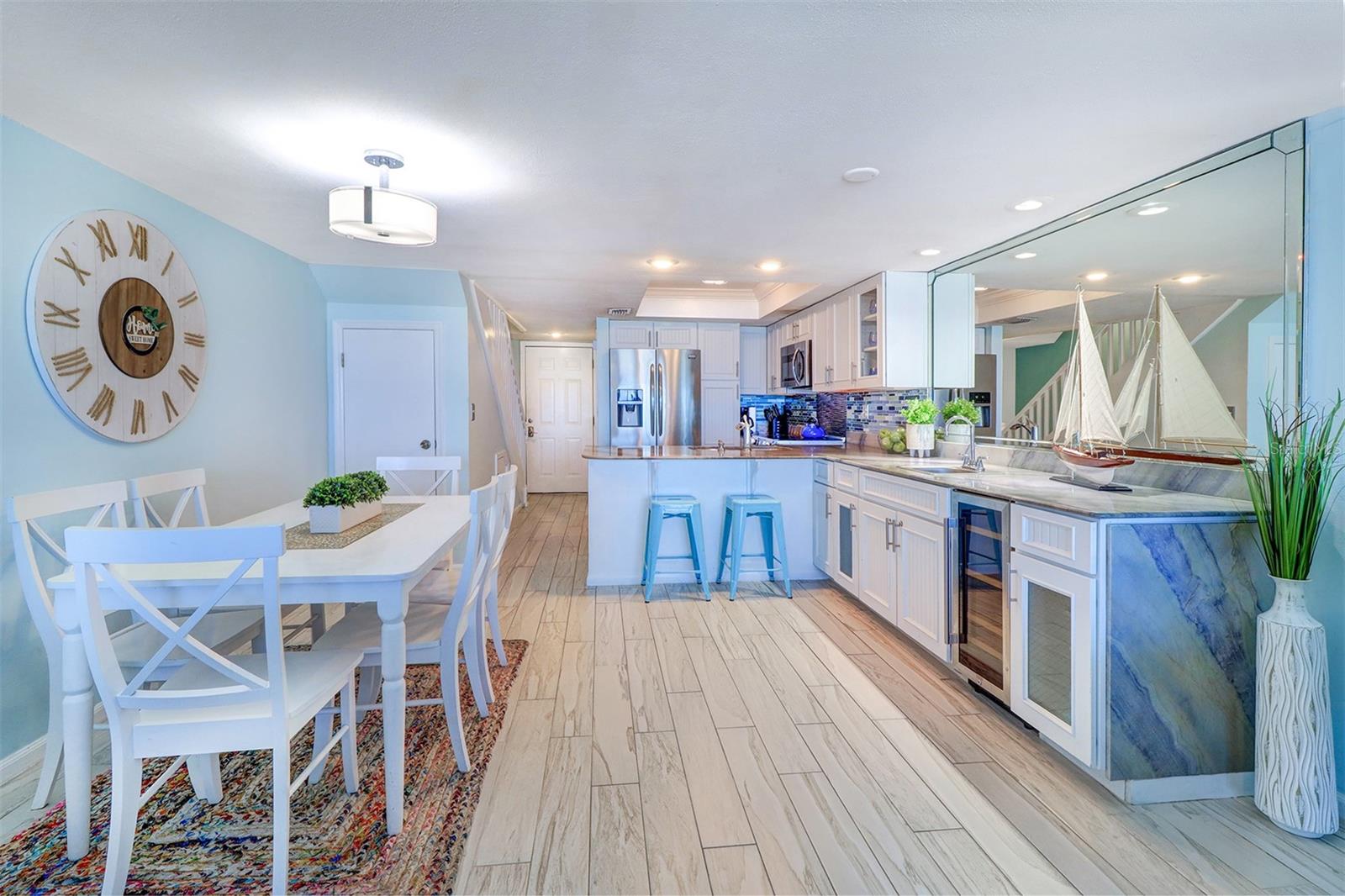 Experience the pinnacle of coastal living in this remarkable beachfront townhouse that is a Perfect Vacation Home AND an Enormous Income Generator! With unobstructed views of both the Gulf of Mexico & the Intracoastal Waterway, don't miss this Gulf Front 2 Bed 2 Bath, Bi Level Townhouse style Condo on the highly sought after Narrows of Indian Rocks Beach! With only 34 units, Happy Fiddler (happyfiddler.com) has a small, boutique feel and is very well managed. The property features regularly manicured gardens/green spaces rarely seen on Gulf properties. Adding to the boutique feel is its prime location between the beach & intracoastal, resulting in minimal beach traffic from other non-Gulfside properties that creates a quiet private feel even during peak season! Boasting two floors of accommodations with awe-inspiring views from every sun-drenched room and meticulous attention to detail throughout. The townhouse layout creates an exceptional separation of space when privacy and quiet are needed. On the entry-level is an open concept living room, dining room, full bath and (fully) equipped island kitchen with marble counters, stainless steel appliances and a wet bar & wine fridge. Driftwood plank-style tile perfectly complements the updated coastal decor throughout. Enjoy the sunset from your spacious balcony with endless, unobstructed water views. Upstairs are two spacious bedrooms & a Jack-n-Jill bath w/jetted Jacuzzi! The primary Bedroom overlooks the Beach while the 2nd bedroom (2 queen beds) enjoys views of the Intracoastal. This is a lucrative, top dollar rental property thanks to its Weekly Rental Policy, large book of repeat renters, and future bookings at closing for Day 1 income. Adding to the income potential of this property is the rare amenity of a full-time, on-site rental management service included in monthly fees, eliminating the 20% fee typically paid to rental managers! Additional amenities include: assigned parking; a spacious sun deck with shaded dining tables & a large heated pool; a newly restored, private 70 ft. boat & fishing dock; two gas grills; outdoor showers; a laundry room; on-site property management; and most important, “toes in sand” direct beach access! Nestled between Clearwater and St. Pete Beaches, the unique, historic community of Indian Rocks Beach has plenty of old school charm and small-town atmosphere but none of the big box stores, fast food chains or typical Spring Break crowds. With easy proximity to restaurants, attractions, fishing/boating & biking/walking paths along Gulf Blvd, it’s easy to see why this island gem is one of the most desired travel destinations on the beach!