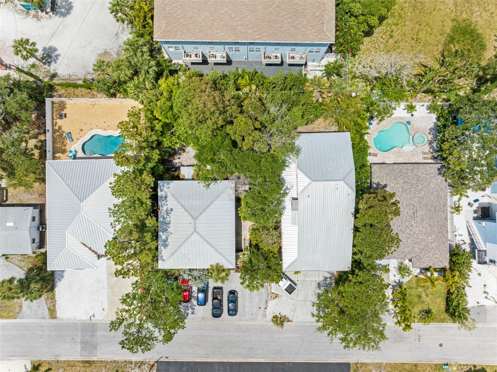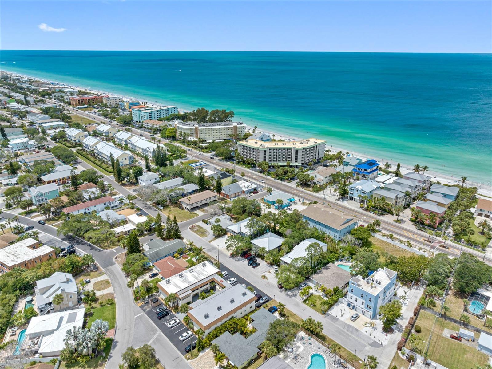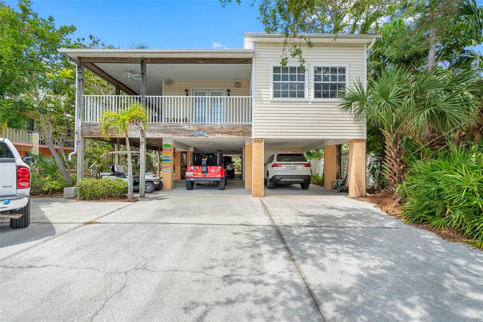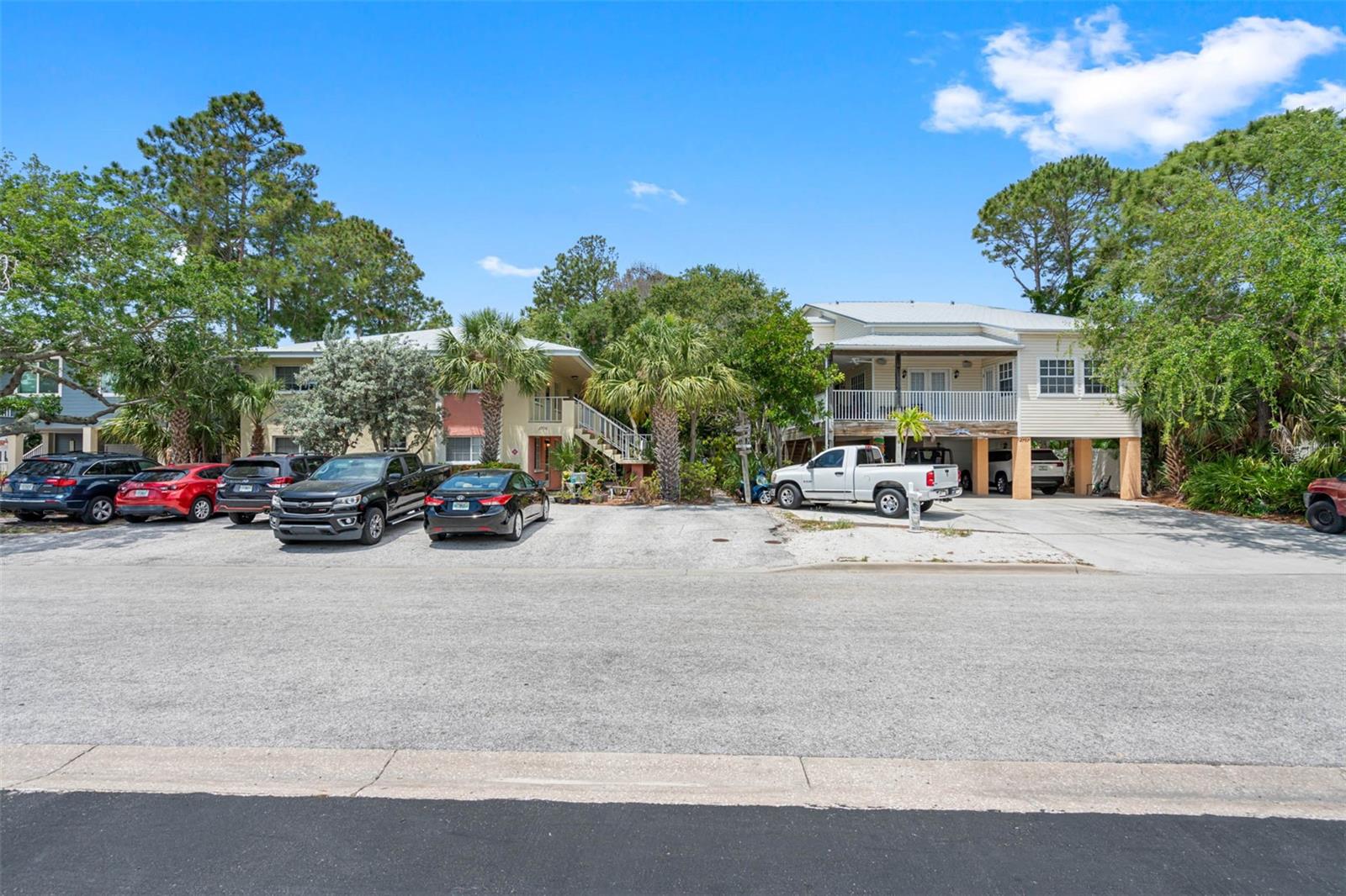 TROPICAL KEY WEST STYLE HOME WITH SPACIOUS MOTHER IN LAW APT- INDIAN ROCKS BEACH! ONLY 2 BLOCKS TO THE BEACH! UNIQUE OPPORTUNITY to live in a breathtaking home with an extra apt/mother-in-law home. Lovingly built and occupied by IRB's past Mayor, the main house (#1/east side) is almost 2000 sq ft with 3 bedrooms + enclosed office, 2.5 bathrooms, 3 car garage and 4 under bldg parking. Stunning great room with high vaulted ceiling, custom Mexican Saltillo style tile floors, built-in shelving and lots of large windows, French doors accessing private wrap around porch. Private office/den located right off Great room with light & bright atmosphere with more windows and French pocket doors opening to the Great room. Apt Home #2 (west side) is generous 2 bedrooms, 2 bathrooms about 900 sq ft. Featuring a great room plan plus a private porch overlooking the tropical garden. UPDATES: new metal roof 2017, some feature newer hot water heater, new AC, new fridge, dishwasher. GARAGE / STORAGE / WORKSHOP AREA is almost 2000 sq ft. About 800 sq ft of covered porches. BOTH homes have central heat & air, private covered porches, extra guest parking outside, inside laundry closets with full size washer dryer in each side. See attached list of upgrades & FAQs. WEST side of property has room for pool, hot tub, gazebo/tiki hut - check with City of IRB for permitting requirements. ***SELLER FINANCING OPTIONS***Highly desirable location, newer construction, elevated building, over 20 years steady rental income! Currently rented to long term, very nice tenants at below market rent due to being listed for sale. Live in one and rent out other! SHORT TERM RENTALS ALLOWED. ADJACENT south quadplex property for sale as well. Great chance to have a fantastic vacation resort! Or knock down and build new. Unlimited opportunities and income for the right beach loving owner! Located within walking distance to local restaurants, attractions including the IRB Nature Preserve, many parks with tennis/pickleball, basketball, baseball field, skateboard park, playground. EASY, convenient access to the beautiful Gulf beaches via 27th Ave beach access, perfectly situated for both leisure and ease of commuting. BRING YOUR BOAT - community boat ramp! The beach community offers waterfront activities, dining, and shopping, making it an ideal location. IRB is golf cart friendly. Many options with this unique property as primary residence with mother in law apt, 2nd home getaway with short term rentals (STR) - NO minimum rental in IRB. AIRDNA estimates $240K gross rental as a STR. Well maintained, new owners will enjoy a worry-free lifestyle! VERY unique building design and opportunity! ***DO NOT DISTURB TENANTS***