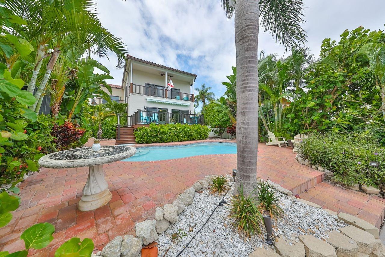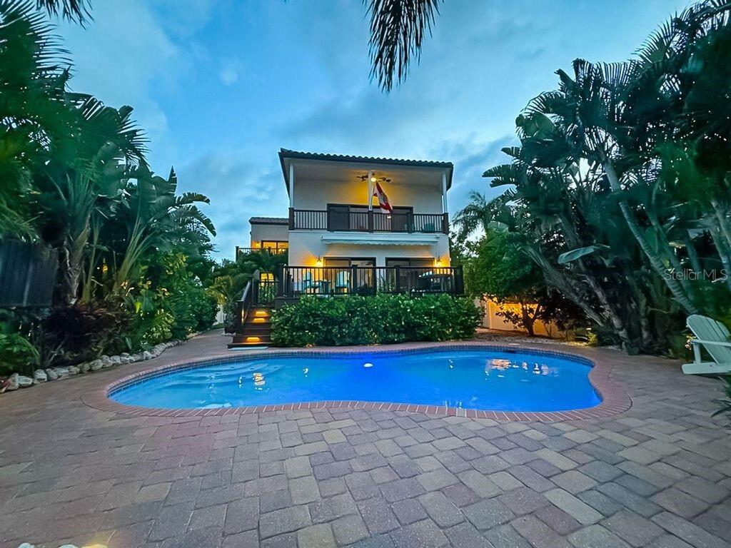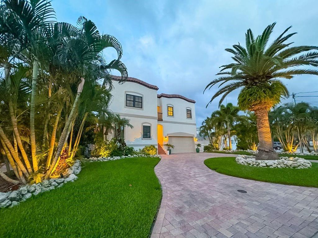 Florida living at its best! Experience luxury coastal living in this stunning waterfront home nestled comfortably on the quiet street in the residential area of Indian Rocks Beach, just two blocks from the pristine white sand beaches of the Gulf of Mexico. This home is beautifully renovated with timeless contemporary materials and design. It's light, bright and inviting. Perfect for spending time with family and friends. The main floor has an open-concept design that includes a large contemporary kitchen with beautiful granite countertops, convenient breakfast bar, stylish and functional home bar, dining room and generous living room. There is abundance of natural light and beautiful water views. Sliding glass doors open to an awesome large deck that overlooks sparkling pool, tropical landscaping and Intercostal Waterway. There are two bedrooms on this floor, one of them is currently used as an office. The upper floor futures 4 balconies, a huge (26x21) entertainment room with panoramic views of the Intercostal Waters, a spacious Master Bedroom with beautiful ensuite bathroom, walk in closet and large private balcony with fabulous water views; and a comfy second bedroom also with its own private bath and balcony. The 4-person sauna is located in the garage. Outside: peaceful patio, sparkling pool, hammock (lazy afternoon delight), private boat dock,13,000 lb boat lift, lush tropical landscaping and tranquil view of the Intercostal Waterway. This resort-like living with amazing outdoor space gives you an opportunity to relax and enjoy a lifestyle you envisioned for yourself. Balconies, deck, dock and pool side patio; many areas for outdoor activities or to relax and admire breathtaking sunrises, sunsets, spectacular views and gentle sounds of nature. For beach lovers, there is a very short walk to the beautiful and peaceful beach. For boating enthusiasts, minutes by boat to Clearwater Pass and wide-open waters of the Gulf of Mexico. This beautiful and comfortable home has a great curb appeal, paved circular driveway and mature Florida style landscaping. Great for primary residence, vacation home or investment property with lucrative income. Built in 2001. New windows and doors 2022, new tile roof 2023. ELEVATED HOME. First floor height: 19.7 ft. Low flood insurance ($1,062 per year) is assumable. Conveniently located to shopping, restaurants, playgrounds, parks, dog park, recreational facilities and entertainment. Quick drive to lively downtown St Pete, easy access to St Pete/Clearwater and Tampa International Airports. Supper location! There is something for everyone to enjoy. Make your appointment to view this gorgeous home today.