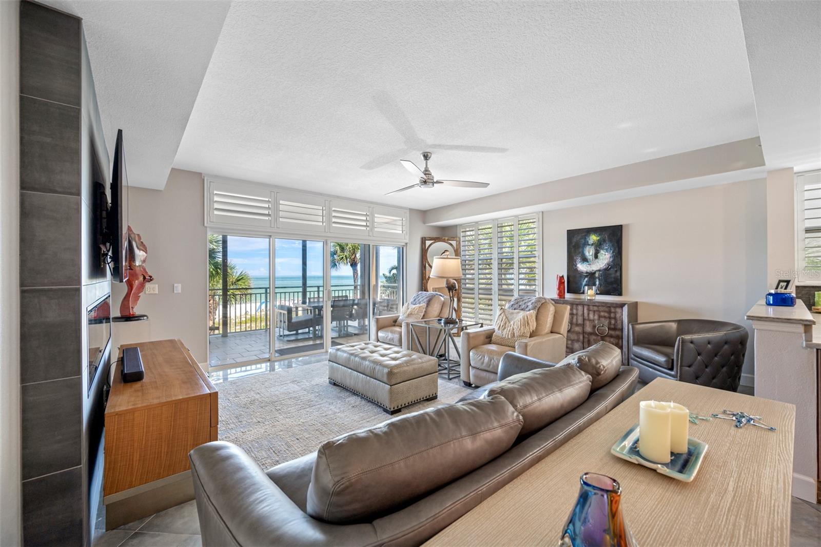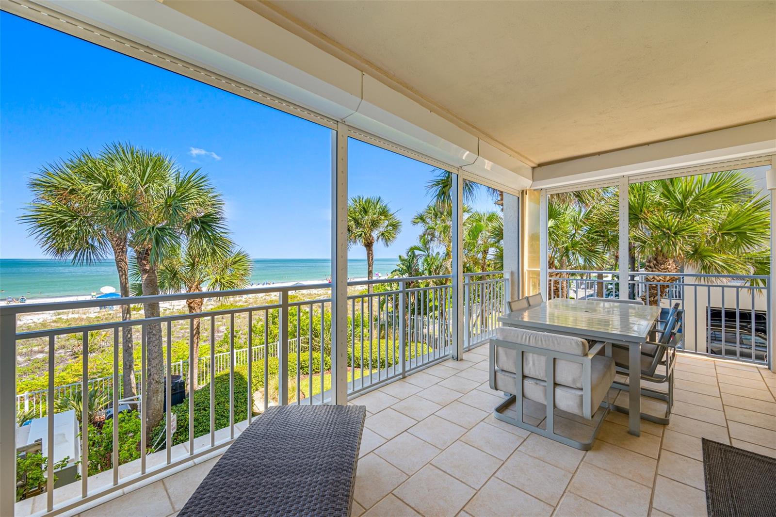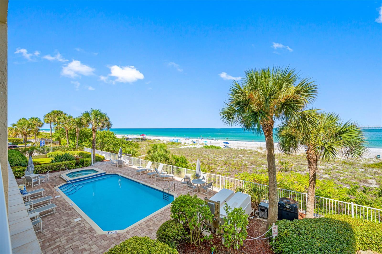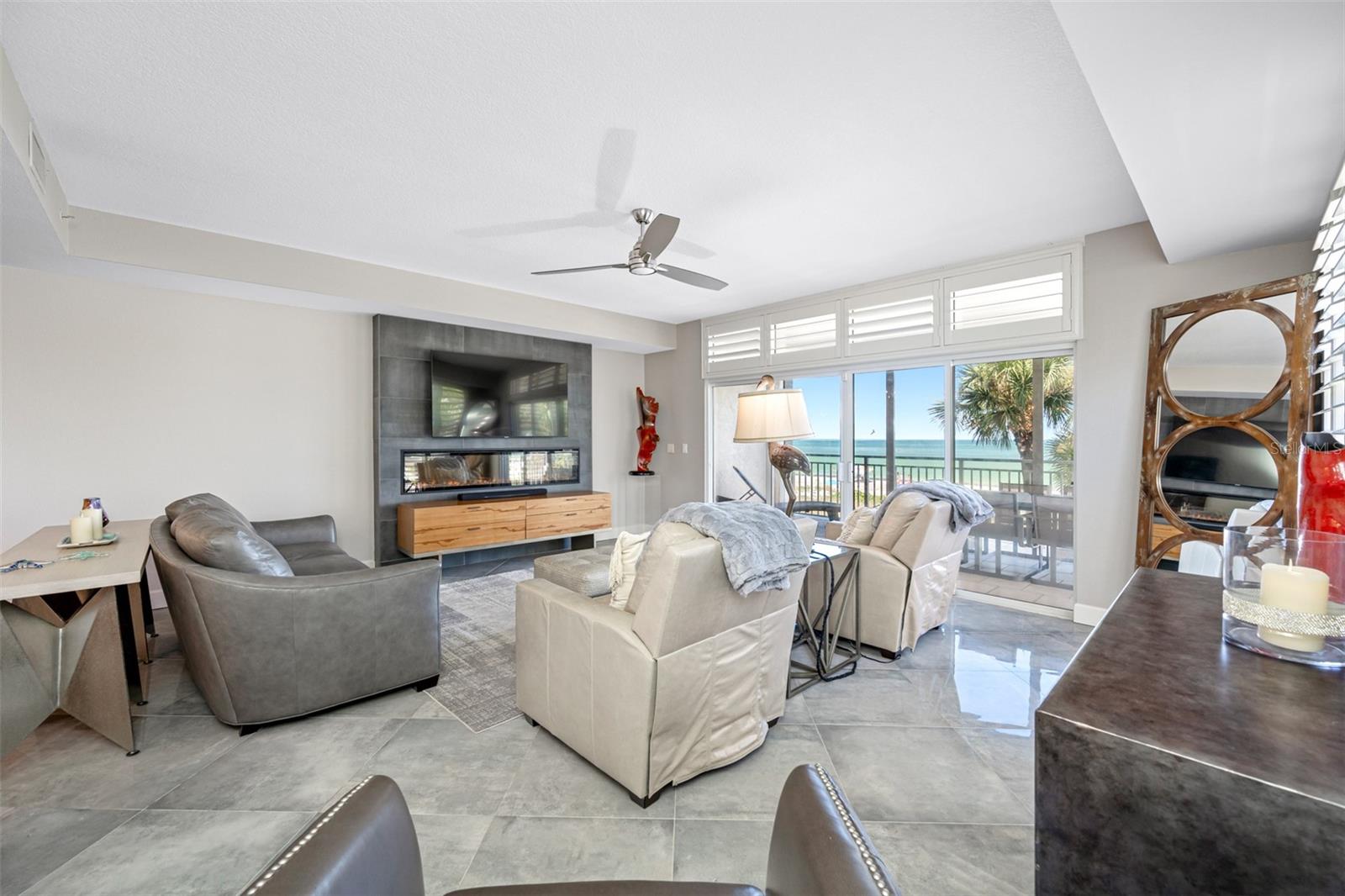 HUGE PRICE REDUCTION.....Welcome to your beautiful luxury beachfront condo in a truly distinctive building with only 16 exclusive units. Embrace a refined beach lifestyle with unparalleled construction and a contemporary, updated look that offers year-round sunsets and breathtaking views of the Gulf of Mexico. You are so close you can reach out and almost touch the sugary sands of this family-style beach. Upon entering this gorgeous beach-front condo you find yourself in a beautifully designed living space. Large and complete with a closet, this area beckons you to use your imagination as to its use-den, office, sleeping space? Located off this space is a bedroom with an updated designer bath. Looking forward you find the enchanting view of the Gulf of Mexico, beautifully framed by palms and greenery, seen through the large sliders and windows of this corner unit with 9’ ceilings. Your residence has been completely updated, featuring a chef's kitchen designed to satisfy even the most discerning culinary enthusiast. Enjoy the large, elegant island with ample seating, two-tone solid wood cherry cabinets, gorgeous quartzite and top-of-the-line appliances. The open floor plan living area is anchored by a designer fireplace, adding ambience and uniqueness to your home. The diagonal-placed 24” porcelain flooring enhances the beauty of the unit. As you retreat into the oversized primary suite you will feel a European flair. This emanating from a lovely, updated designer bath enhanced with floor to ceiling porcelain tile, free standing tub, walk-in shower, a washed oak double vanity and walk-in closet. A brand-new AC guarantees comfort year-round. The condominium also includes two rare, dedicated parking spaces, completely covered and garaged to protect your vehicles and golf cart from the elements. The beautiful balcony overlooking the pool and beach provides a tranquil, peaceful setting with the waterfront at your doorstep. There is convenient access to the gated pool, spa and a private entrance to the beach. The complete aesthetics creates a sophisticated urban vibe with the serene ambiance of the beach, offering the best of both worlds. Chez Soleil Condominium is one of the few that is on a beach trail and not on Gulf Blvd. Enjoy the variety of restaurants, shops, and cafes around the corner. Kolb Park is a block away offering pickle ball, tennis, basketball, a skatepark, playground, arts center, and City Hall. Discover the ultimate in luxury living in the heart of Indian Rocks Beach. This one-of-a-kind building offers a truly unique and peaceful coastal experience. Make your appointment today for a private showing.
