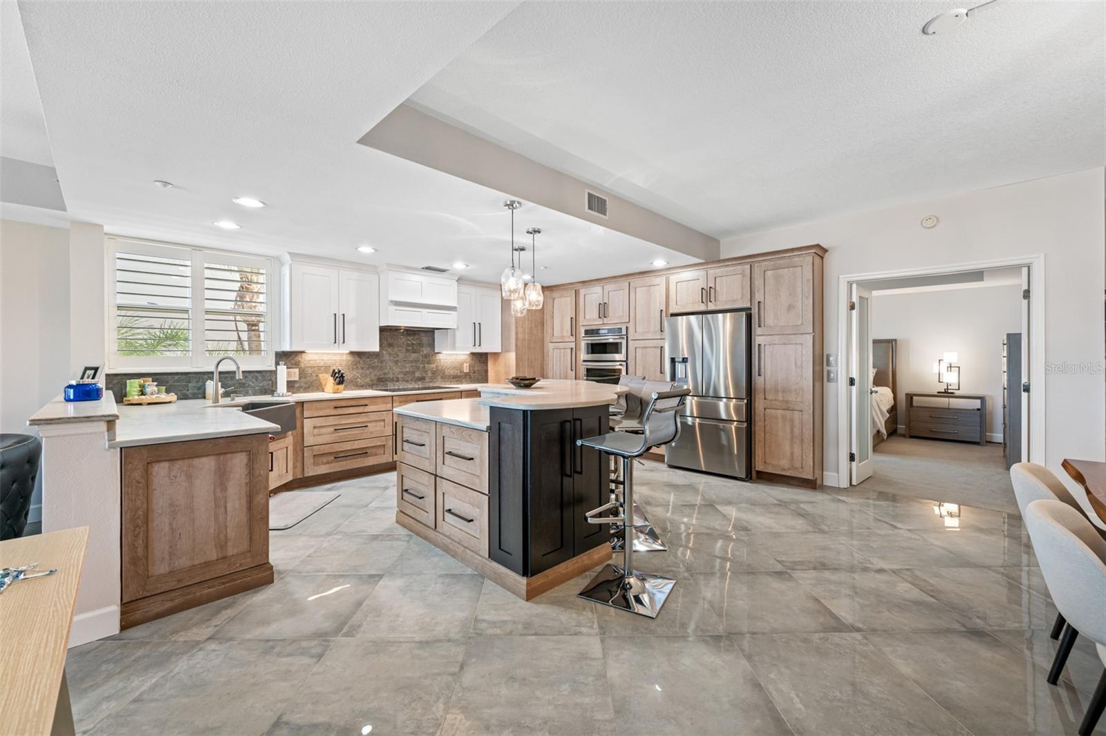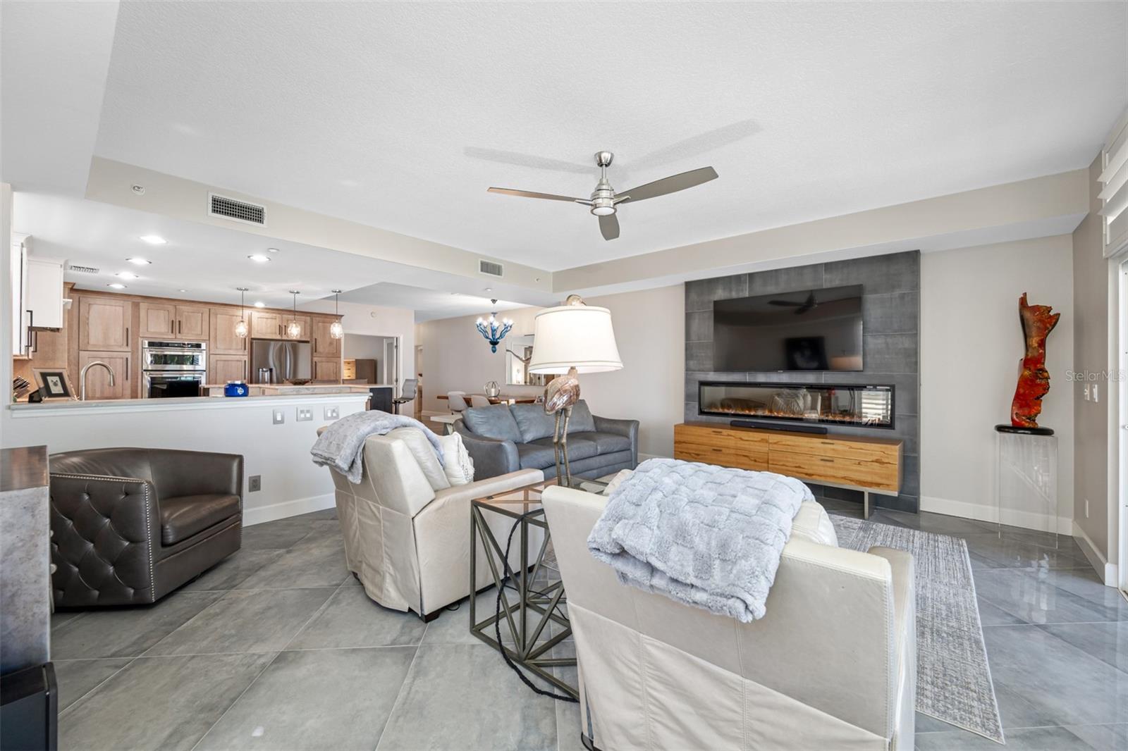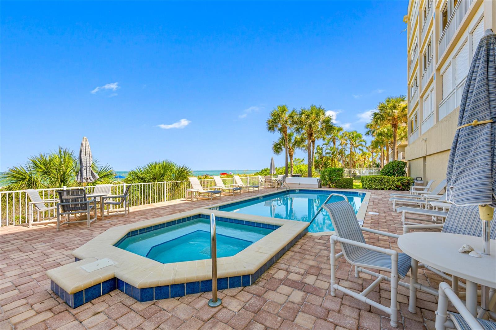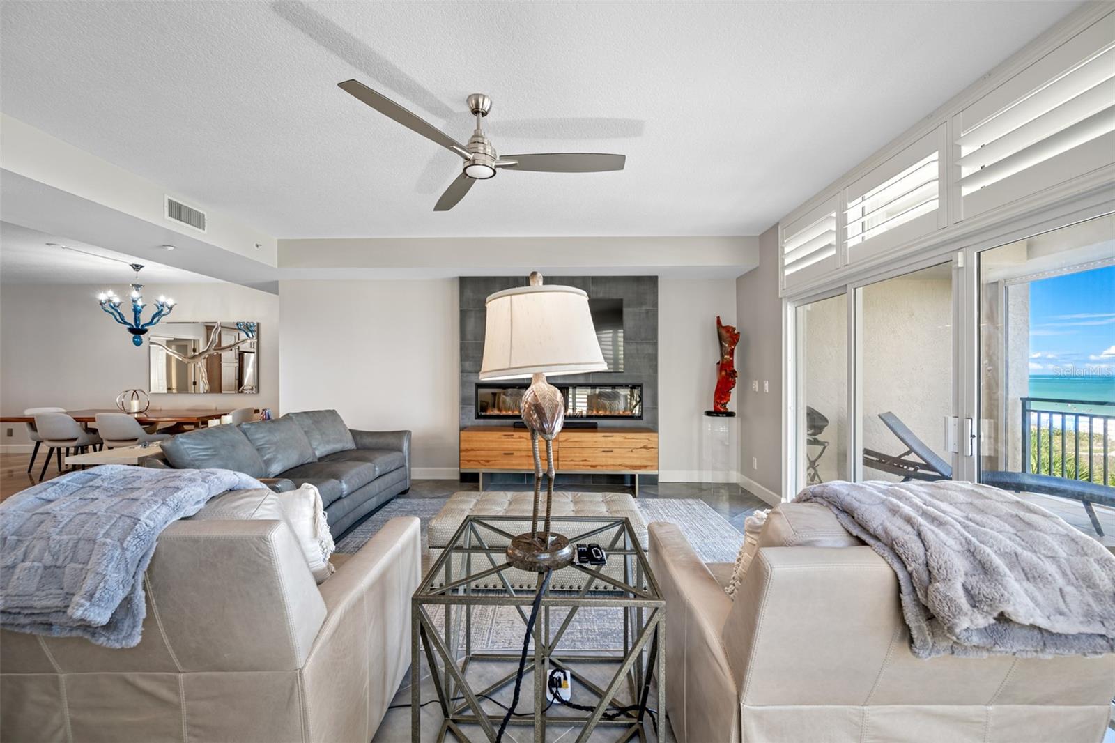 HUGE PRICE REDUCTION.....Welcome to your beautiful luxury beachfront condo in a truly distinctive building with only 16 exclusive units. Embrace a refined beach lifestyle with unparalleled construction and a contemporary, updated look that offers year-round sunsets and breathtaking views of the Gulf of Mexico. You are so close you can reach out and almost touch the sugary sands of this family-style beach. Upon entering this gorgeous beach-front condo you find yourself in a beautifully designed living space. Large and complete with a closet, this area beckons you to use your imagination as to its use-den, office, sleeping space? Located off this space is a bedroom with an updated designer bath. Looking forward you find the enchanting view of the Gulf of Mexico, beautifully framed by palms and greenery, seen through the large sliders and windows of this corner unit with 9’ ceilings. Your residence has been completely updated, featuring a chef's kitchen designed to satisfy even the most discerning culinary enthusiast. Enjoy the large, elegant island with ample seating, two-tone solid wood cherry cabinets, gorgeous quartzite and top-of-the-line appliances. The open floor plan living area is anchored by a designer fireplace, adding ambience and uniqueness to your home. The diagonal-placed 24” porcelain flooring enhances the beauty of the unit. As you retreat into the oversized primary suite you will feel a European flair. This emanating from a lovely, updated designer bath enhanced with floor to ceiling porcelain tile, free standing tub, walk-in shower, a washed oak double vanity and walk-in closet. A brand-new AC guarantees comfort year-round. The condominium also includes two rare, dedicated parking spaces, completely covered and garaged to protect your vehicles and golf cart from the elements. The beautiful balcony overlooking the pool and beach provides a tranquil, peaceful setting with the waterfront at your doorstep. There is convenient access to the gated pool, spa and a private entrance to the beach. The complete aesthetics creates a sophisticated urban vibe with the serene ambiance of the beach, offering the best of both worlds. Chez Soleil Condominium is one of the few that is on a beach trail and not on Gulf Blvd. Enjoy the variety of restaurants, shops, and cafes around the corner. Kolb Park is a block away offering pickle ball, tennis, basketball, a skatepark, playground, arts center, and City Hall. Discover the ultimate in luxury living in the heart of Indian Rocks Beach. This one-of-a-kind building offers a truly unique and peaceful coastal experience. Make your appointment today for a private showing.