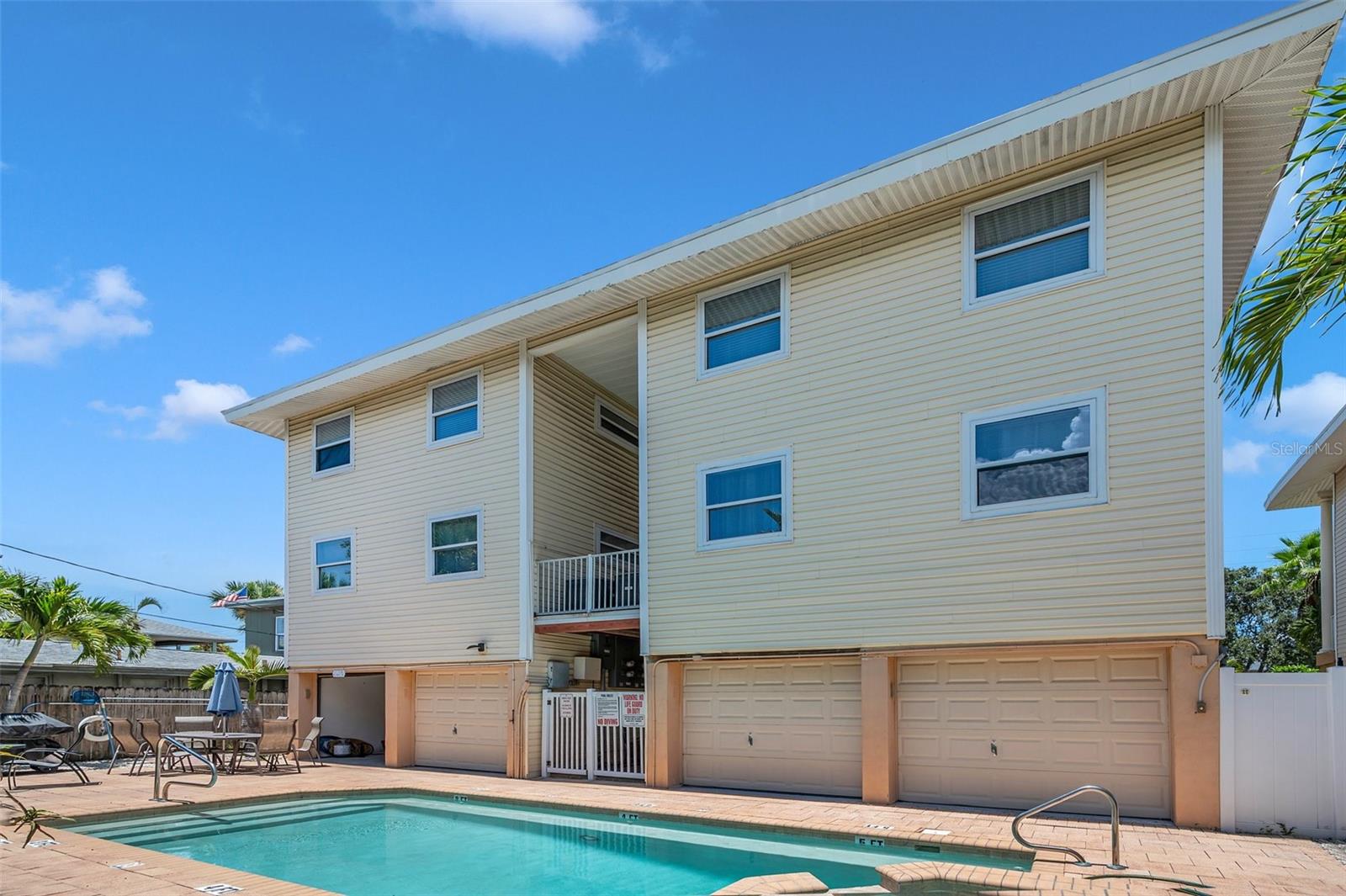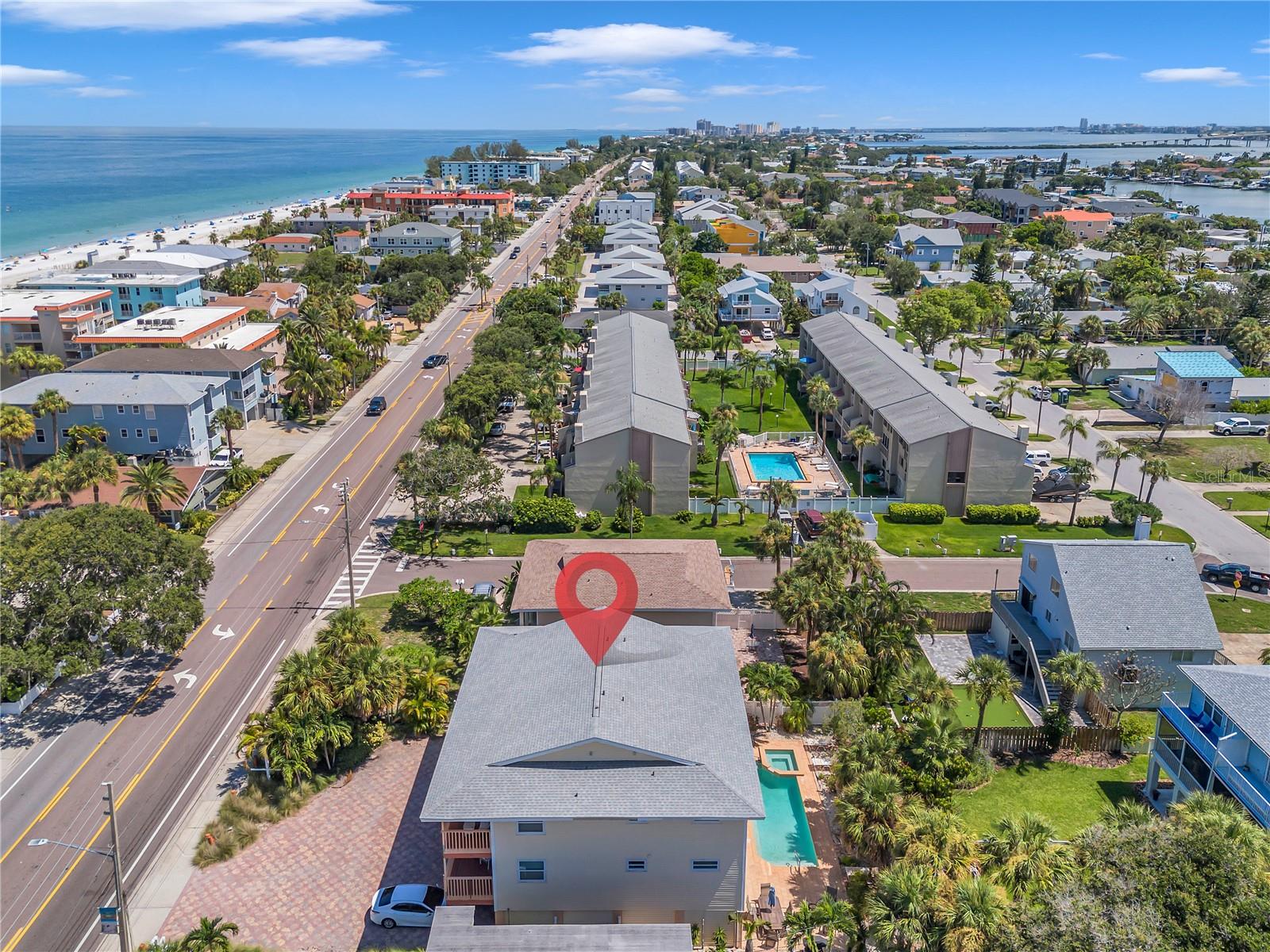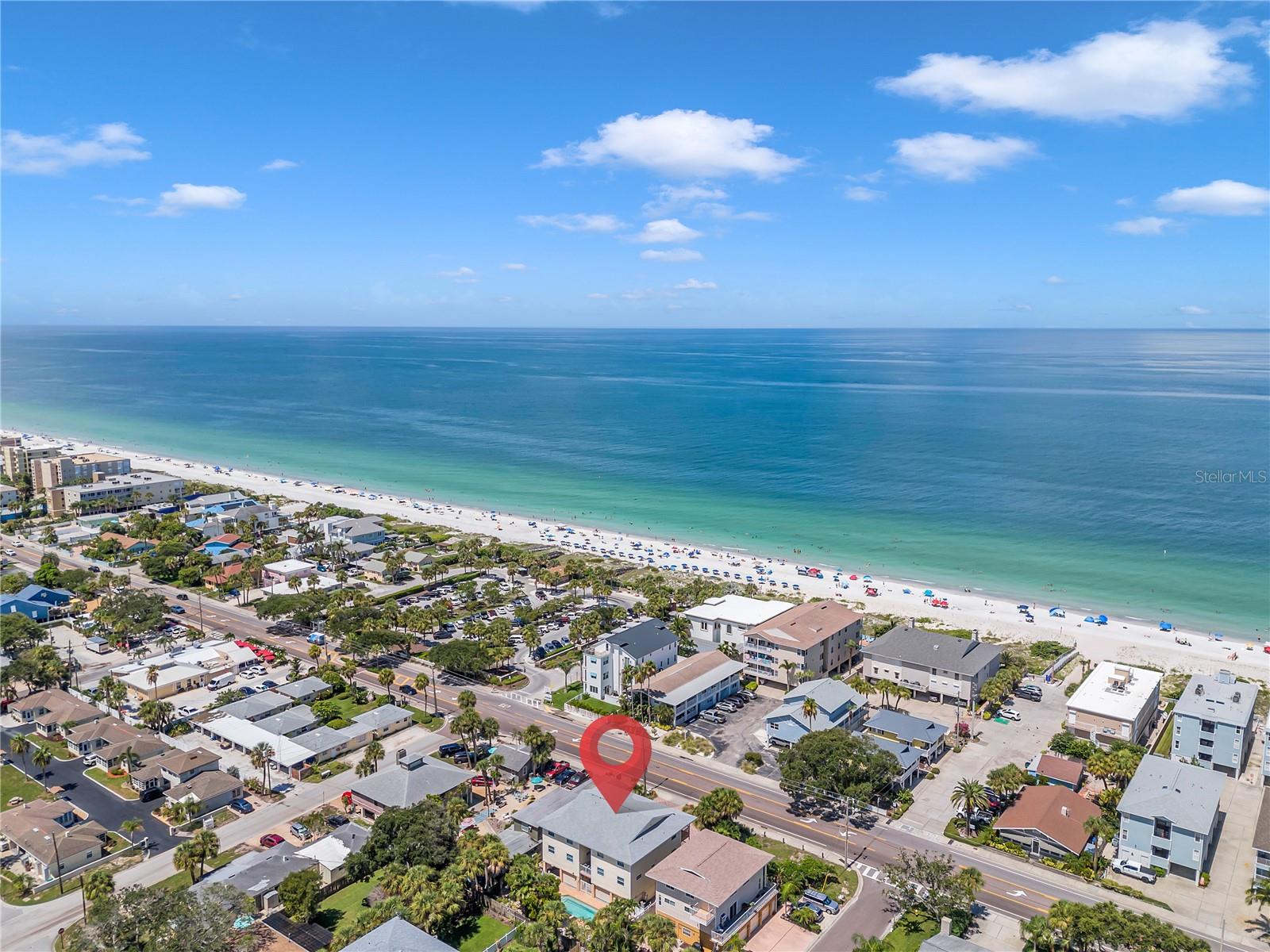 2024 improvements and renovations include: four (4) brand new central HVAC systems in each condo unit. Exterior pressure wash, paint, and wood replacement from balconies. Property recently completed a clear Phase 1 condo study (8/2024) with no issues or assessments required. Rare turn key opportunity to acquire Four (4) fee simple condominiums in one free standing building across the street from the sugary sands of Indian Rocks Beach! Since all units are under the same ownership there are no monthly condo/HOA fees, nor assessments required! Del Mar Condos features four induvial units(B1,B2,C1,C2) which all share a similar 2 bedroom/ 2 bathroom floor plan about 878sqft each with an open kitchen concept, living room, dining area, in unit washer and dryer, and front covered balconies to enjoy sunset beach views. The condo units are operated as a successful short term rental business with no minimum rental restrictions which results in endless revenue growth potential for the next owner/STR operator. Each unit comes meticulously furnished with carefully selected handpicked designer finishes from decorative pillows, coordinating linens, all to create different themes in each unit to keep guest coming back year after year. All units must be SOLD Together with all furnishings, bedding, patio set/ outdoor furniture, and essential items to operate STR/Bed and Breakfast. In addition, each unit has its own, VERY HARD TO FIND on the beaches, 2 car tandem garages with front and rear access roll up doors to accommodate for storage, guest parking, plus the large ample paver parking driveway. Due to the elevated construction style of this building over the tandem garages flood insurance is a fraction of the cost ($4,100/annually) compared to other beach front properties. In addition to low flood insurance premiums, Hazard insurance will be grossly discounted due to all units having newer impact resistant windows and double pane sliding glass doors on all 4 balconies, and a Brand-new dimensional shingle roof installed in 9/2022. All units have been renovated in the past to include granite countertops, solid real wood cabinets, newer appliances, newer hot water heaters, flooring and interior Paint. DEL MAR CONDOMINIUMS sit strategically directly across street from TWO (2) beach access points and walking distance to many venues and dinning on IRB. After a long day on the beach, you can enjoy your time in the tropical oasis backyard pool and/or hot spa that is shared only between 4 residences. There are additional zoning benefits to future owners as this property sits in Multifamily and P1 (professional office zoning district) that allows bed and breakfast and other commercial uses advantageous to traditional residential zoning. Please inquire for additional zoning information from the city of Indian rocks beach. Since this property is operating as a STR please schedule an appointment and do not walk the property or speak to guest. All units must be sold together per owner’s request. Please inquire and act now to secure this rare investment opportunity on Indian rocks beach. All information in this listing is for informational purposes and buyer(s)/buyer’s agents are responsible for independently verifying any and all information.