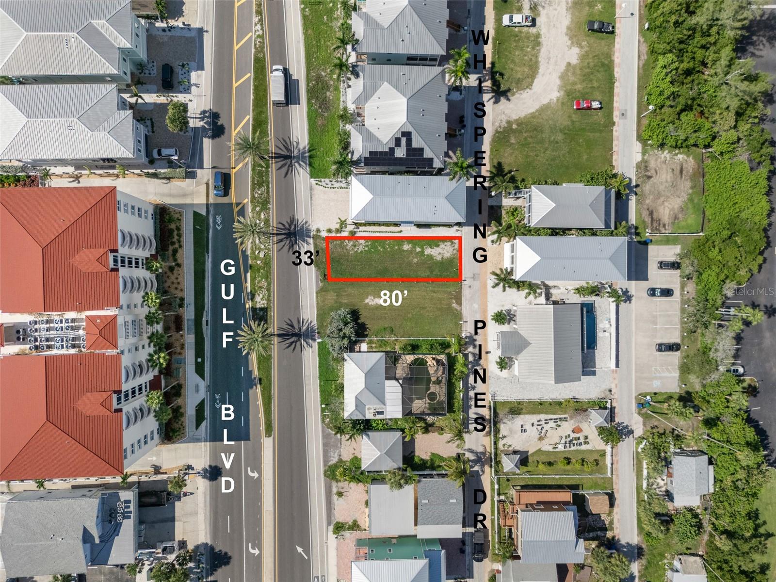 Prime Vacant Lot in Indian Shores with Gulf Blvd Frontage! This 33x80 parcel is zoned ROR (Residential, Office, Retail) and is located in the Indian Shores Town Planning Area, offering more flexibility than standard zoning. The lot allows for one buildable unit which can be multi-family if they are on top of each other. Great height allowances: 1st floor "Parking Garage then 35' above allowing for 3 floors at 10' each. Entrance and Exits must be from the back on Whispering Pine Drive. Situated directly on Gulf Blvd, across from multi-million-dollar beachfront condos and homes, this property offers exceptional visibility on the main thoroughfare connecting all of Pinellas County’s world-famous beaches. Luxury residences, popular beach bars, restaurants, and entertainment line Gulf Blvd. Buildable lot letter and zoning details with setbacks are available upon request. Seller is an investor and has never occupied the property.
