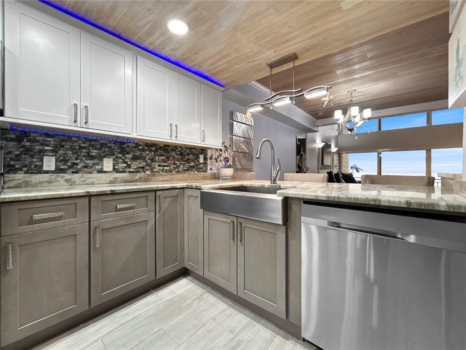 Welcome to your beachfront paradise at 19700 Gulf Blvd Unit 204 in Indian Rocks Beach, Florida. This stunning condo offers the perfect blend of luxury, comfort, and breathtaking views of the Gulf ocean. As you enter the unit, you are greeted by an open and spacious living area with floor-to-ceiling windows that flood the space with natural light and provide panoramic views of the sparkling waters. The living room is elegantly appointed with high-end finishes and modern furnishings, creating a relaxing and inviting atmosphere for both residents and guests. The gourmet kitchen is completely updated and it includes a coffee bar station, featuring top-of-the-line stainless steel appliances, sleek cabinetry, and granite countertops. Whether you are preparing a casual meal or hosting a dinner party, this kitchen is sure to impress even the most discerning home cook. electric blinds in the vaulted ceilings. The master bedroom is a true retreat overlooking the ocean, his and her walk-in closet, and a luxurious en-suite bathroom and a glass-enclosed shower. The additional guest bedrooms are spacious and well-appointed, offering ample space for family and friends. Elevator access on both floors and views from all living areas. All exterior outdoor areas have been updated with a luxury pool and poolside restrooms along with a grilling station to maximize this resort feel. The clubhouse has a full kitchen and restrooms with plenty room for parties. Ample guest parking. This 18 unit complex has all reserves met and has been completely updated in the exterior. Milestones have been finished and paid. Step outside onto the expansive balcony and experience true waterfront living at its finest. Sip your morning coffee as you watch the sunrise over the Gulf ocean.