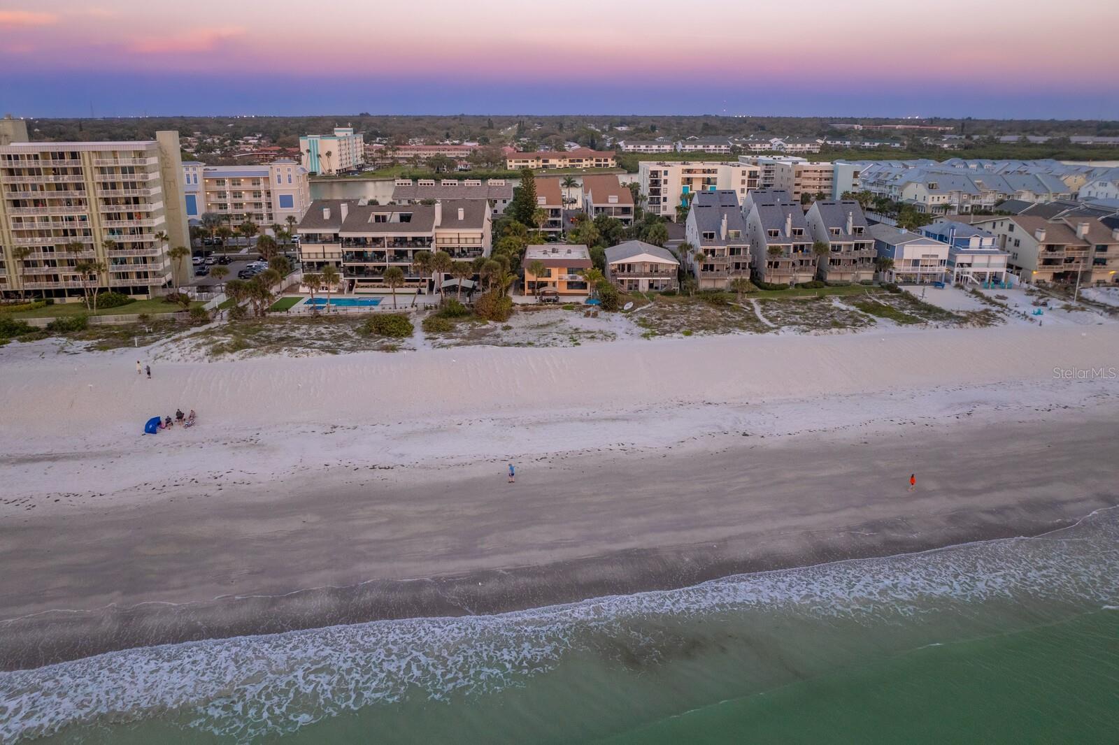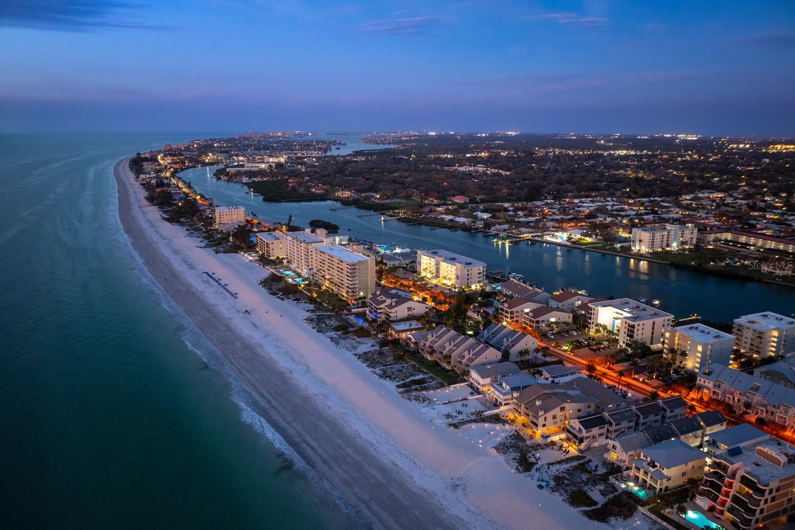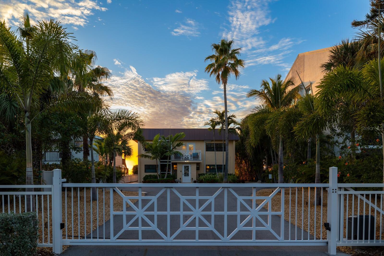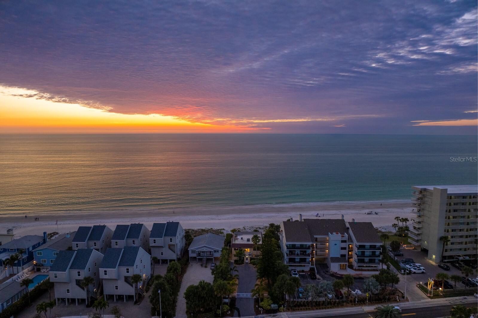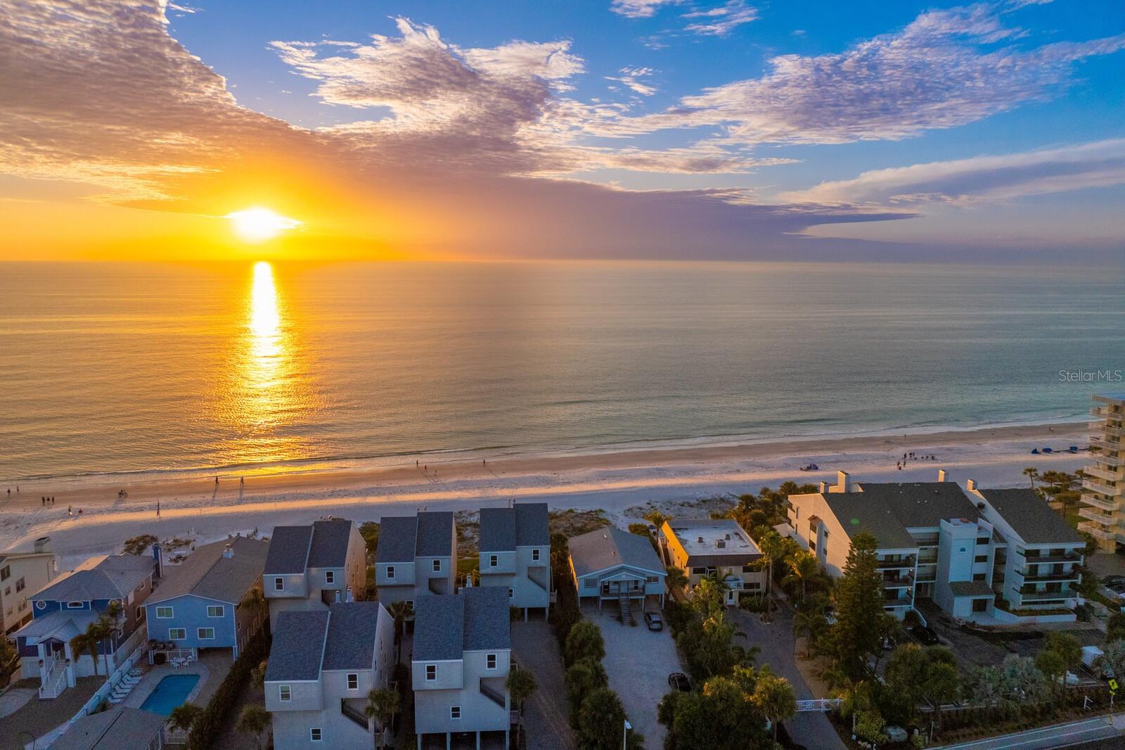 Nestled along the pristine shores of the Gulf, this captivating beach house seamlessly blends coastal elegance with relaxed charm, all while offering remarkable versatility and potential. The priceless views and location offer an appreciation of the beauty of nature. Arrive at your private beachside haven and enter through a custom remote gate with a separate pedestrian entrance. Inside, discover an open-concept design bathed in natural light from the NEW custom windows and doors, inviting the awe-inspiring beauty of sunsets, salty breezes, and sunrises into your living space. The two kitchens, both overlooking the beach, showcase modern appliances and marble countertops, creating an ideal setting for entertaining. Upstairs, a tranquil sanctuary awaits, with two private balconies offering sweeping views of the Gulf of Mexico and partial Intracoastal vistas. Direct access to sandy shores makes this beach house a haven for those seeking the quintessence of coastal living—where every moment is a celebration of sun, surf, serenity, and spectacular sunsets. Cherished by a single family for decades, this residence has undergone meticulous updates and upgrades both inside and out, along with new landscaping featuring coastal tropical Florida plants and palms. Set on a generously large lot of .39 acres with 63ft of beach frontage, this home, with its solid concrete construction provides durability and opportunity. The rare ability to walk directly out to the powdery sands of the beach is a sought-after benefit of living the coastal life. This charming home offers panoramic ocean views and an immediate connection to the tranquil Gulf waters. This beach retreat is a rare find, offering the flexibility to serve as your primary residence, a duplex, or as a canvas for building a new home directly on the Gulf. Private entrances with an elevator or stairs welcome you to the second level, with the upstairs unit doubling as a spacious in-law suite or separate rental. With an open-concept design, five bedrooms, and four baths, the first floor features a 2/2 floor plan, while the second floor offers a 3/2 design, both with large living areas, private entrances, kitchens, and interior utility rooms. Recent upgrades include all newer custom windows and doors, and newer balcony railings, enhancing the property's allure. Two AC units and the roof were replaced in 2019 and 2018, along with the installation of remote shades on the oversized west facing windows, Plantation shutters, and crown molding. Whether for investment, development, or family living, this property is a one-of-a-kind gem in Indian Shores, boasting two full condo-like floors, each with its distinct charm. Whether you choose to develop, convert it to rentals, use the second floor as an in-law suite, or make it all your own, this beach house epitomizes coastal living, where every moment is a celebration of sun, surf, and serenity, coupled with the added allure of potential and versatility. Conveniently located near restaurants, medical facilities, esteemed schools, interstates, and two international airports, this private seaside haven awaits your arrival!