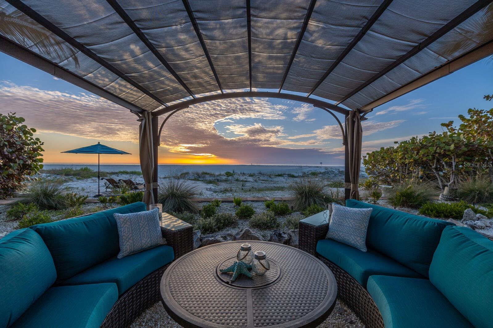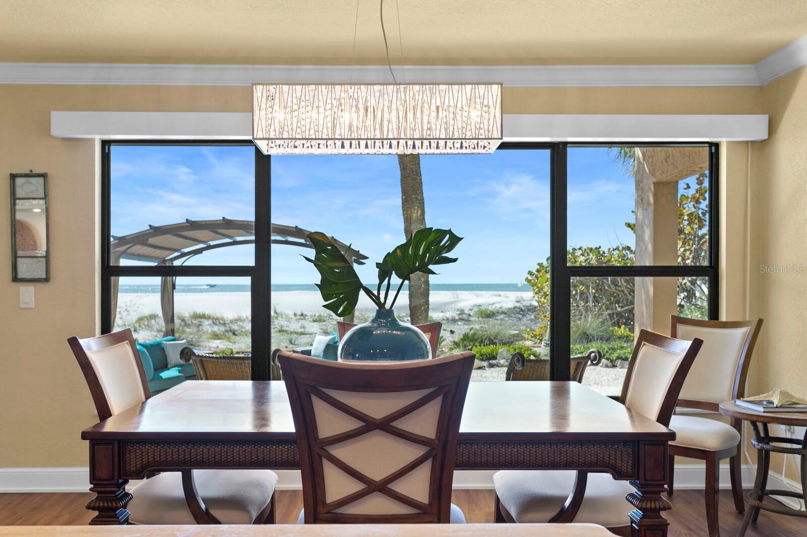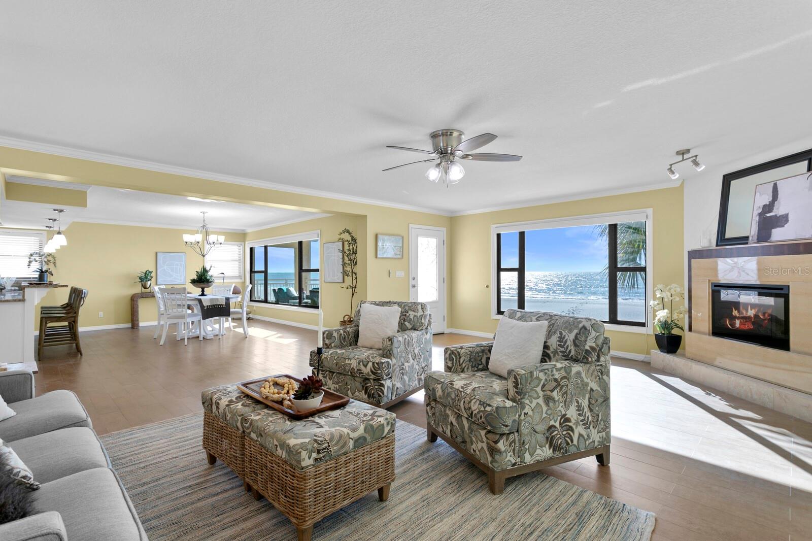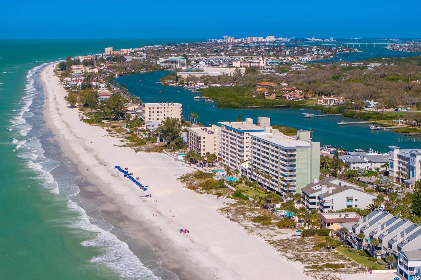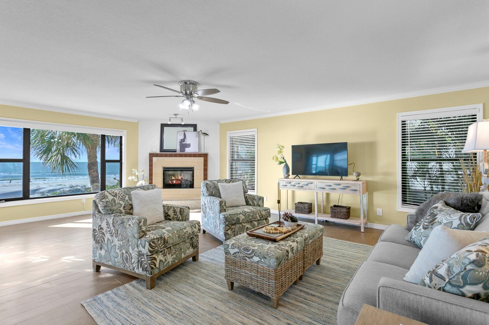 Nestled along the pristine shores of the Gulf, this captivating beach house seamlessly blends coastal elegance with relaxed charm, all while offering remarkable versatility and potential. The priceless views and location offer an appreciation of the beauty of nature. Arrive at your private beachside haven and enter through a custom remote gate with a separate pedestrian entrance. Inside, discover an open-concept design bathed in natural light from the NEW custom windows and doors, inviting the awe-inspiring beauty of sunsets, salty breezes, and sunrises into your living space. The two kitchens, both overlooking the beach, showcase modern appliances and marble countertops, creating an ideal setting for entertaining. Upstairs, a tranquil sanctuary awaits, with two private balconies offering sweeping views of the Gulf of Mexico and partial Intracoastal vistas. Direct access to sandy shores makes this beach house a haven for those seeking the quintessence of coastal living—where every moment is a celebration of sun, surf, serenity, and spectacular sunsets. Cherished by a single family for decades, this residence has undergone meticulous updates and upgrades both inside and out, along with new landscaping featuring coastal tropical Florida plants and palms. Set on a generously large lot of .39 acres with 63ft of beach frontage, this home, with its solid concrete construction provides durability and opportunity. The rare ability to walk directly out to the powdery sands of the beach is a sought-after benefit of living the coastal life. This charming home offers panoramic ocean views and an immediate connection to the tranquil Gulf waters. This beach retreat is a rare find, offering the flexibility to serve as your primary residence, a duplex, or as a canvas for building a new home directly on the Gulf. Private entrances with an elevator or stairs welcome you to the second level, with the upstairs unit doubling as a spacious in-law suite or separate rental. With an open-concept design, five bedrooms, and four baths, the first floor features a 2/2 floor plan, while the second floor offers a 3/2 design, both with large living areas, private entrances, kitchens, and interior utility rooms. Recent upgrades include all newer custom windows and doors, and newer balcony railings, enhancing the property's allure. Two AC units and the roof were replaced in 2019 and 2018, along with the installation of remote shades on the oversized west facing windows, Plantation shutters, and crown molding. Whether for investment, development, or family living, this property is a one-of-a-kind gem in Indian Shores, boasting two full condo-like floors, each with its distinct charm. Whether you choose to develop, convert it to rentals, use the second floor as an in-law suite, or make it all your own, this beach house epitomizes coastal living, where every moment is a celebration of sun, surf, and serenity, coupled with the added allure of potential and versatility. Conveniently located near restaurants, medical facilities, esteemed schools, interstates, and two international airports, this private seaside haven awaits your arrival!