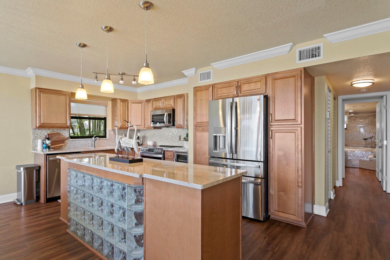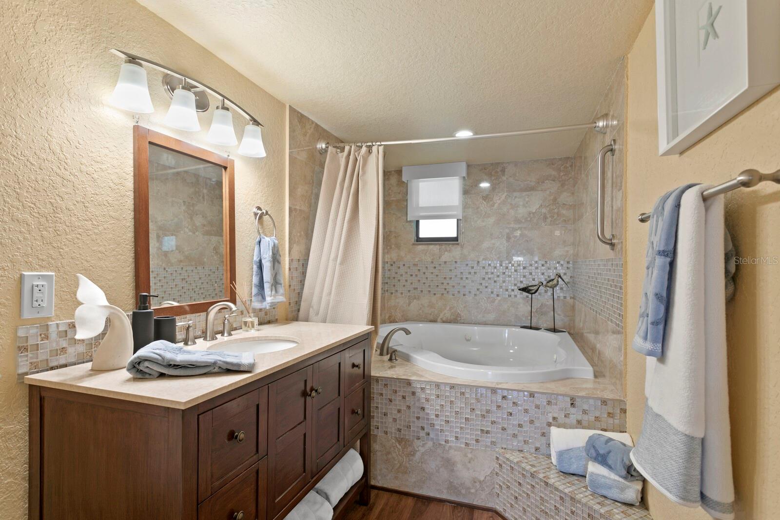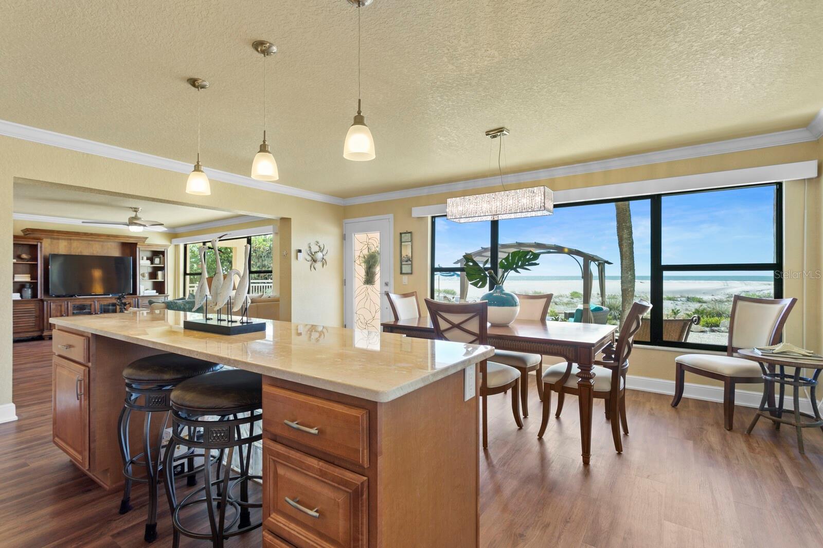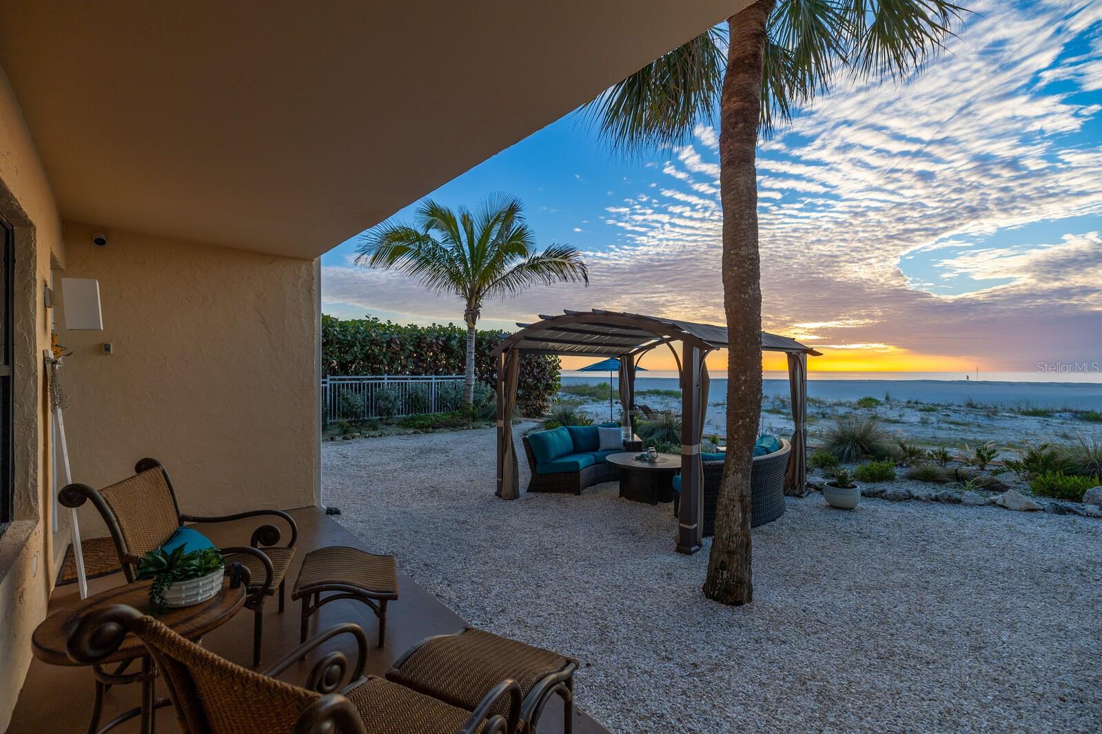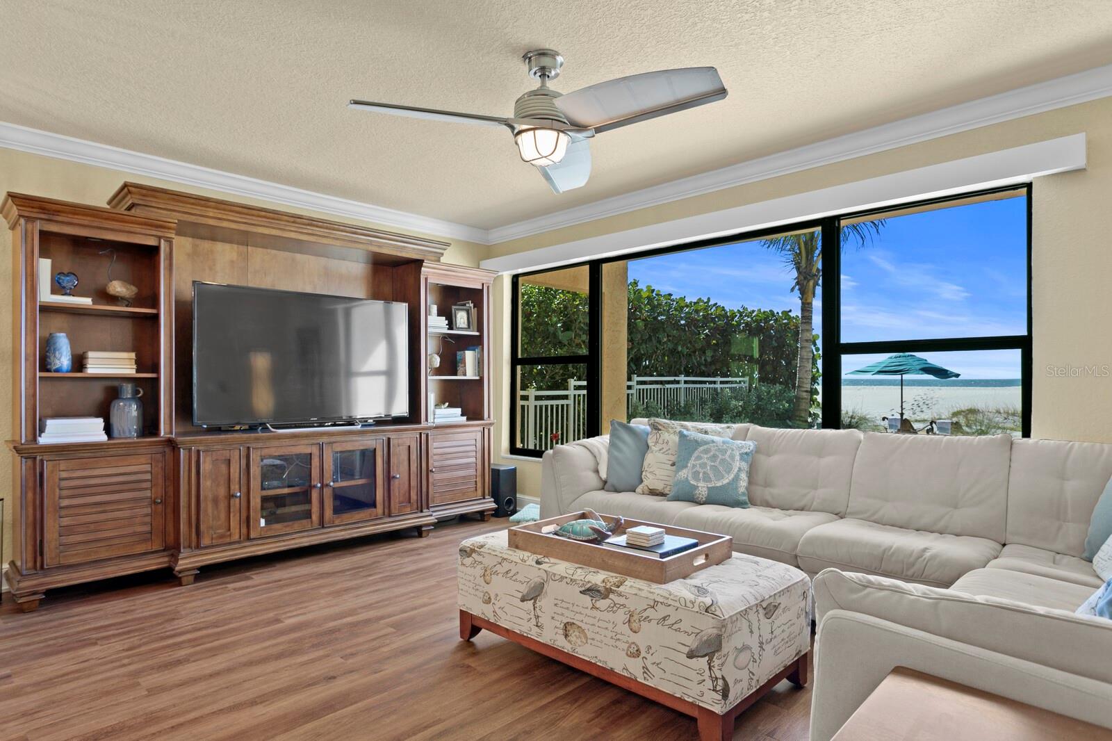 Nestled along the pristine shores of the Gulf, this captivating beach house seamlessly blends coastal elegance with relaxed charm, all while offering remarkable versatility and potential. The priceless views and location offer an appreciation of the beauty of nature. Arrive at your private beachside haven and enter through a custom remote gate with a separate pedestrian entrance. Inside, discover an open-concept design bathed in natural light from the NEW custom windows and doors, inviting the awe-inspiring beauty of sunsets, salty breezes, and sunrises into your living space. The two kitchens, both overlooking the beach, showcase modern appliances and marble countertops, creating an ideal setting for entertaining. Upstairs, a tranquil sanctuary awaits, with two private balconies offering sweeping views of the Gulf of Mexico and partial Intracoastal vistas. Direct access to sandy shores makes this beach house a haven for those seeking the quintessence of coastal living—where every moment is a celebration of sun, surf, serenity, and spectacular sunsets. Cherished by a single family for decades, this residence has undergone meticulous updates and upgrades both inside and out, along with new landscaping featuring coastal tropical Florida plants and palms. Set on a generously large lot of .39 acres with 63ft of beach frontage, this home, with its solid concrete construction provides durability and opportunity. The rare ability to walk directly out to the powdery sands of the beach is a sought-after benefit of living the coastal life. This charming home offers panoramic ocean views and an immediate connection to the tranquil Gulf waters. This beach retreat is a rare find, offering the flexibility to serve as your primary residence, a duplex, or as a canvas for building a new home directly on the Gulf. Private entrances with an elevator or stairs welcome you to the second level, with the upstairs unit doubling as a spacious in-law suite or separate rental. With an open-concept design, five bedrooms, and four baths, the first floor features a 2/2 floor plan, while the second floor offers a 3/2 design, both with large living areas, private entrances, kitchens, and interior utility rooms. Recent upgrades include all newer custom windows and doors, and newer balcony railings, enhancing the property's allure. Two AC units and the roof were replaced in 2019 and 2018, along with the installation of remote shades on the oversized west facing windows, Plantation shutters, and crown molding. Whether for investment, development, or family living, this property is a one-of-a-kind gem in Indian Shores, boasting two full condo-like floors, each with its distinct charm. Whether you choose to develop, convert it to rentals, use the second floor as an in-law suite, or make it all your own, this beach house epitomizes coastal living, where every moment is a celebration of sun, surf, and serenity, coupled with the added allure of potential and versatility. Conveniently located near restaurants, medical facilities, esteemed schools, interstates, and two international airports, this private seaside haven awaits your arrival!