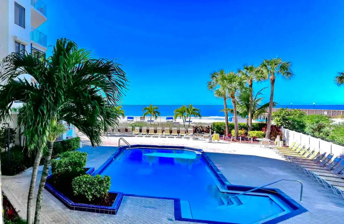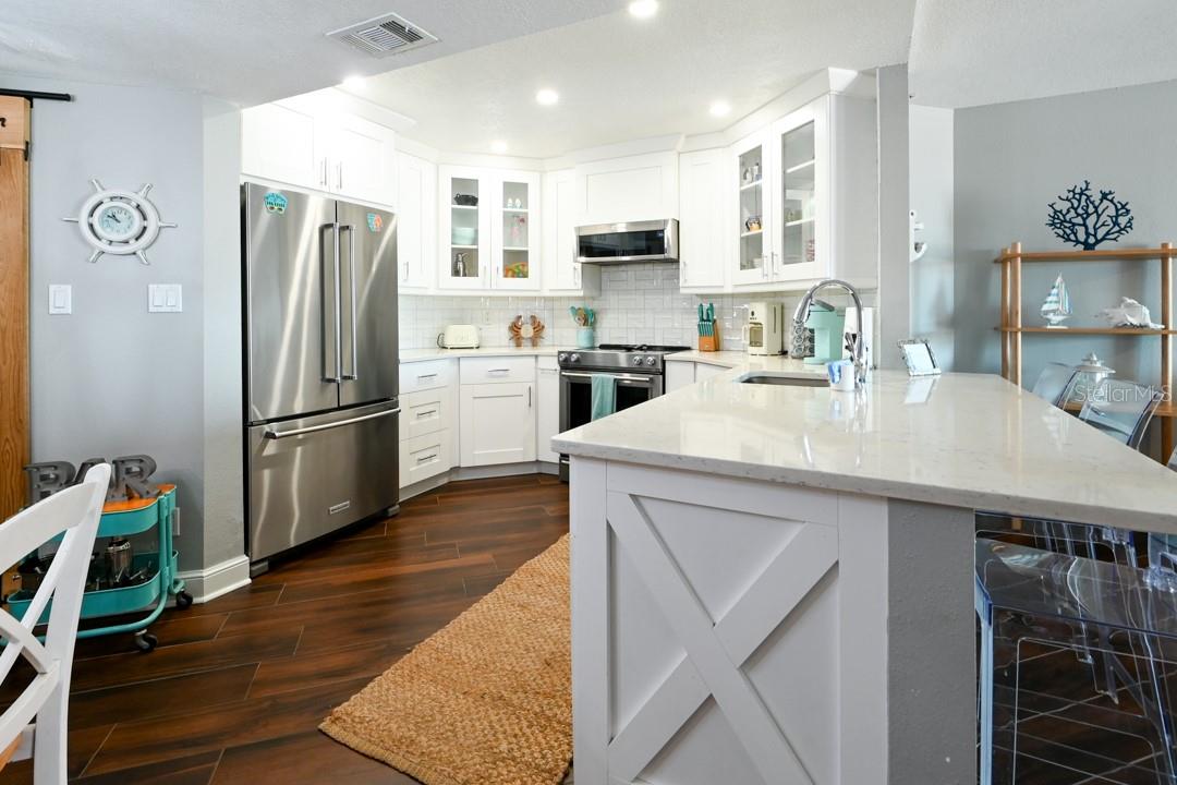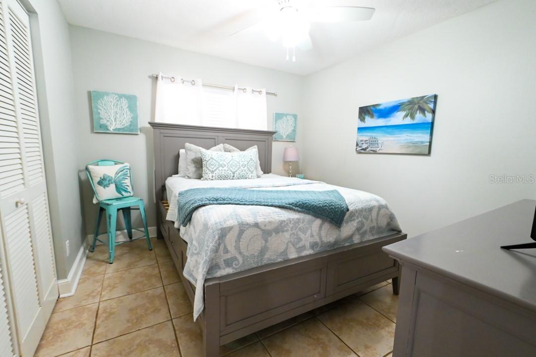 Beautifully updated 3 bedroom and 2 bath condo. This is the perfect second home or income producing property, turn key and fully furnished(All Furnishings/Decorations Convey). The unit has an open kitchen/dining/living space with a split bedroom floor plan. Porcelain tile is laid throughout the living areas and there is tile in all of the bedrooms. The kitchen is fully updated with white shaker cabinets, soft close drawers/cabinets, and KitchenAid appliances along with quartz countertops. The Master Bedroom features an en-suite bathroom with dual sinks and walk-in closet. There is a view of the Gulf from the Master along with a door that leads out to the balcony. The 2nd bathroom has a walk-in shower to accompany the other 2 large bedrooms. This unit also offers a full-size washer/dryer/storage behind the coastal chic barn door. Recent upgrades include a new hurricane grade sliding glass door and THE AC Unit was replaced in 2022. Beach Palms is located in the gorgeous Indian Shores Beach. Its conveniently located by Park Blvd bridge with easy access to groceries, shops, pubs, and boutiques. The complex offers a heated saltwater pool overlooking the beach. There are gas grills and showers/restrooms available as well. HOA includes: Common Area Taxes, Escrow Reserves Fund, Insurance, Maintenance Exterior, Landscaping, Maintenance Grounds, Manager, Pest Control, Pool Maintenance, Sprinkler system (inside condo) maintained by condo association, garbage/waste, and water provided. This unit has great rental reviews and future bookings/Rental history available upon request. 7 DAY minimum rentals