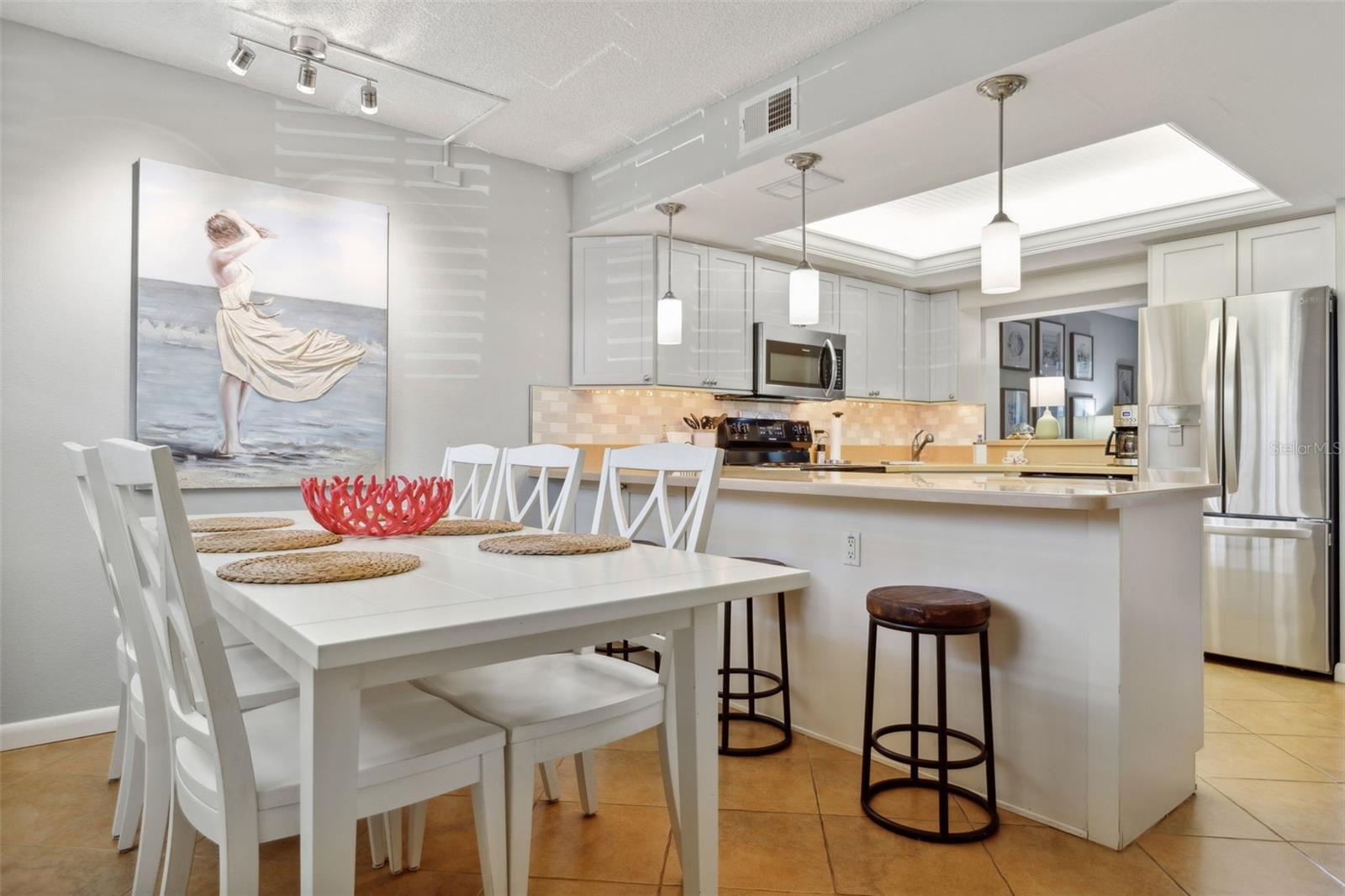 PERFECT Ground Floor, Corner Unit in an amazing location and the very well maintained complex of Bay Mariner. 2 Bedrooms, 2 Full Baths - FULLY FURNISHED & professionally decorated with elaborate coastal decor throughout. A true TURNKEY property - you will love and enjoy the clean and tasteful comfort. Dedicated Parking Space directly located in front of the unit. The updated Kitchen and Dining area welcomes you. Stainless Steel appliances, Kitchen Solid Surface Counters and Breakfast Bar perfect for the additional seating, counter space for entertaining or every day living. Kitchen also features updated Wood, Soft Closing Cabinets. Dining Area has large 6 setting table. Pantry for that extra storage space is a plus. Relax in the spacious Living Room that also includes the electronics. Primary Bedroom features private renovated full bathroom with walk-in shower, large walk-in closet and view of the Intercoastal Water. Split Bedrooms features the second Bedroom is adequately sized, another large walk-in closet, the 2nd private fully renovated Bathroom with another walk-in shower. Laminate flooring in both bedrooms, tile throughout the rest of the property. Plantation Shutters on all windows cover the updated impact windows. Saved the best for last ... The updated, private and enclosed Lanai is perfect for all seasons. Screened or Glass Windows - enjoy all year round while overlooking the interior grounds, pool and Intercoastal Waterway. The community features a heated pool, clubhouse, steam rooms/spa, fitness center, poolside bathrooms, game room. The dock features spaces to tie up your boat or for that rental boat for your stay on a first come availability for your use. Picnic area located on intercoastal water way has grills & picnic tables - perfect for enjoying and eating outside. Pet for Owner is allowed. On-site Laundry Facility available for your use at any time. Additional storage closet dedicated for this unit located in nearby Lobby storage room. Enjoy the easy access to the pool from the lanai or to the beach, just a short walk from the front door. Use this property for your personal stays or for a rental that allows for 1 month minimal stays - or for BOTH ! You are surrounded by beautiful beaches, restaurants, shopping, entertainment. Nearby to all the coastal activities. You will love and enjoy this clean, well-maintained, beautifully decorated home or even home-away-from-home !!!