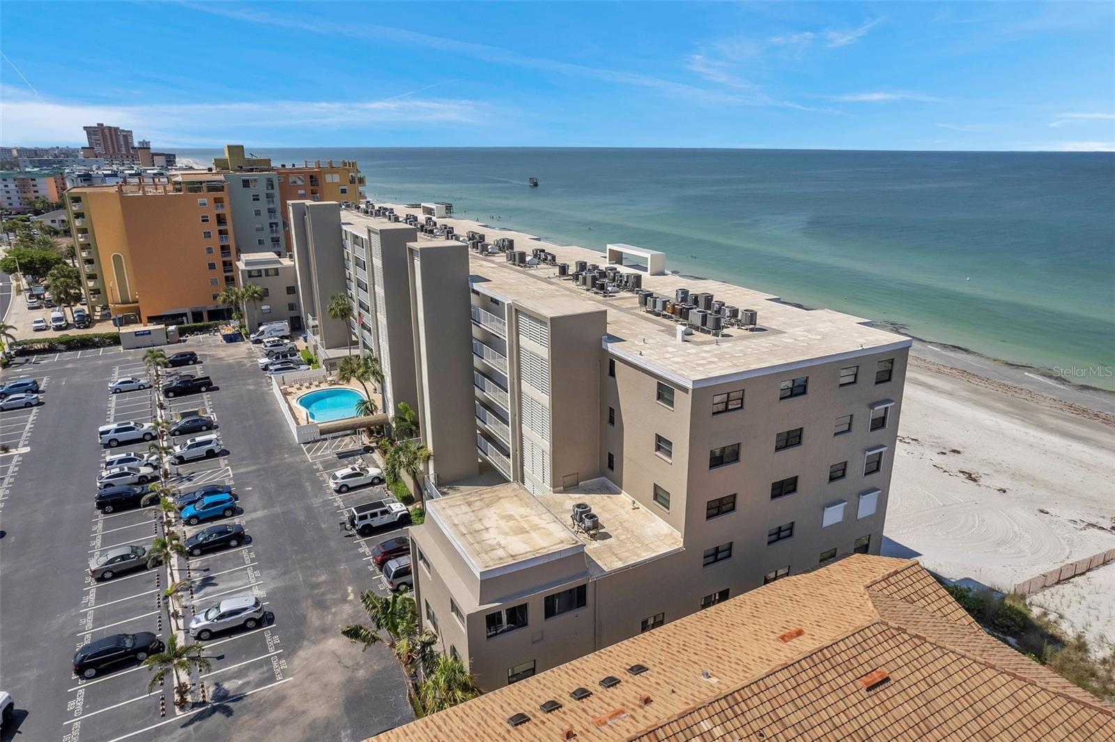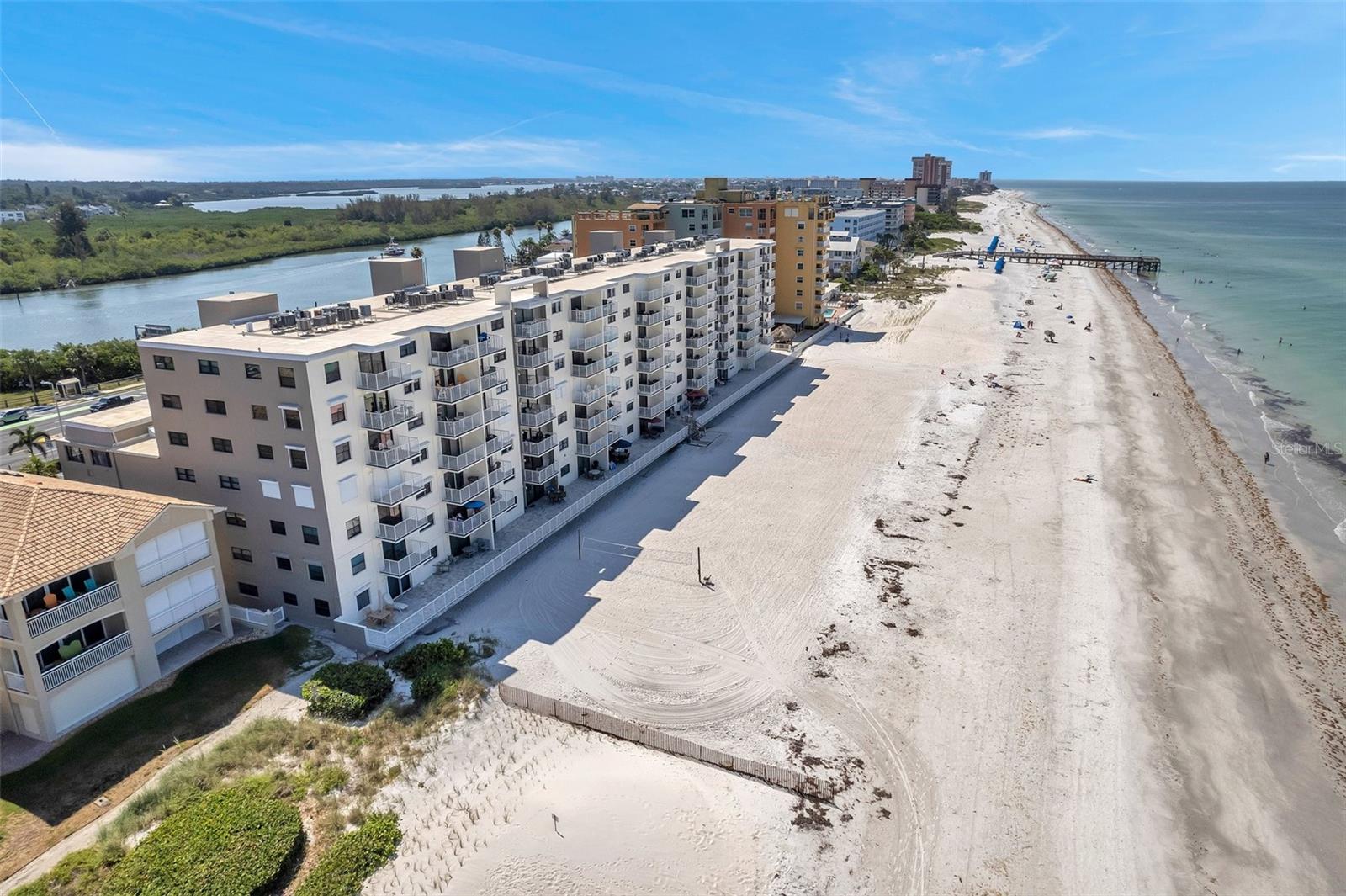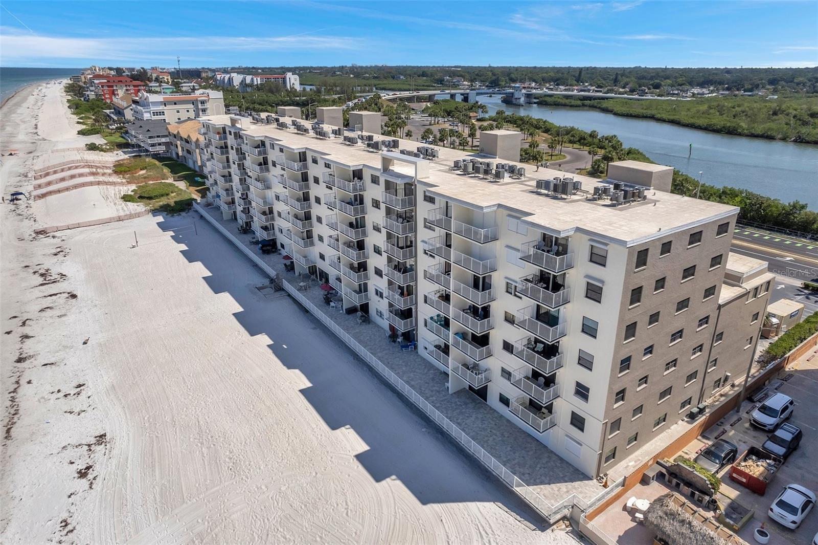 Beautifully furnished PRIVATE CORNER/END UNIT beachside condominium nestled between the Gulf and Intracoastal Waterway. No neighbors above or on 3 sides. Waterfront views from all rooms. Fully renovated beachfront association building completed in 2024 giving Gulf Shores Condominiums a fantastic new look. This 2 Bedroom condo brings exquisite natural lighting into the dining room living room combo. Turnkey money making rental or cozy beach getaway, beautifully designed with all furnishings included. The flooring is tile, beach themed, and is the same throughout the condo. The Kitchen features granite counters and a comfy breakfast bar, brand new cooktop and oven. The bathroom features a granite counter top, walk-in shower, and has a built-in seat inside the shower with a Massaging Thermostatic Shower Panel. Living room features new 4k TV, comfortable sectional with automatic reclining feature, and built-in office desk. The Front Door has a coded key pad and a Ring Doorbell for easy security. Lowest HOA on the beach at only $594/month. Gulf Shores Condo allows owner 1 PET up to 30 lbs. Ground Level amenities include Resident & Guest Parking, Individual Private Storage Spaces, Pool, Pool Bathrooms, Guest Laundry Facility, and Community Clubhouse. Convenient Trash Chutes from all floor levels make leisure living possible. Condo Fees Include: Assigned Parking, Water, Sewer, Trash, Exterior Insurance, Exterior Maintenance, Cable, Wi-Fi, (Disney+) Weekly exterior cleaning & Pool Maintenance. 45 Mins to Tampa International Airport. IMAGINE LIVING WHERE OTHER’S VACATION! Take a dip in the heated pool, park in your deeded space, and store your belongings in your deeded storage unit. Gulf Shores Condo has a 30-day rental minimum, offering flexibility for owners. Located directly across the street is the Intracoastal waterway and The County of Pinellas Boat Ramp! Don't miss out on this incredible opportunity to own a piece of paradise. This will be the place you talk about with everyone you know. PS. Building has been inspected, repairs made, and the 30,000 assessment has been paid. No future worries here.