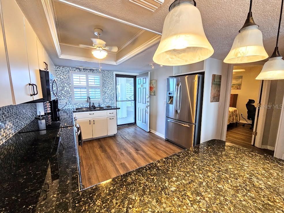 REDUCED $100,000!! DIRECT GULFRONT! Stunning views of the Gulf on the one side and the Intracoastal waterway on the other. This 2 bedroom 2 bath, gorgeous beachfront condo has many updates including hurricane windows and door, an updated kitchen with granite countertops and mosaic glass backsplash with Samsung appliance package including range/oven, micro & newer refrigerator with water and ice maker: tray ceiling & crown molding. The bathrooms have updated sinks, fixtures, plumbing and granite countertops. The primary bedroom features a walk-in closet and an upgraded power storm door with retractable screen. Interior Washer and Dryer included. The required inspection has been completed, and the $36,000 assessment has been paid. Imagine endless water & sunset views from your private balcony! or relax and enjoy the heated community pool year-round on the ground level. Monthly dues are only $747 a month and basically include everything but electric. Other community features include: clubhouse, guest parking, trash chutes on all floors, pool bathrooms, guest laundry facilities, freshwater rinse from the beach entrance, 2 private elevators, Individual private storage on ground level, pet-friendly up to 30 lbs. Rentals are allowed with a 30-day min. You can make this your own private oasis/getaway with crazy income potential to boot. Easy show, come see today!