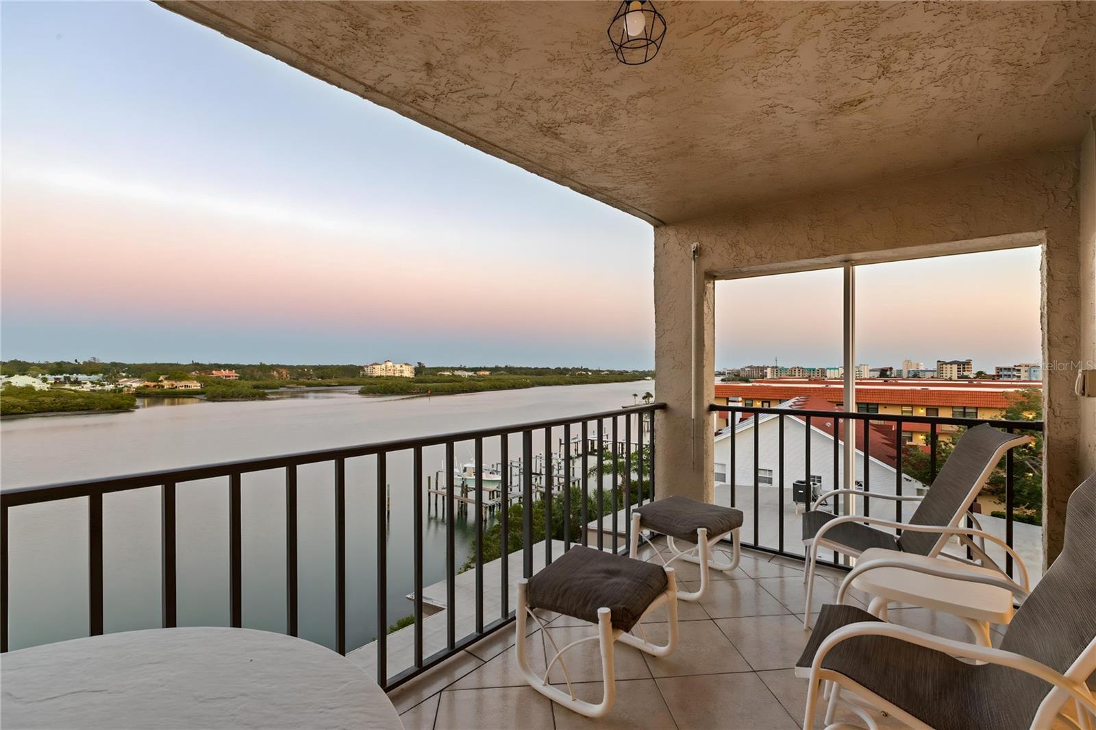 Welcome to the highly sought-after Sea Club of Indian Shores—where location truly matters! This stunning Intracoastal waterfront condo offers two bedrooms and two bathrooms, making it a prime choice for short-term rental income or a beautiful year-round home. Perched on the 4th floor, this turn-key, fully furnished corner unit boasts breathtaking water and nature views. Start your mornings with a cup of coffee on the covered waterfront patio, where you can watch the sunrise and spot dolphins in their natural habitat. The primary bedroom features a walk-in closet, an ensuite bathroom with a walk-in shower, and gorgeous views of the turquoise Gulf waters. The open-concept living and dining areas provide panoramic water views, while the kitchen comes fully equipped with appliances—including a dishwasher, microwave, refrigerator, and oven/stove. The second bedroom offers a spacious walk-in closet, a full-size washer and dryer, and easy access to the second bathroom. Sea Club Community Amenities include a heated saltwater resort-style lap pool with sundeck, private fishing pier and fish cleaning station, shuffleboard court and covered picnic areas, grilling stations and car wash stalls. Bicycle storage and dedicated dog-walk areas, lush, tropical landscaping in a meticulously maintained, self-goverend, and well-managed community. Just steps from the pristine white sands of the Indian Shores Beach, this condo is conveniently located along the Gulf Beaches trolley route and a short distance to local shops and dining. Whether you're searching for a primary residence, a second home, or the perfect vacation retreat, this waterfront gem is a must-see! Booking your showing appointment today!