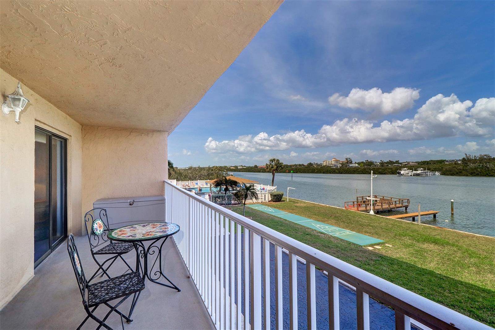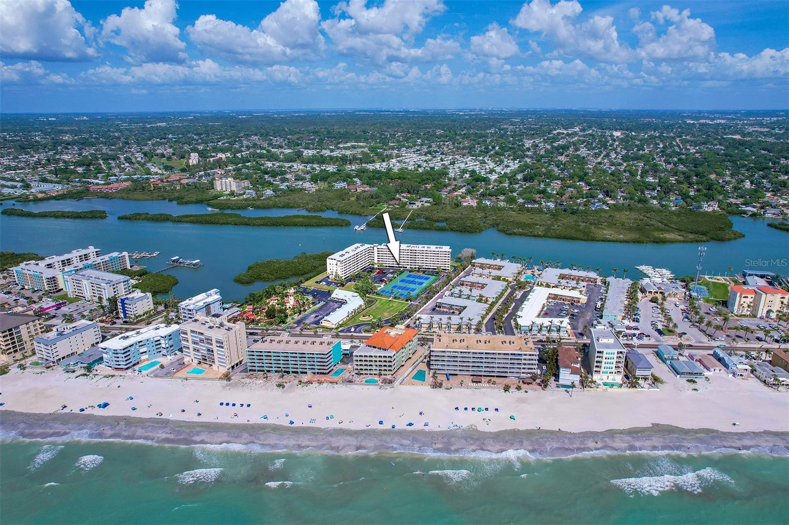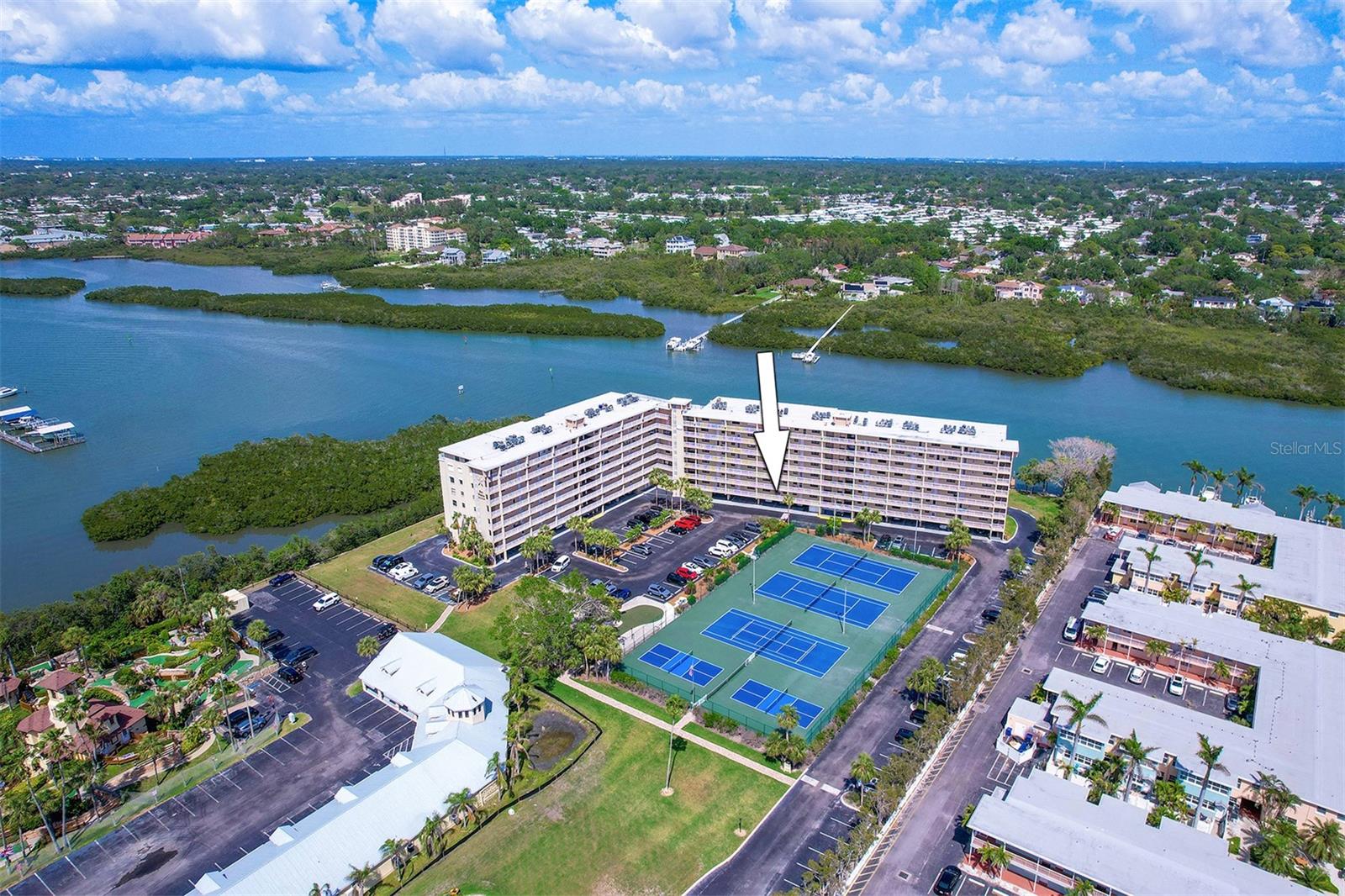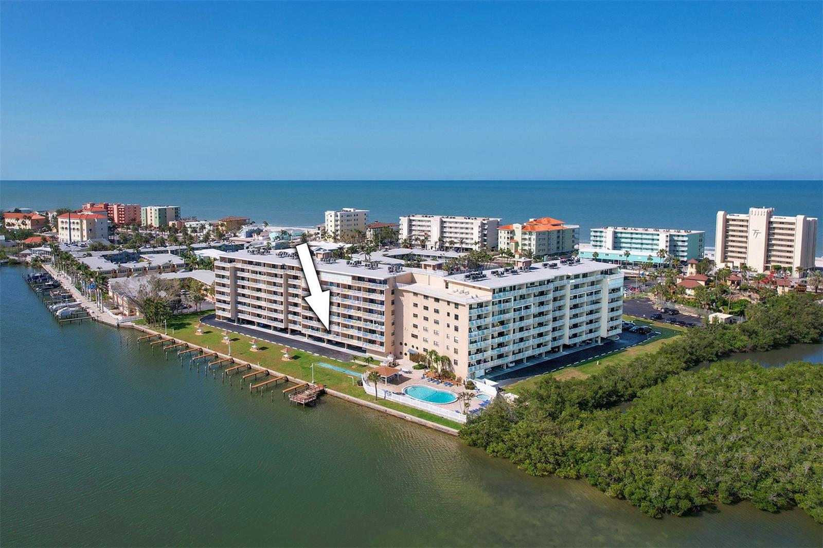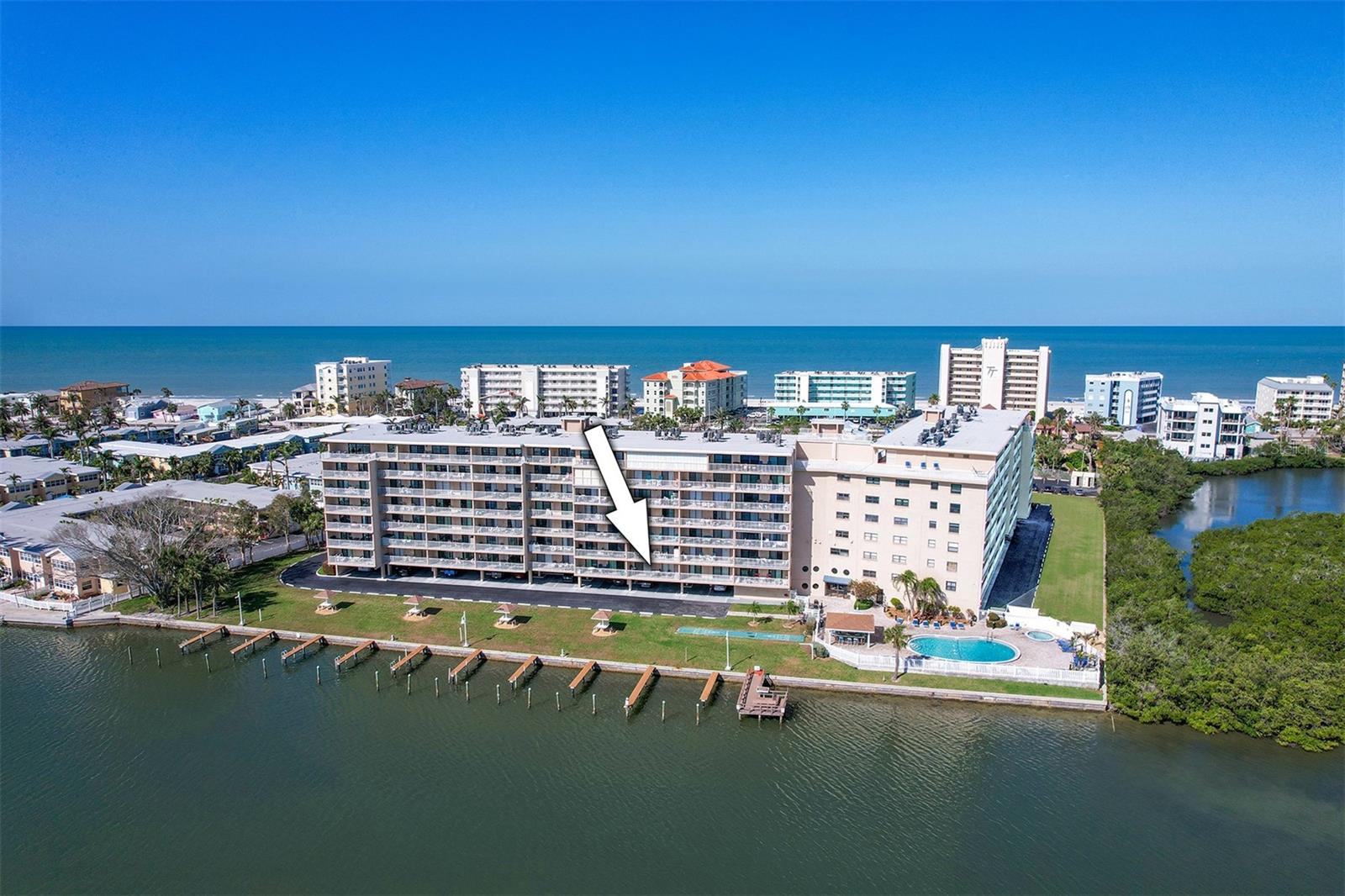 Weekly rentals permitted! Amazing opportunity! This two-bedroom, two-bath intracoastal front condominium at Bay Shores Yacht & Tennis Club of Indian Shores hits the market. This prime location in the building offers breathtaking water views of the Intracoastal Waterway while just being a short distance from Gulf of Mexico beaches. The spacious balcony extends 24 feet long by 5.11 feet wide where you can enjoy the fresh air while watching the epic sunrises, dolphins, wildlife and cruising boats. In addition, you can enjoy world-famous Florida sunsets from the front breezeway. To complement all these outstanding views, this unit has a spacious floor plan and is meticulously kept and fully furnished, ready to stay or rent to a vacationer. The ability to rent short-term, combined with resort-style amenities, results in strong income potential! One assigned parking space and plenty of guest parking. This unit is amazing! This community is also unique with an impressive list of amenities. BSYT is on 4.5 acres of Intracoastal Waterway frontage and directly across the street from the beach. Owners and guests can enjoy the fishing pier, approximately 20 first-come, first-serve boat slips, picnic gazebos, shuffleboard court, heated pool and hot tub, an eighth-floor observation deck with views for miles, clubhouse, men and women's sauna, four tennis courts (one doubles as a pickleball court), a putting green, designated areas for bikes and kayak/paddle board storage, next door to Smuggler's Cove Putt golf attraction, many boutique shops/restaurants, and most importantly right across the street from the beach. There is a pedestrian crosswalk and beach access directly across from the location of this condominium. It's a one-minute walk to the white sugar sand beaches of Indian Shores. Within 40 minutes of two international airports. No pets. See what this unit and Bay Shores Yacht & Tennis has to offer, you won’t be disappointed!