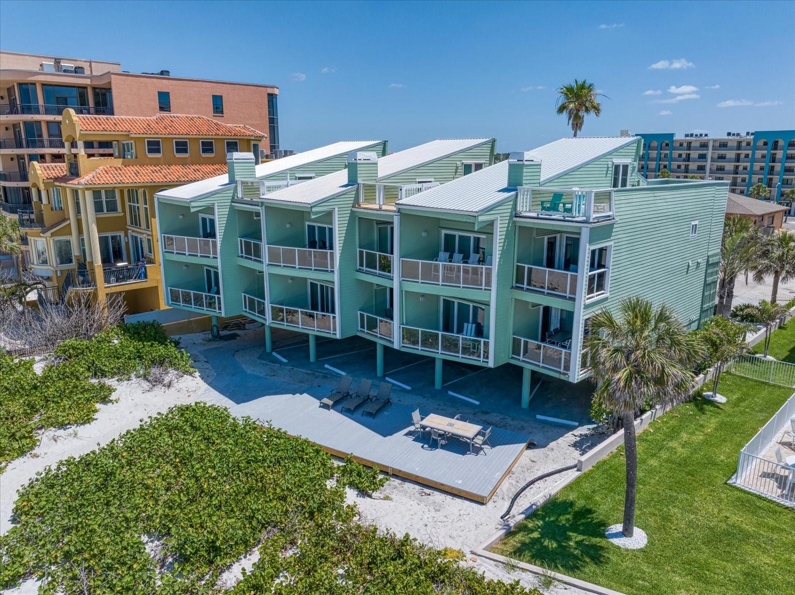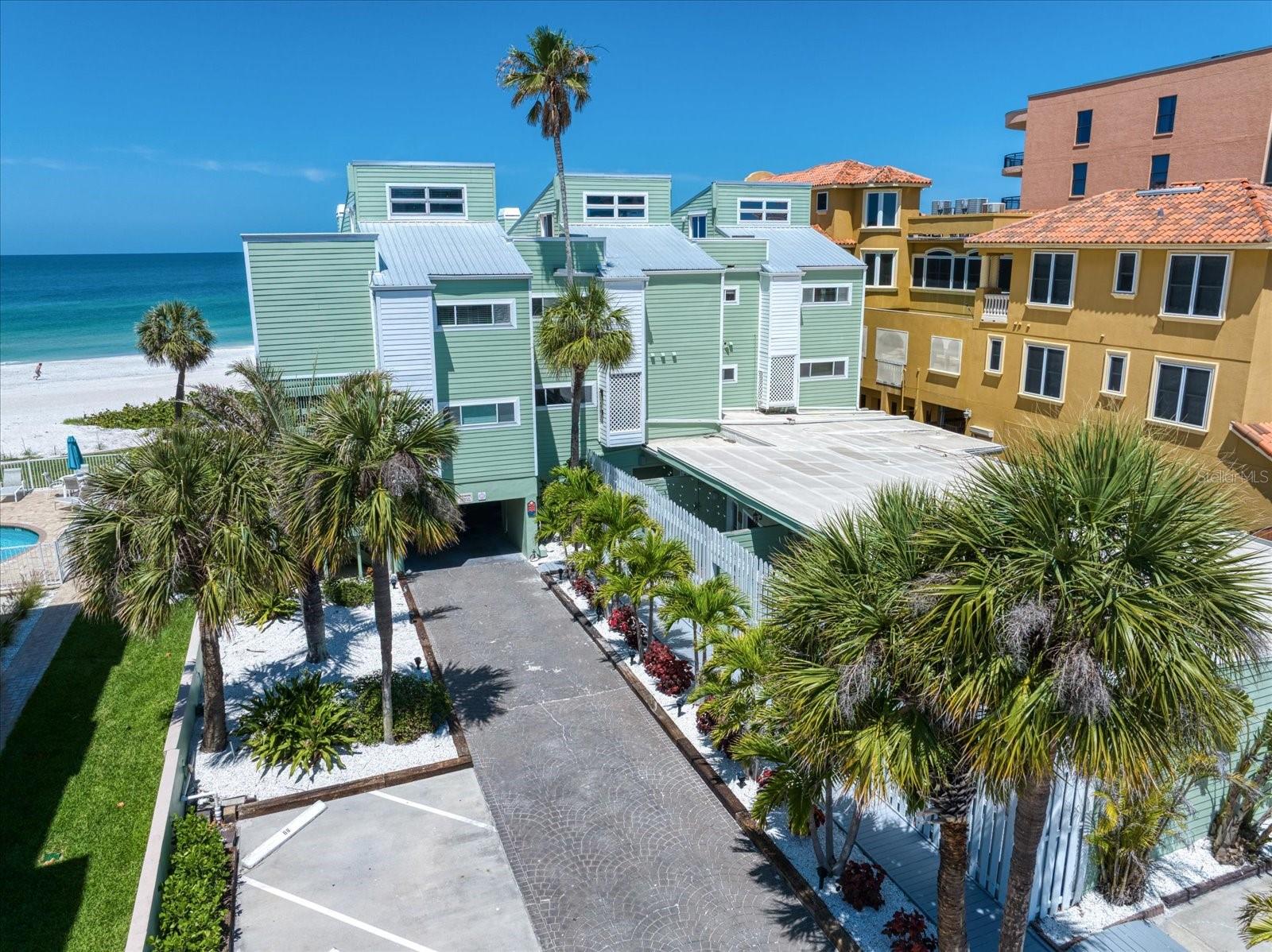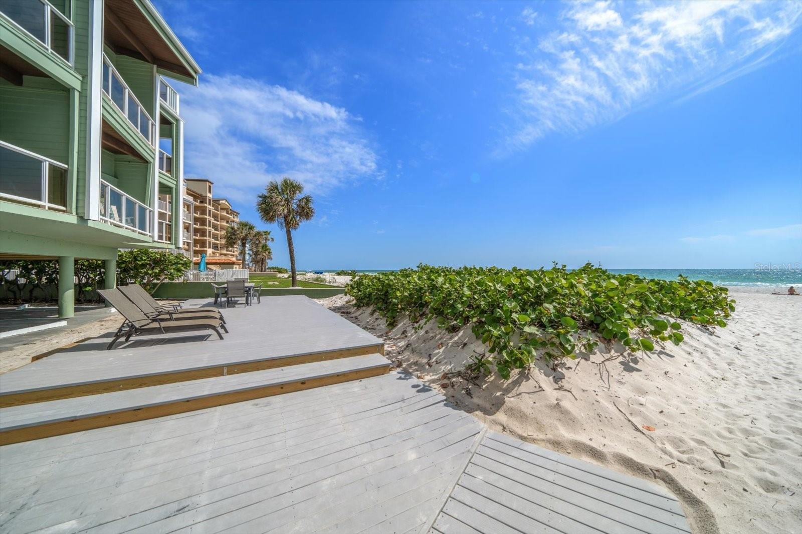 Discover the charm of beachfront living with this fully renovated, pet-friendly Florida Cottage condo—Unit 4A, the largest ground-floor unit in the community. This beautifully 1-bedroom, 1-bath residence offers direct walk-out access to the beach, with views of the Gulf of Mexico framed by large windows in the main living area. Just steps from the sand, this is coastal living at its finest. The interior has been completely updated, featuring a brand-new kitchen with modern appliances, new A/C system, electrical panel, doors, baseboards, and fresh paint throughout. Crisp, white shiplap ceilings and soft beach-cottage blue walls create a light and breezy atmosphere. The oversized bedroom easily accommodates a king-size bed with space to spare for a loveseat or even two queen beds. The open-concept kitchen flows into the living area, with a dining table that seats four comfortably. An additional 150 square feet of private courtyard space expands your living area outdoors—perfect for relaxing or entertaining. Whether you're seeking a serene beach retreat or a smart investment opportunity, this Gulf-front gem is a rare find.