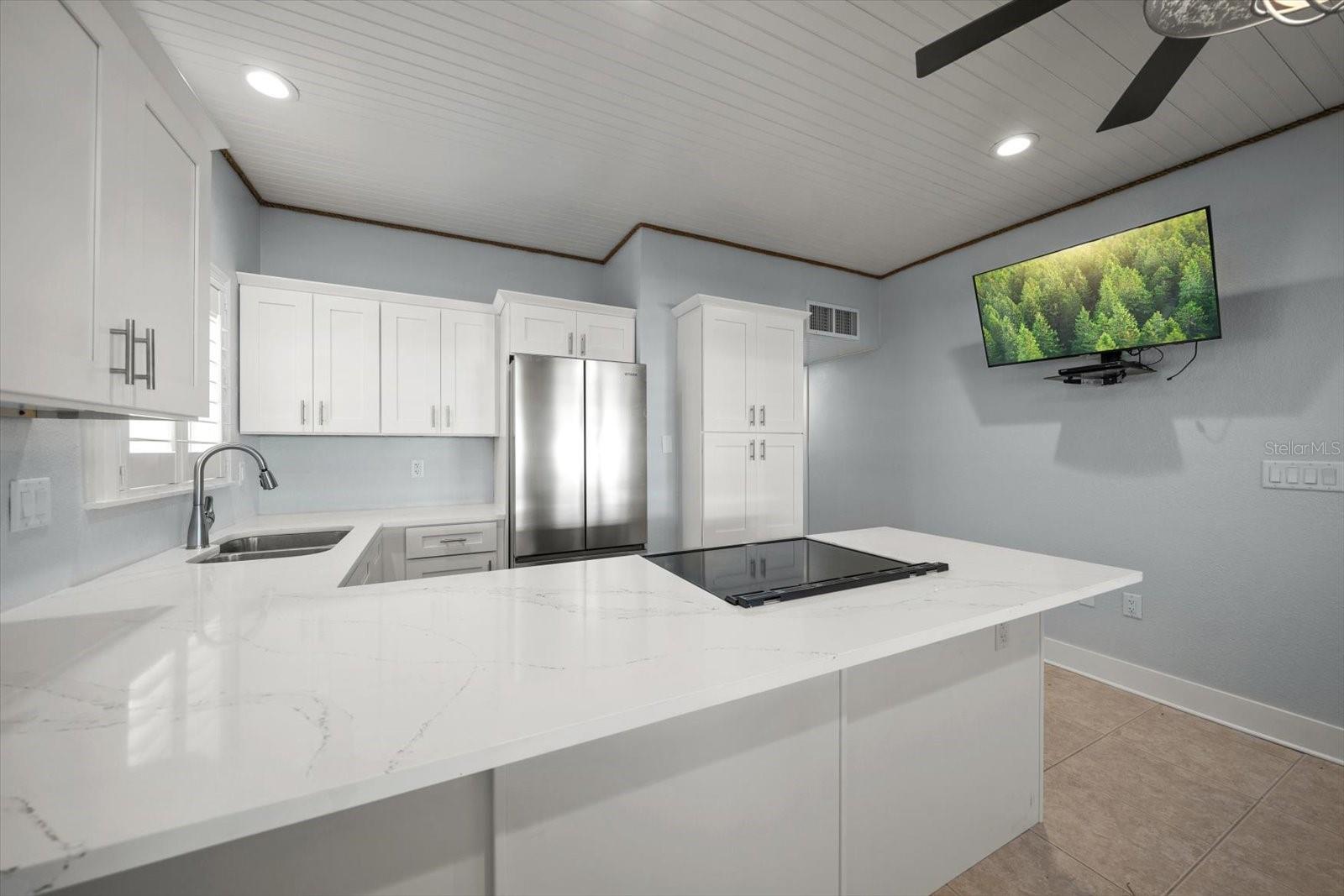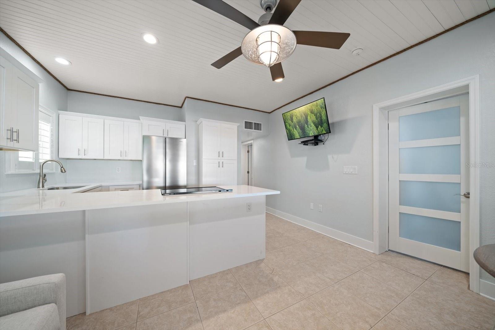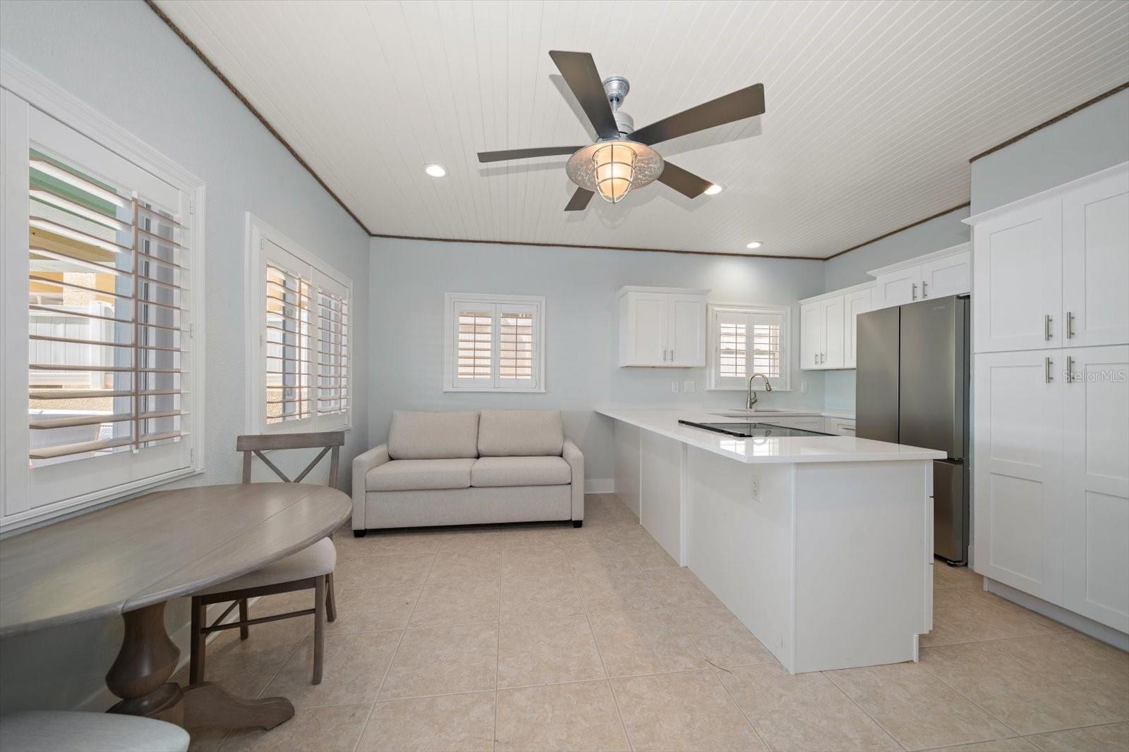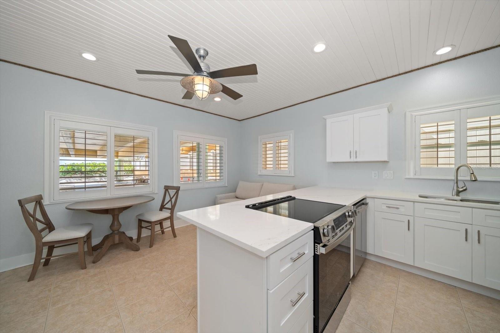 Discover the charm of beachfront living with this fully renovated, pet-friendly Florida Cottage condo—Unit 4A, the largest ground-floor unit in the community. This beautifully 1-bedroom, 1-bath residence offers direct walk-out access to the beach, with views of the Gulf of Mexico framed by large windows in the main living area. Just steps from the sand, this is coastal living at its finest. The interior has been completely updated, featuring a brand-new kitchen with modern appliances, new A/C system, electrical panel, doors, baseboards, and fresh paint throughout. Crisp, white shiplap ceilings and soft beach-cottage blue walls create a light and breezy atmosphere. The oversized bedroom easily accommodates a king-size bed with space to spare for a loveseat or even two queen beds. The open-concept kitchen flows into the living area, with a dining table that seats four comfortably. An additional 150 square feet of private courtyard space expands your living area outdoors—perfect for relaxing or entertaining. Whether you're seeking a serene beach retreat or a smart investment opportunity, this Gulf-front gem is a rare find.