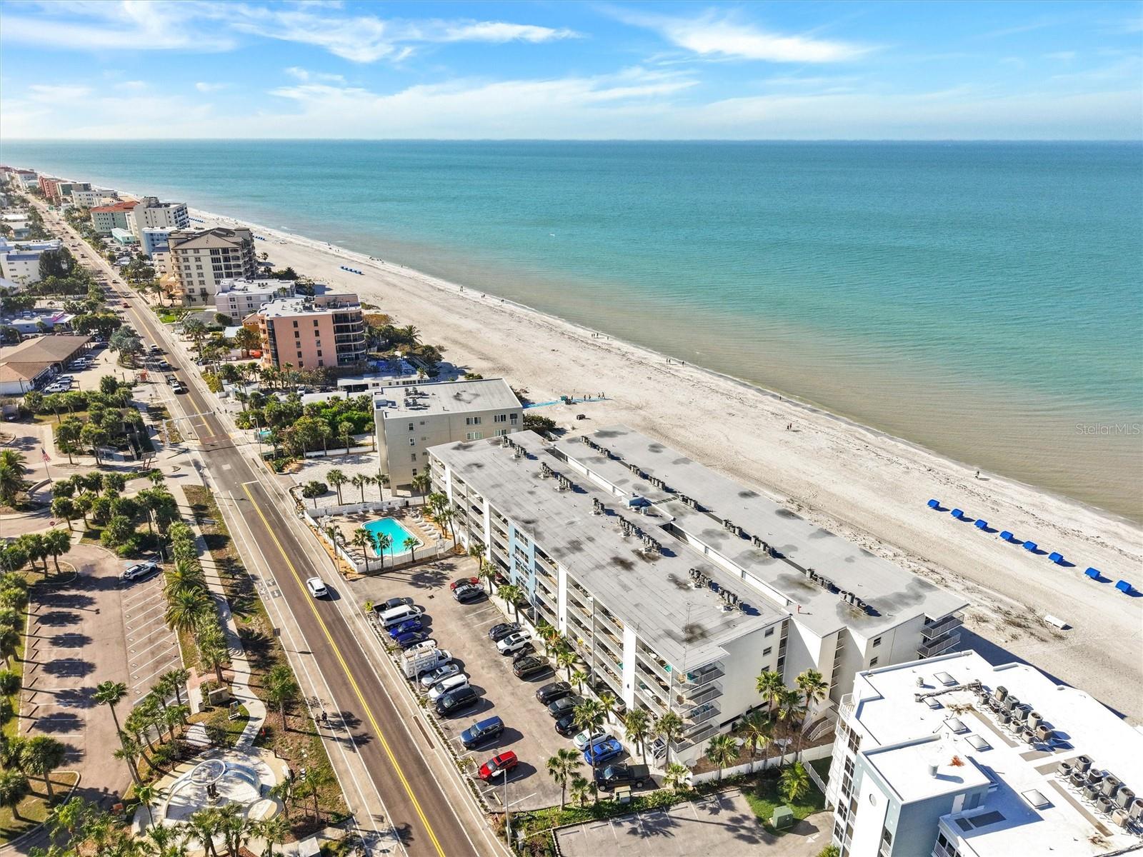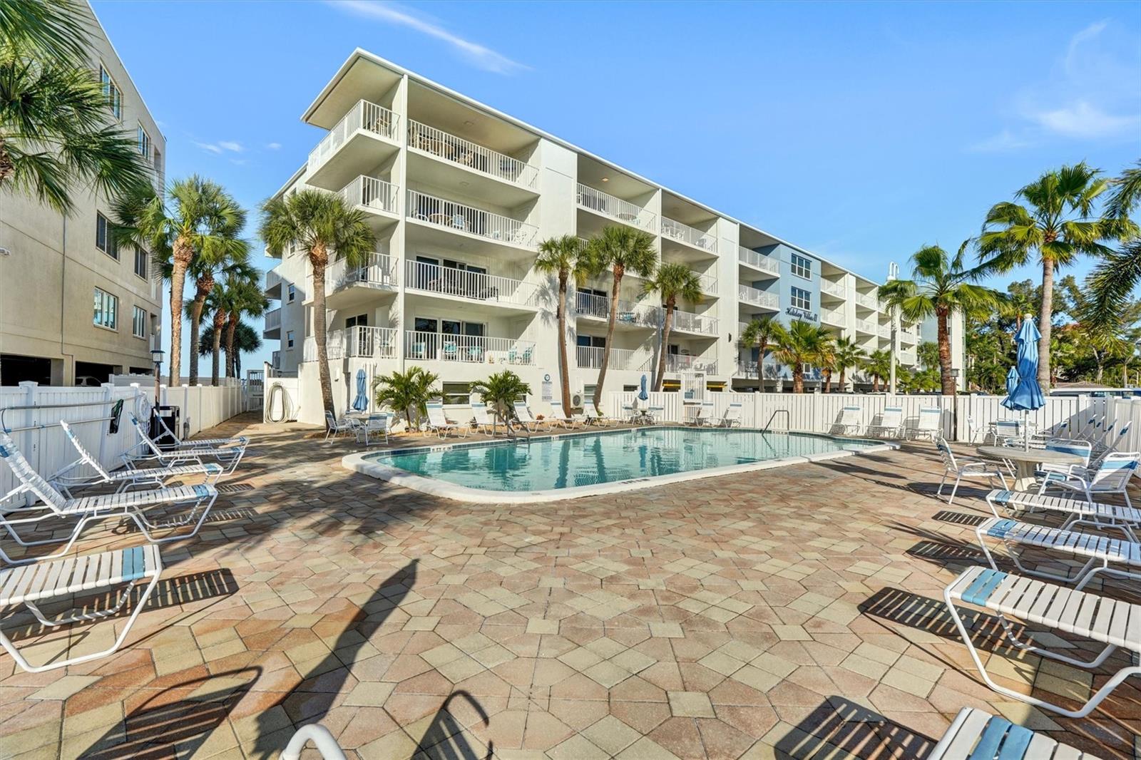 LOWEST PRICED CONDO NOW AVAILABLE AT HOLIDAY VILLAS II!!! COME ENJOY HOLIDAYS IN THE SUN!!! Paradise Awaits! Bring All your Beach toys!!! Enjoy endless sunsets and the carefree beach Life! Priced below market value! Short Term Rentals ALLOWED! Minimal Rental Restrictions! Never flooded. No storm damage to unit or building! The building is elevated above flood level! New natural wood style high quality Laminate Floors recently installed in the 'Primary (master) Bedroom'! New Hurricane Rated, impact resistant Glass Sliding Door wall (plus retractable sliding storm shutters on the balcony for extra peace of mind). Sold furnished with all accouterments. Extra storage on the balcony for all your beach toys. This fully furnished unit is very well maintained and in immaculate condition. Ready to be your primary home, part time beach get-away, and/or a rental source of income. Short-term rentals are allowed with a 4-day minimum. Holiday Villas II provides a heated beachfront pool, outdoor grill, assigned garage covered parking (Space D-8), and quick elevator access. Large ceramic tile floors throughout, with Berber carpet in the 2nd "guest" bedroom. This is the definition of a "turn-key" beach income property! Quaint Indian Rocks Beach is just a short hike up the beach, quick drive, or bike ride to shops, cafes and dining; with seafood restaurant (and other cuisine) selections galore! Catch fantastic sunrises over the Intracoastal waterway from your private balcony with your favorite morning beverage! Take in stellar Beach sunsets within a short 3-min stroll to the beach from your 2nd story Indian Shores condo! Forget the cold winters up north! Come enjoy the Indian Shores Beach Life - where life truly can be a Beach!!!