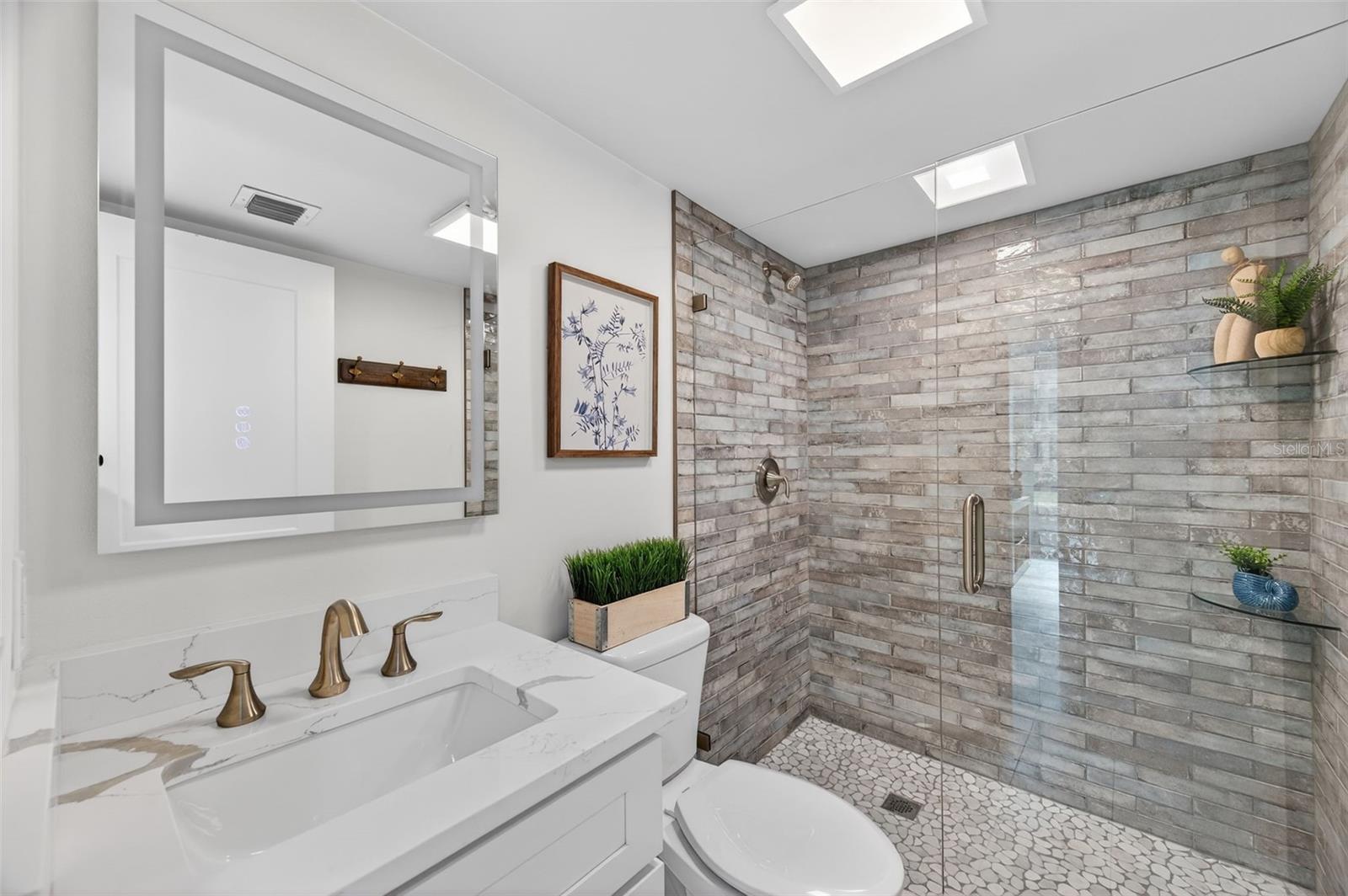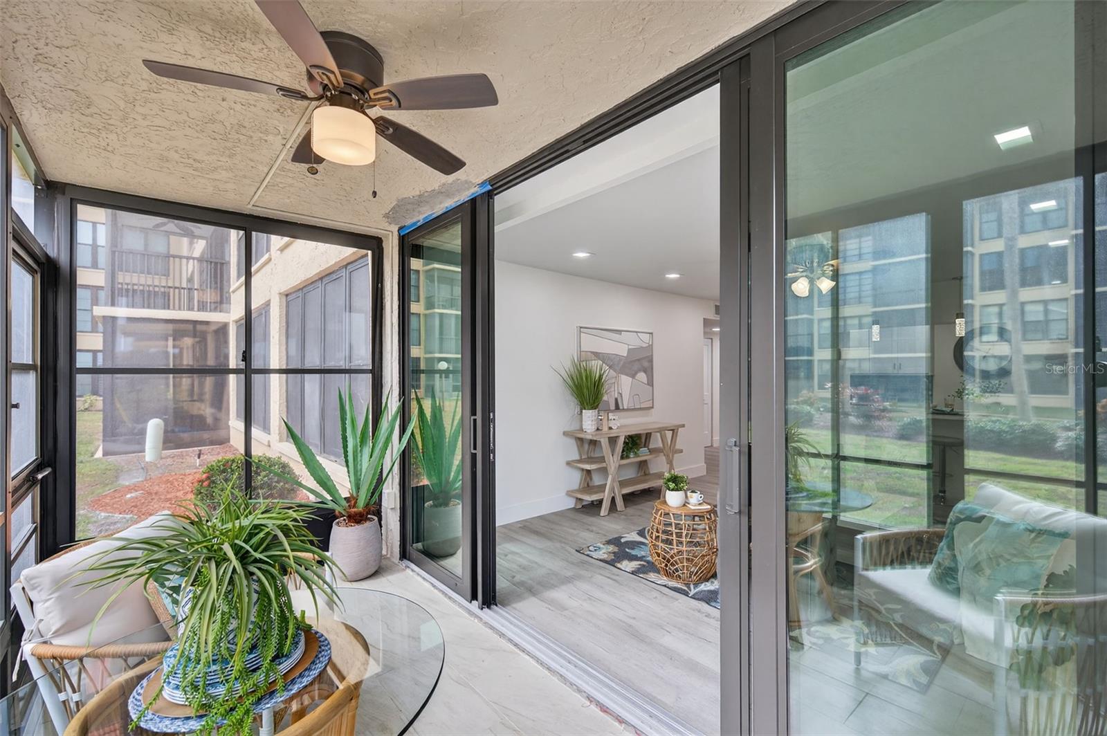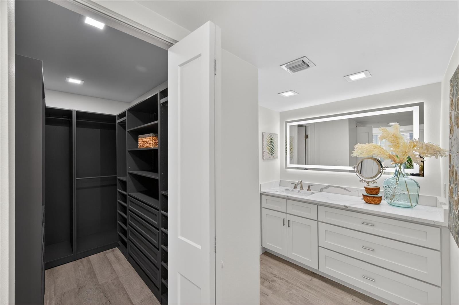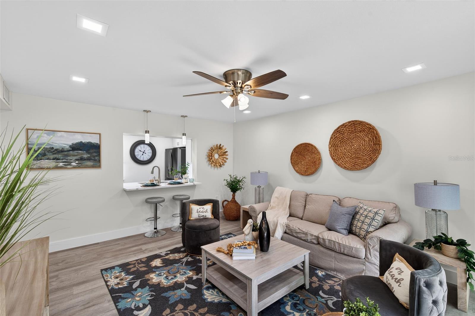 Experience coastal luxury in this impeccably renovated 2BR/2BA residence, transformed from top to bottom with exceptional attention to detail. Every inch of this home has been thoughtfully updated—no corners cut, no finishes overlooked. Step into a bright, sophisticated kitchen featuring premium appliances, gleaming quartz countertops, and upgraded shaker cabinetry. Both bathrooms have been reimagined with elegant tilework, upscale fixtures, and contemporary lighted mirrors. Custom-designed closet systems maximize storage while adding a boutique, high-end feel to each space. Wide-plank light luxury vinyl flooring flows seamlessly throughout the home, creating a continuous, refined aesthetic with no transition lines. Modern square recessed lighting on dimmers sets the tone in every room, complemented by newly installed HVAC, water heater, windows, and sliders for peace of mind and efficiency. Perfectly situated on the first floor, this condo offers effortless access and a serene connection to the outdoors. Step onto the private lanai and enjoy tranquil views overlooking the pool with a glimpse of the Intracoastal Waterway. Just a short stroll through the parking area brings you to a crosswalk leading directly to the beach, while an array of shops and restaurants sit conveniently at the front of the complex. Live every day like you're on vacation—whether as your primary residence, a seasonal escape, or an excellent rental opportunity. Easy to show and ready to impress