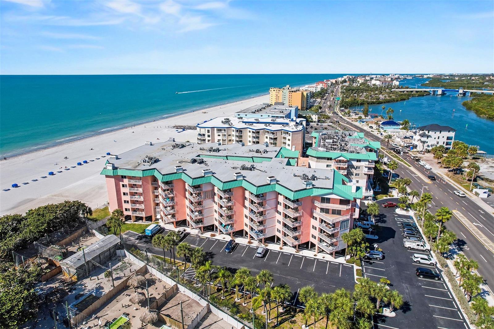 Experience coastal living at its finest in this exquisite 2 bed, 2 bath beachfront condo offering 1,400 sq ft of thoughtfully designed space and sweeping Gulf views. Sunlight fills an open living and dining area anchored by a cozy fireplace and flowing directly to a large, beach facing balcony—perfect for morning coffee or endless sunsets. The spacious kitchen features a breakfast nook and ample cabinetry and counter space, while an inside washer/dryer adds everyday convenience. The split bedroom layout ensures privacy: a generous primary suite boasts water views, private balcony access to spacious bath with a dual vanity and a large renovated shower. A second bedroom and bath accommodate guests comfortably. Resort style living continues outdoors with a heated pool, expansive sun deck, grilling station, and direct views of sugar sand beaches and sparkling water. Practical amenities include assigned under building parking, abundant guest spaces, bike and kayak storage, and weekly rentals permitted—ideal for strong income potential, a second home, or full time residence. Steps from fishing, boating, paddle boarding, beachcombing, local restaurants, boutiques, live music and trolley service, and convenient to two international airports. Schedule your appointment today.