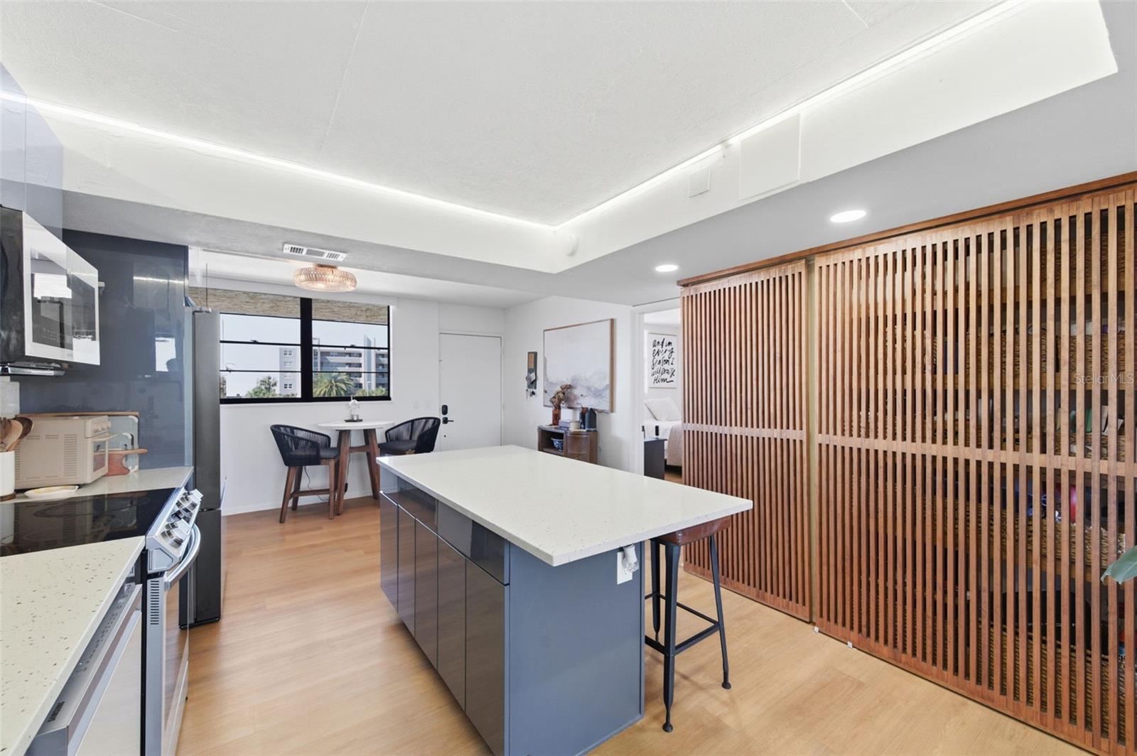 Prepare to be impressed! This beautifully updated 4th-floor condo in Indian Shores offers a rare combination of refined finishes, panoramic water views, and low-maintenance beachfront living. With sweeping vistas of both the Gulf of Mexico and the Intracoastal Waterway, this residence captures the best of Florida’s waterfront lifestyle from nearly every room. Designed with a fresh, open-concept layout, the interior feels bright, spacious, and inviting from the moment you enter. Expansive windows and sliding glass doors flood the home with natural light, enhancing the airy ambiance and framing the stunning water views. The seamless flow between the kitchen, dining, and living areas creates an ideal setting for everyday living or hosting guests. The kitchen has been thoughtfully upgraded with quartz countertops, stainless steel appliances, and European style cabinetry, offering both style and functionality. Clean lines and a coastal-inspired palette complement the surrounding living spaces, where tranquil Intracoastal views provide a beautiful backdrop. Both bedrooms are generously sized and designed for comfort, while the two fully attached bathrooms.. Additional improvements—including updated, appliances, vinyl flooring, and newer HVAC—provide added efficiency and peace of mind. There are motorized blinds that can be initiated with the click of a button. Perfectly positioned just steps from the sugar-sand beaches of the Gulf, the building also offers direct access to over 200 feet of Intracoastal waterfront and dock space for fishing or temporary boat tie-up. A convenient BEACH ACCESS AND CROSSWALK DIRECTLY ACROSS FROM THE PROPERTY, make it effortless to enjoy sunrise walks or sunset views. In addition to water access, Bay Mariner has a huge heated pool, hot tub, fitness center, shuffleboard, clubhouse, sauna, bike racks and lots of green space. There have been extensive renovations that are winding down, including a new roof, newly updated clubhouse, game room and gym space. Step out front and you'll find an array of restaurants and shops without even getting in your car. Whether you’re searching for a primary residence, seasonal getaway, or income-producing investment, this turnkey opportunity checks every box. Unit 423 is impeccably maintained, move-in ready, and perfect for anyone seeking an immediate vacation rental or second home. Modern updates, spectacular views, and an unbeatable location combine to create an exceptional offering along one of Indian Shores’ most desirable stretches of coastline.