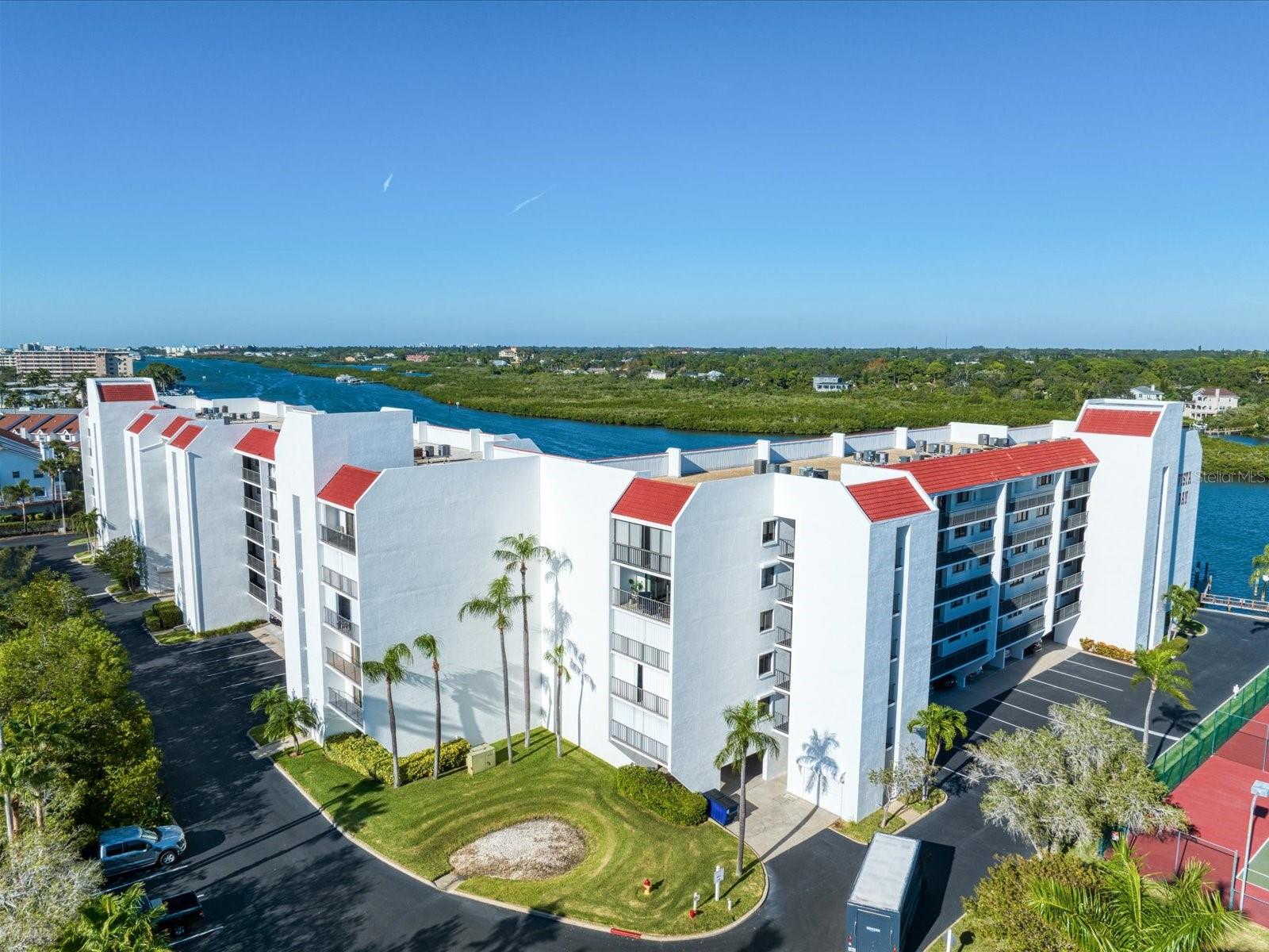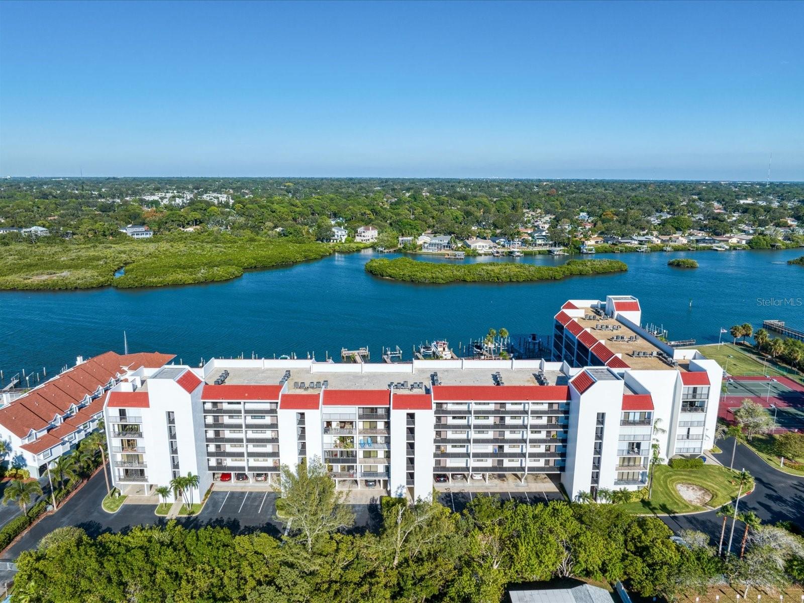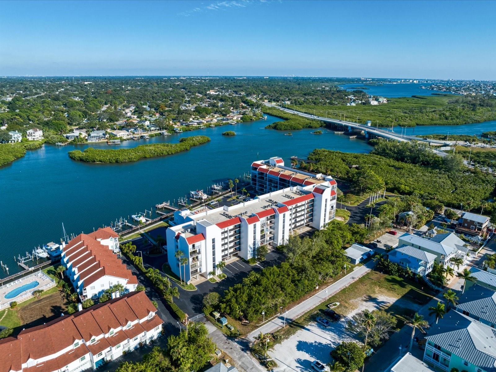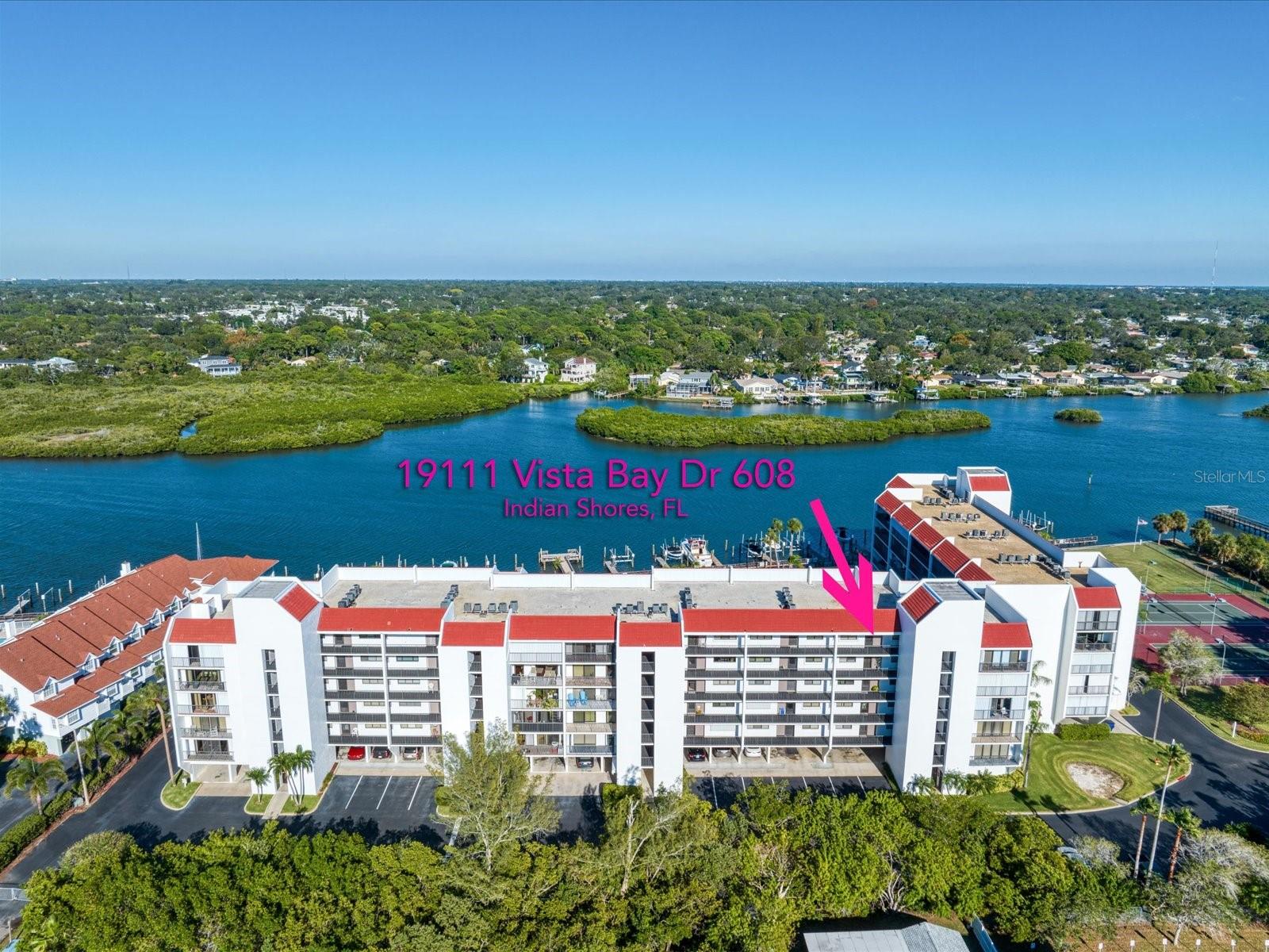 Discover the pinnacle of coastal living in this lovely penthouse condo overlooking the enchanting Narrows of Indian Shores. Nestled between the Gulf and the Intracoastal, just 2 blocks from the beach and adjacent to a serene nature preserve, this location offers tranquility and convenience. The secure lobby guides you to the 6th floor, where this unit awaits with awe-inspiring views. The beautifully renovated kitchen, equipped with new appliances (2021), boasts white shaker style soft-close cabinets, quartz counters, a pantry, and a pass-through to the spacious living room/dining room combo. Custom built-ins in the dining room provide a perfect display space, while the living room is bathed in natural light with sliders opening to a large, covered balcony offering breathtaking water and pool views. The primary bedroom is a retreat with ample closet space featuring a California closet system, double sinks, and a walk-in shower. The second bedroom is equally spacious and shares a hall bath with a tub/shower combo. Hurricane shutters and panels offer peace of mind, complemented by plantation shutters throughout, a brand-new AC (2023), water softener/filtration system, in-unit laundry, and a storage closet just across the hall. Rentals are permitted but are limited to a minimum of 3 months, twice a year. Enjoy the community's amenities, including a heated pool, fishing pier, tennis courts, shuffleboard, and a deeded boat slip for easy access to dockside restaurants. This is an unparalleled opportunity to indulge in coastal luxury with every convenience at your fingertips.
