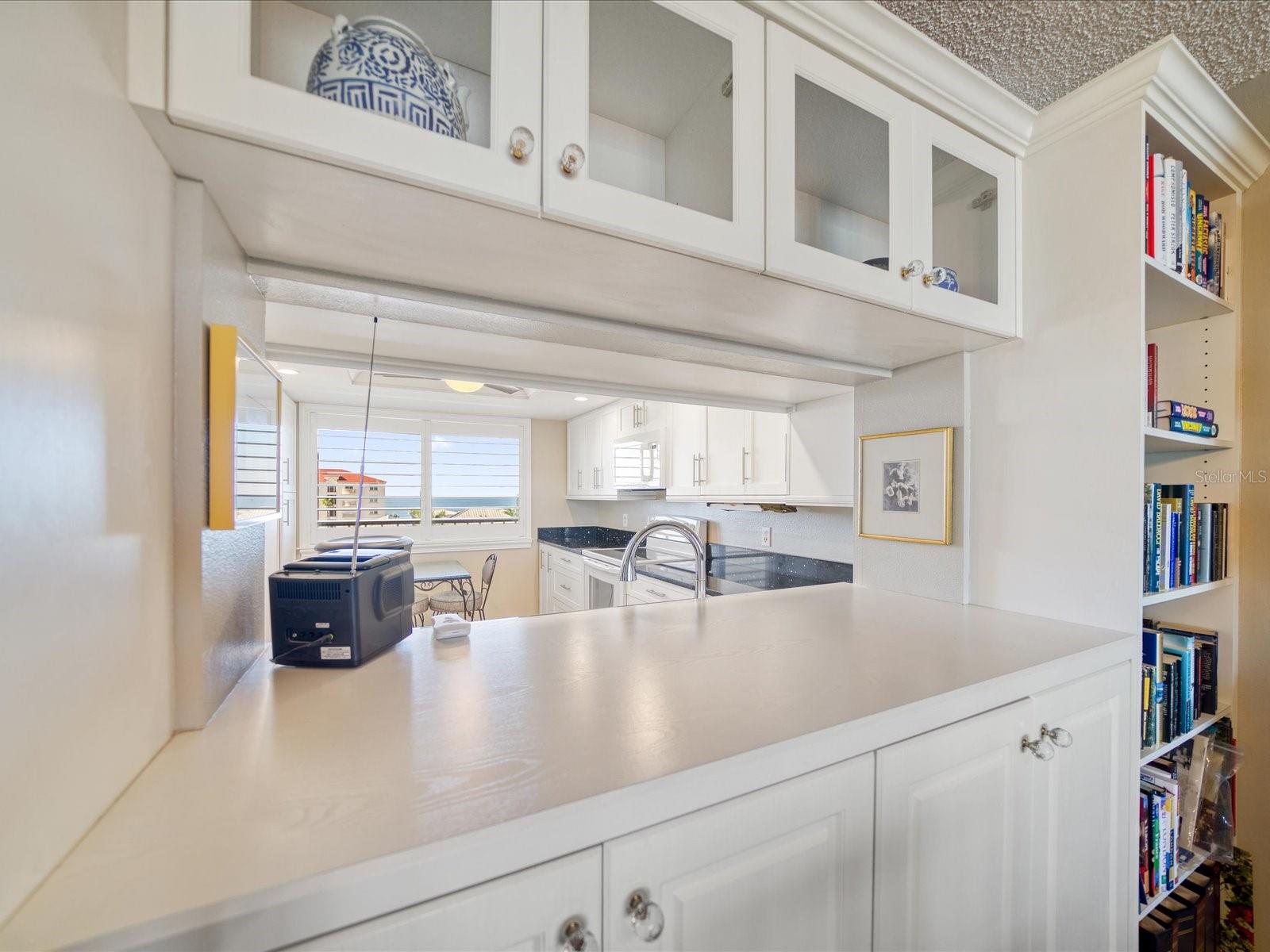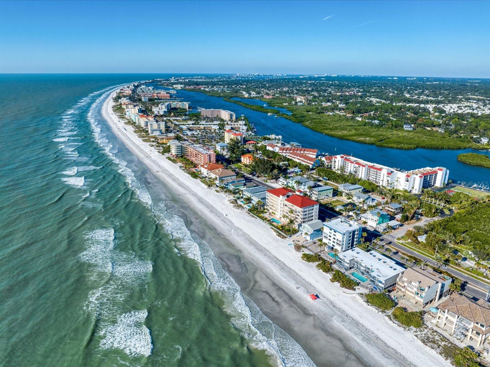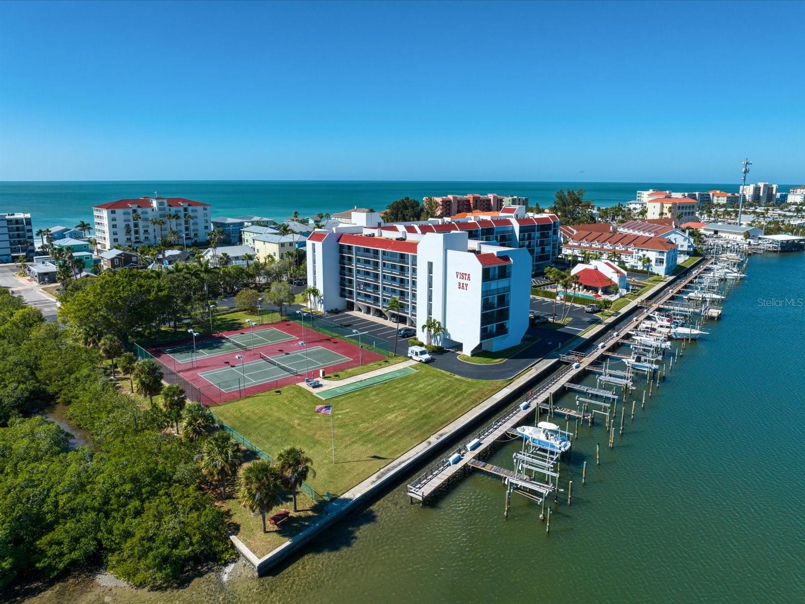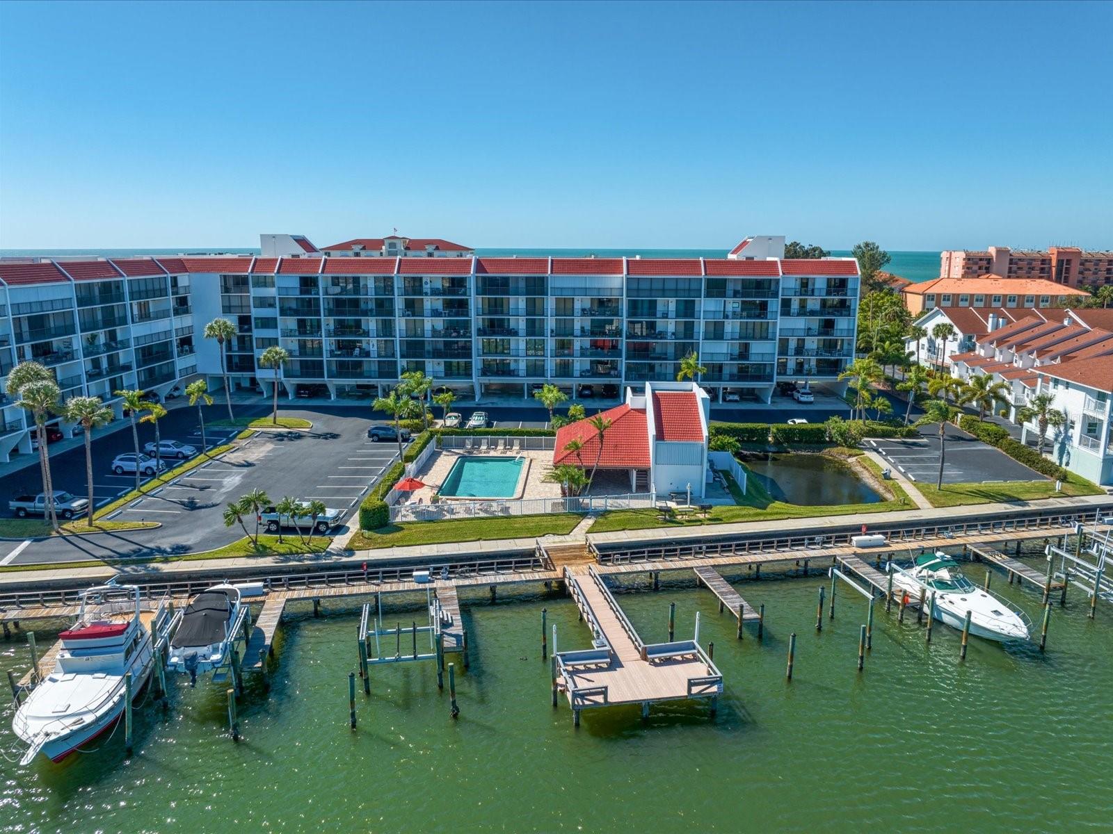 Discover the pinnacle of coastal living in this lovely penthouse condo overlooking the enchanting Narrows of Indian Shores. Nestled between the Gulf and the Intracoastal, just 2 blocks from the beach and adjacent to a serene nature preserve, this location offers tranquility and convenience. The secure lobby guides you to the 6th floor, where this unit awaits with awe-inspiring views. The beautifully renovated kitchen, equipped with new appliances (2021), boasts white shaker style soft-close cabinets, quartz counters, a pantry, and a pass-through to the spacious living room/dining room combo. Custom built-ins in the dining room provide a perfect display space, while the living room is bathed in natural light with sliders opening to a large, covered balcony offering breathtaking water and pool views. The primary bedroom is a retreat with ample closet space featuring a California closet system, double sinks, and a walk-in shower. The second bedroom is equally spacious and shares a hall bath with a tub/shower combo. Hurricane shutters and panels offer peace of mind, complemented by plantation shutters throughout, a brand-new AC (2023), water softener/filtration system, in-unit laundry, and a storage closet just across the hall. Rentals are permitted but are limited to a minimum of 3 months, twice a year. Enjoy the community's amenities, including a heated pool, fishing pier, tennis courts, shuffleboard, and a deeded boat slip for easy access to dockside restaurants. This is an unparalleled opportunity to indulge in coastal luxury with every convenience at your fingertips.