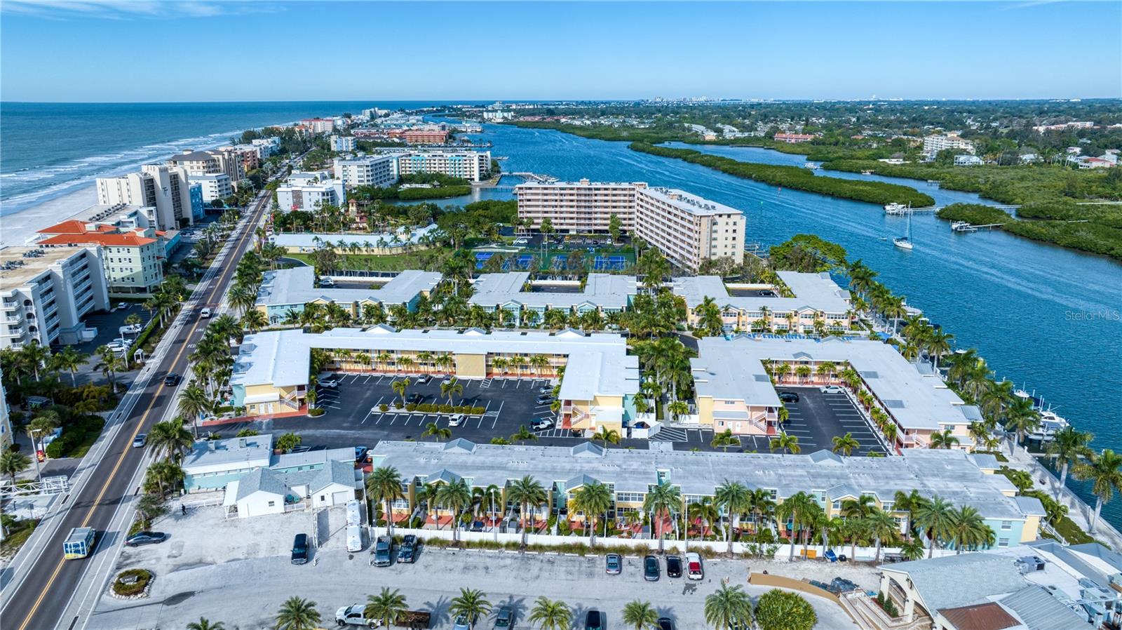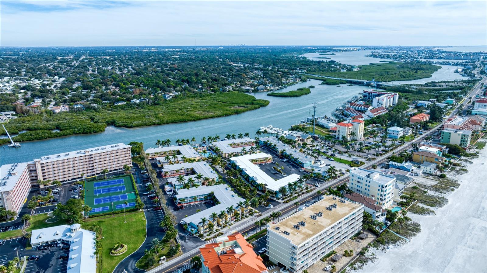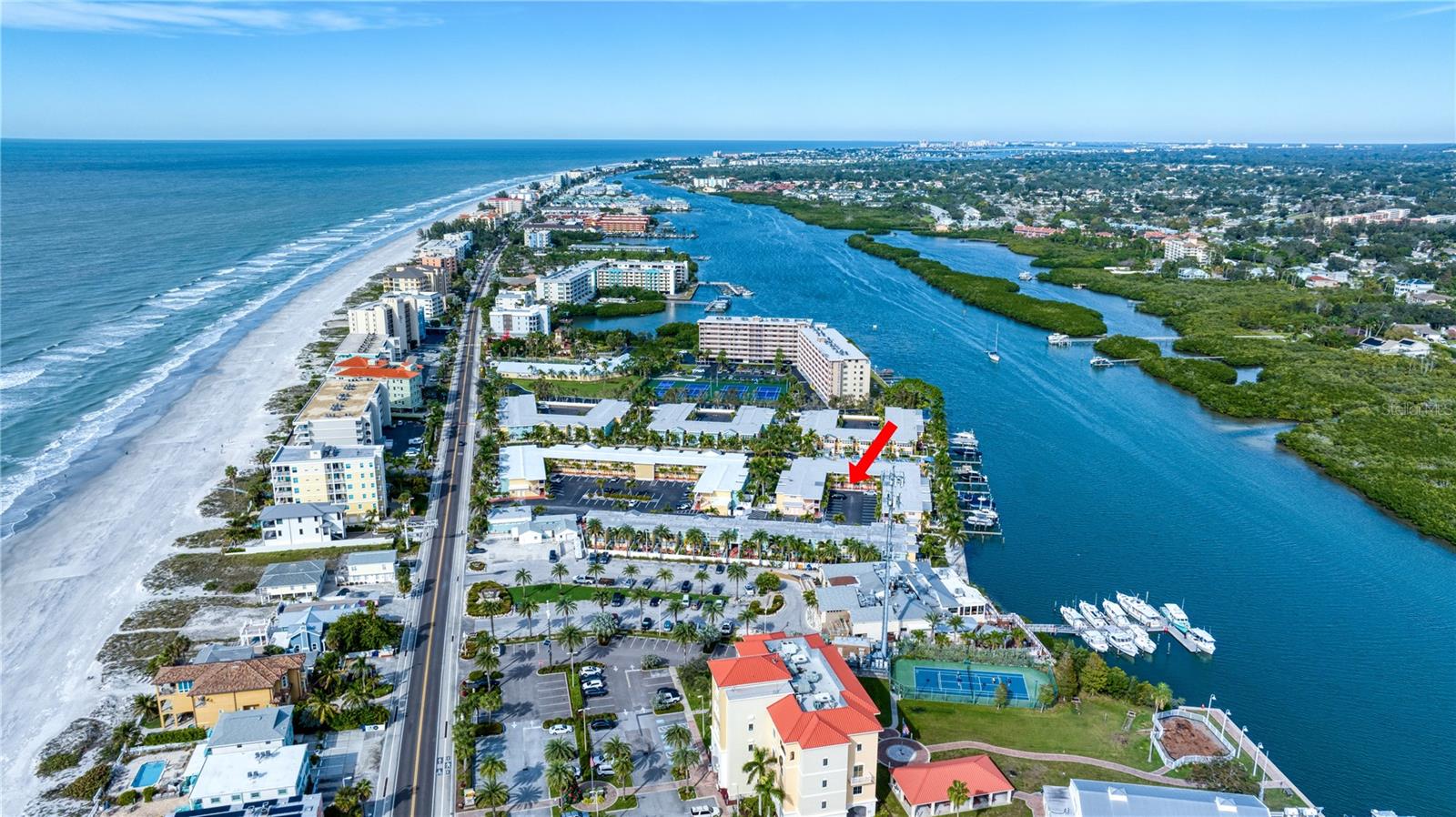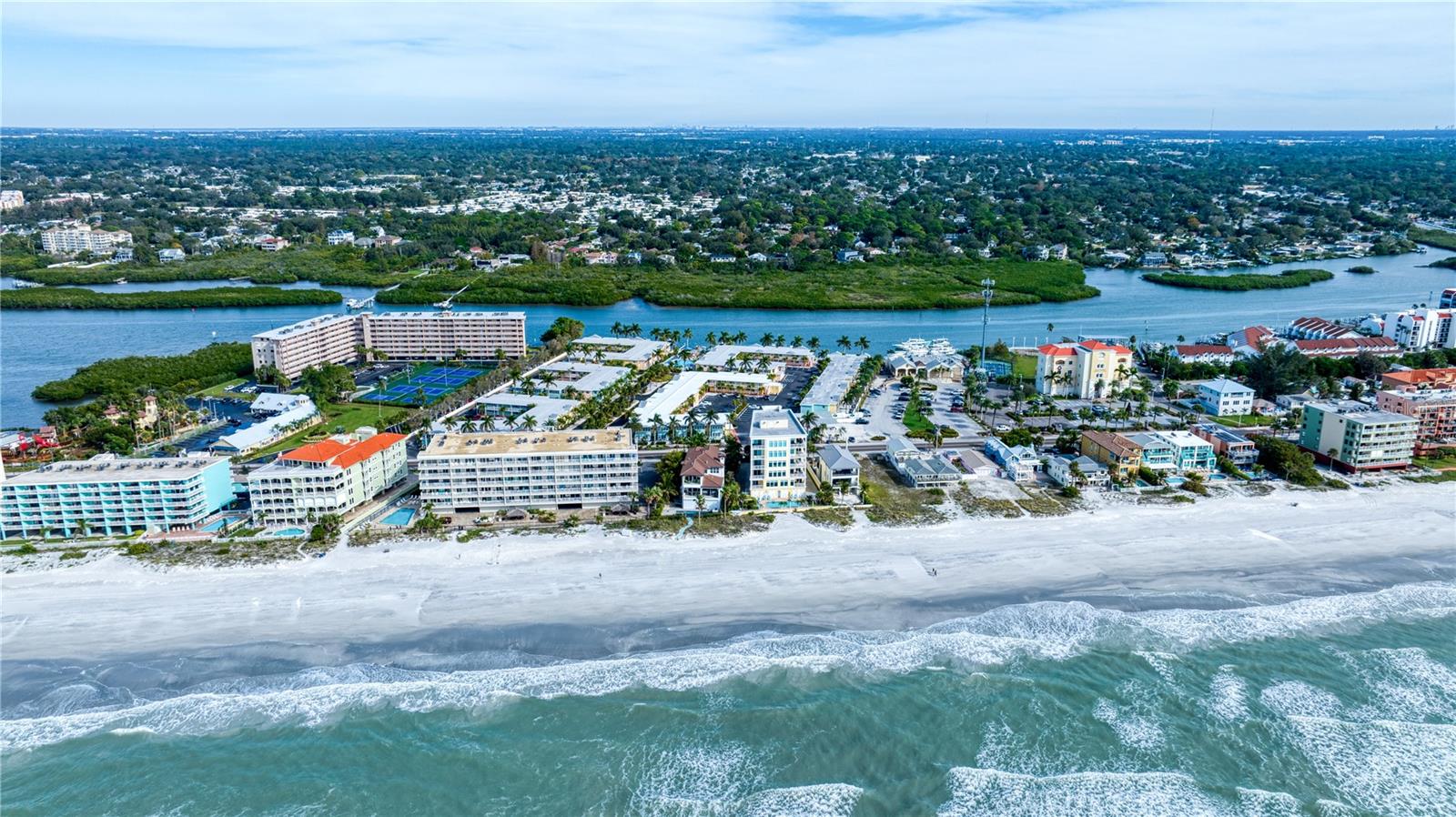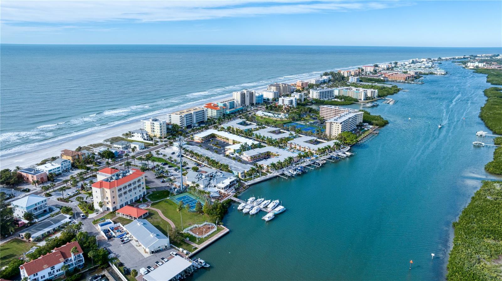 DEEDED BOAT SLIP INCLUDED!!! Indulge in the allure of a vibrant oasis in Indian Shores at Barefoot Beach Resort, boasting private beach access to the breathtaking Indian Rocks beach just steps away! The income potential is amazing and you have the opportunity to rent your property out short term or live there full or part time is so rare and unique! This property is nestled in a tropical resort on Florida's enchanting west coast, it is a fully furnished, turn-key unit, 1 Bedroom / 1 Bathroom with a deeded boat slip! The kitchen features granite counters, upgraded cabinets and appliances. Revel in a spacious layout where the dining room seamlessly merges with the living room. Escape to this prime location, perfectly situated between St Pete Beach and Clearwater Beach, where 27 miles of pristine, powdery sand beaches await. Immerse yourself in the abundance of activities, restaurants, and waterfront nightlife, with 25 options within a mere 2 miles of the property. Experience the luxury of French doors leading to a versatile Florida room/den, offering privacy for use as a second bedroom. Open another door to access the pool area conveniently located just steps away. Your gateway to aquatic bliss continues with a private boat slip on the dock, leading to the Gulf in one direction and the intracoastal in the other. This property offers more than just a residence—it's a lifestyle of leisure and convenience. Picture yourself enjoying a heated pool overlooking the coastal waterway and marina, with dolphins and boats as your backdrop. Embrace the charm of a fishing pier, picnic areas with gas grills, and bike-friendly zones. The property ensures seamless connectivity with Wi-Fi accessible throughout, complemented by two laundry facilities in every building. Seize the opportunity to own a slice of paradise with private beach access facilitated by a convenient crosswalk. No rental restrictions allow for flexible options, from daily to monthly rentals. Manage through the on-site rental office or personally curate your rental experience. Additionally, you have the option to live in the property full time, providing a perfect blend of investment and lifestyle. Convenience extends beyond the property, as downtown St Petersburg is a mere 20 minutes away, while Tampa and its airports are just 30 minutes away. Elevate your living experience; this property is not just a home, but a gateway to coastal elegance and endless possibilities.